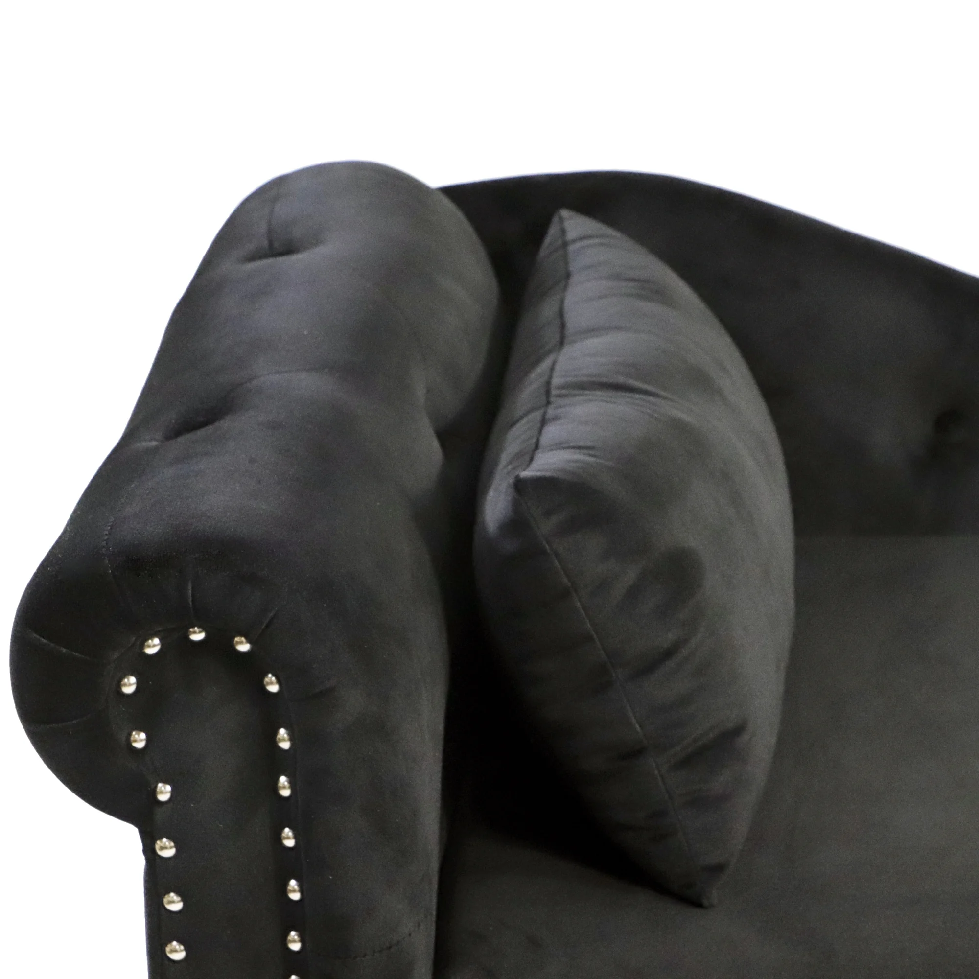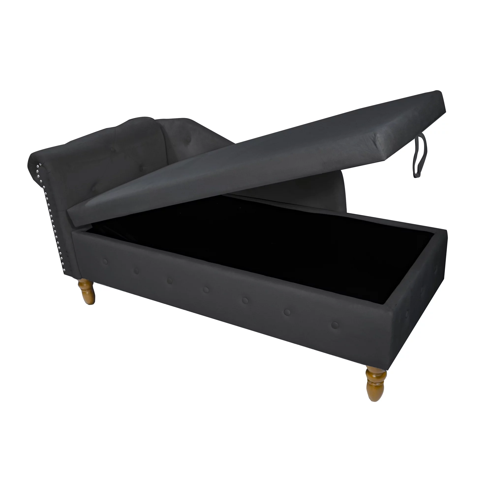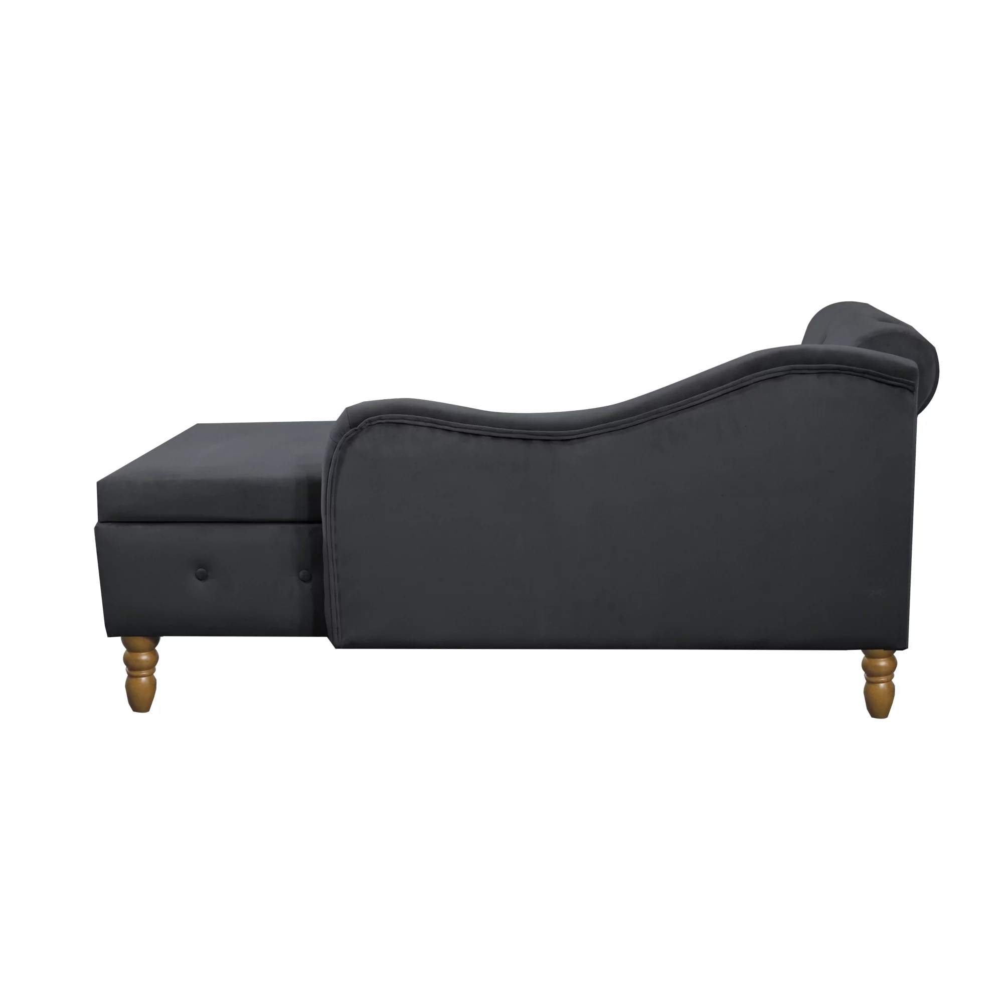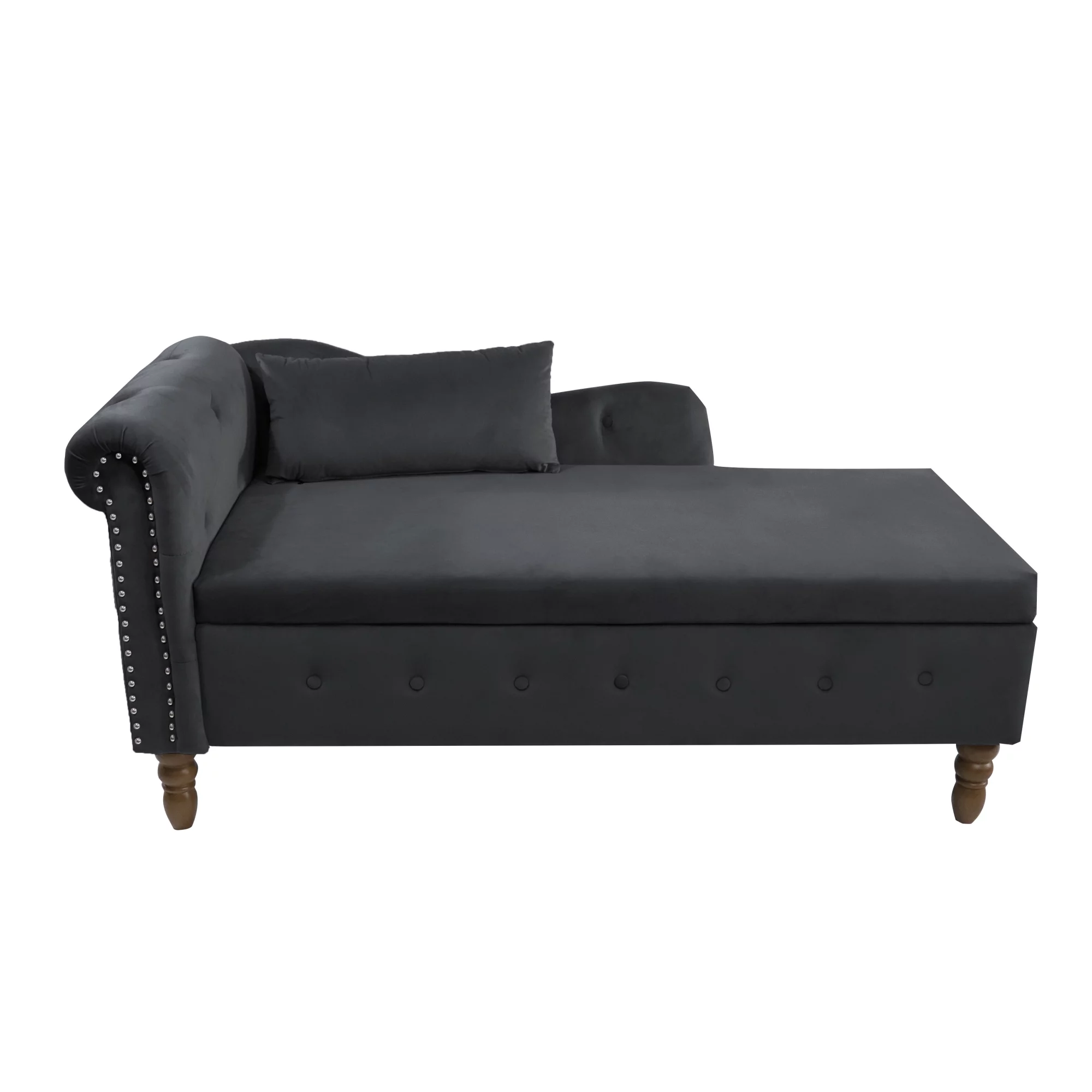 Black Chaise Lounge Indoor,Velvet Lounge Chair for Bedroom with Storage & Pillow,Modern Upholstered Rolled Arm Chase Lounge for Sleeping with Nailhead Trim for Living Room Bedroom Office