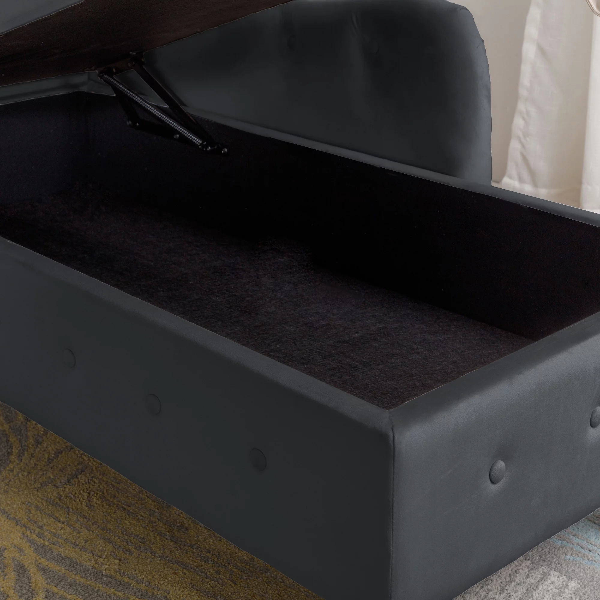 Storage Ottoman Bench For Living Room, Tufted Square Coffee Table Footstool Footrest With Wood Legs (Grey)