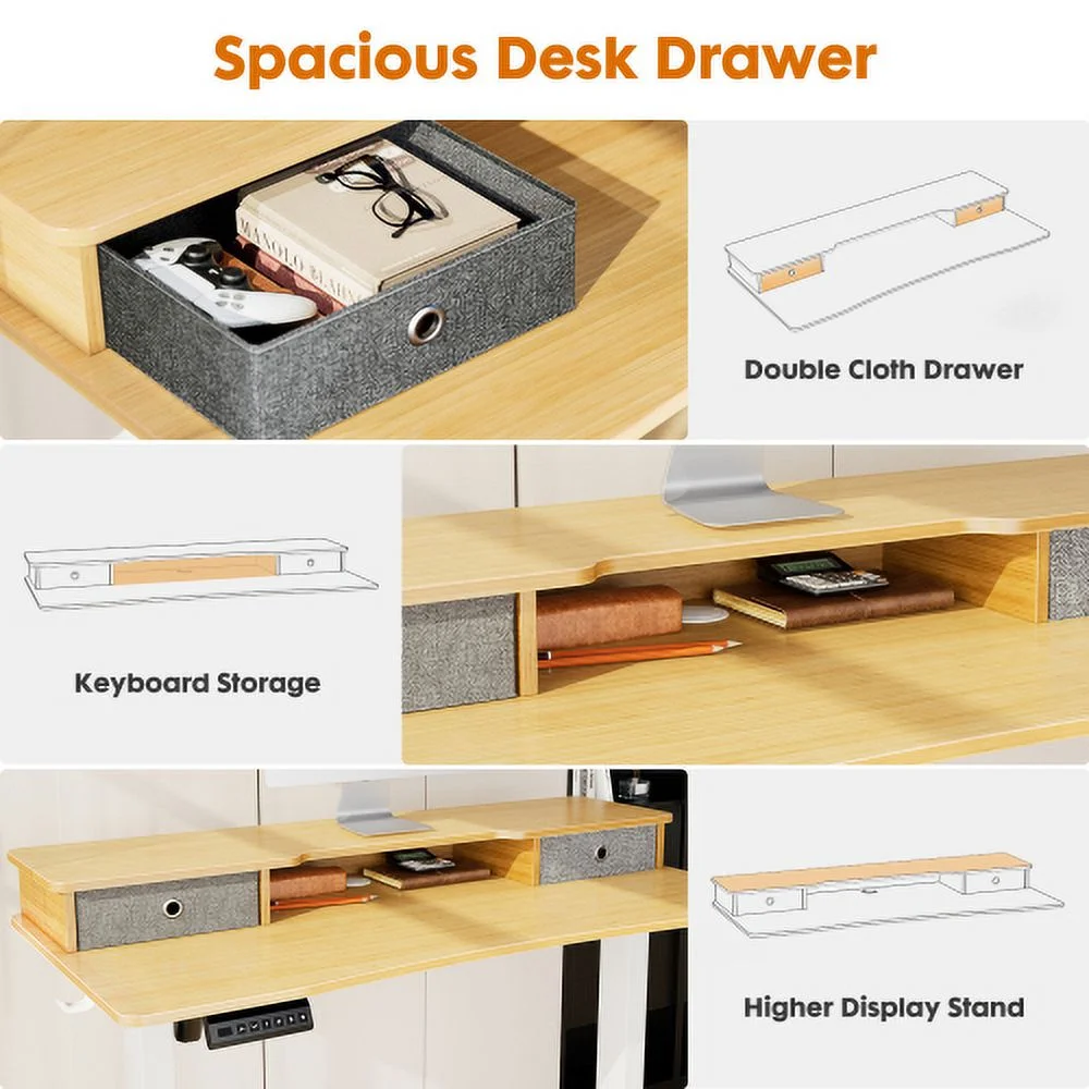 Home Office Height Adjustable Electric Standing Desk with Storage Shelf Double Drawer