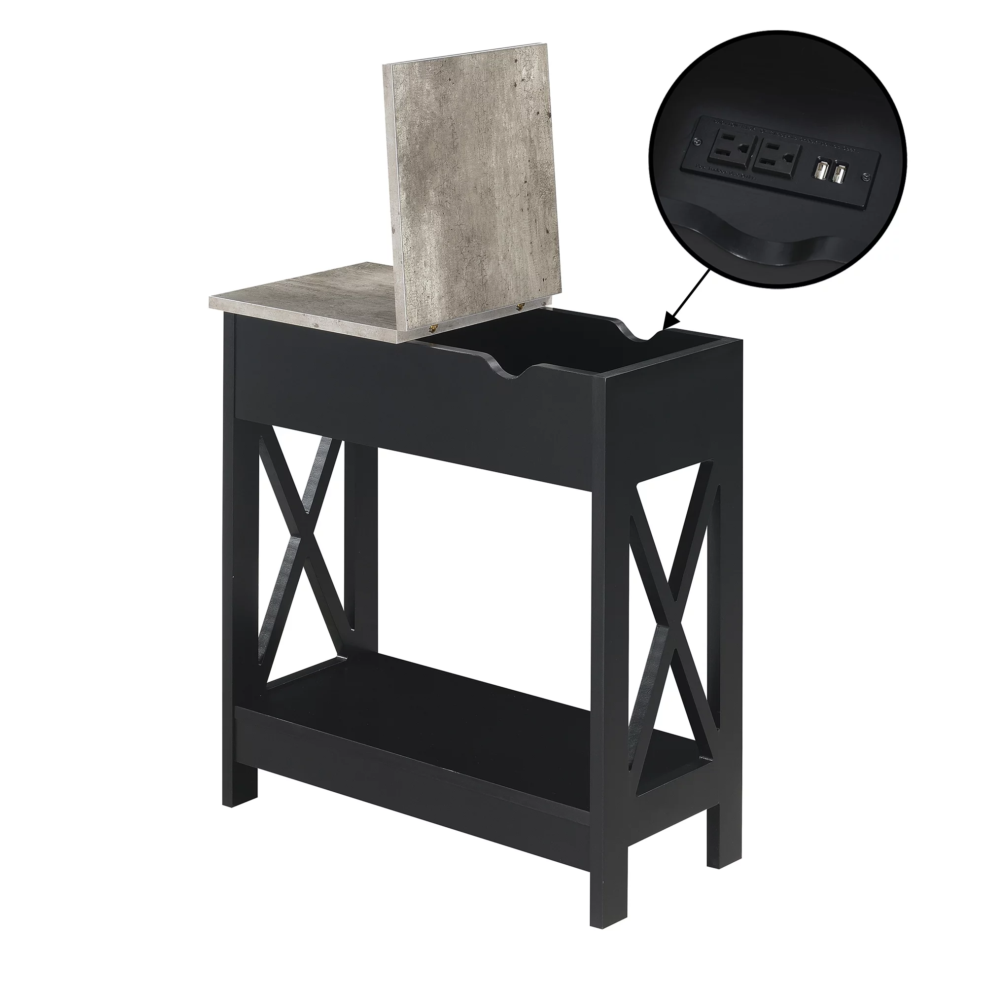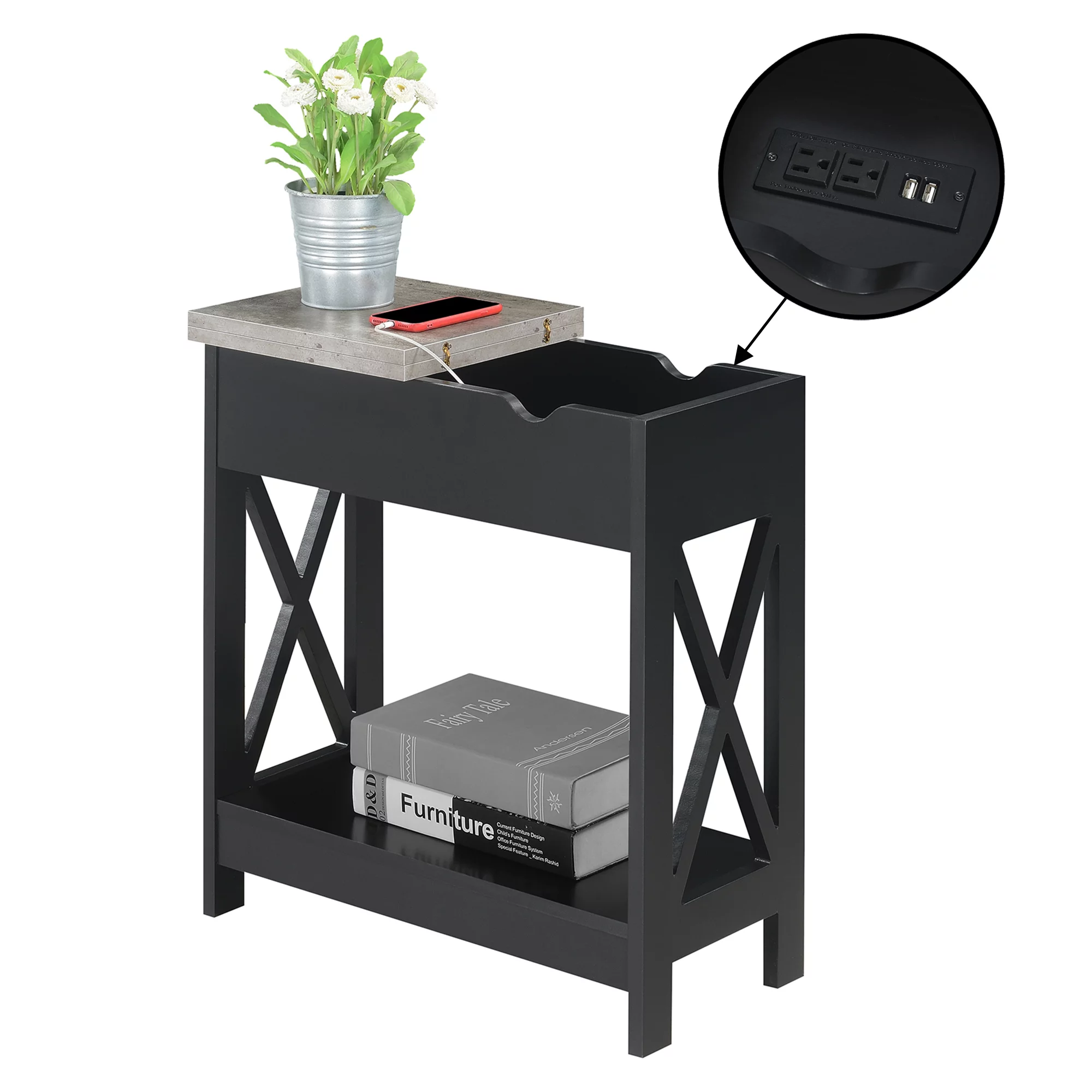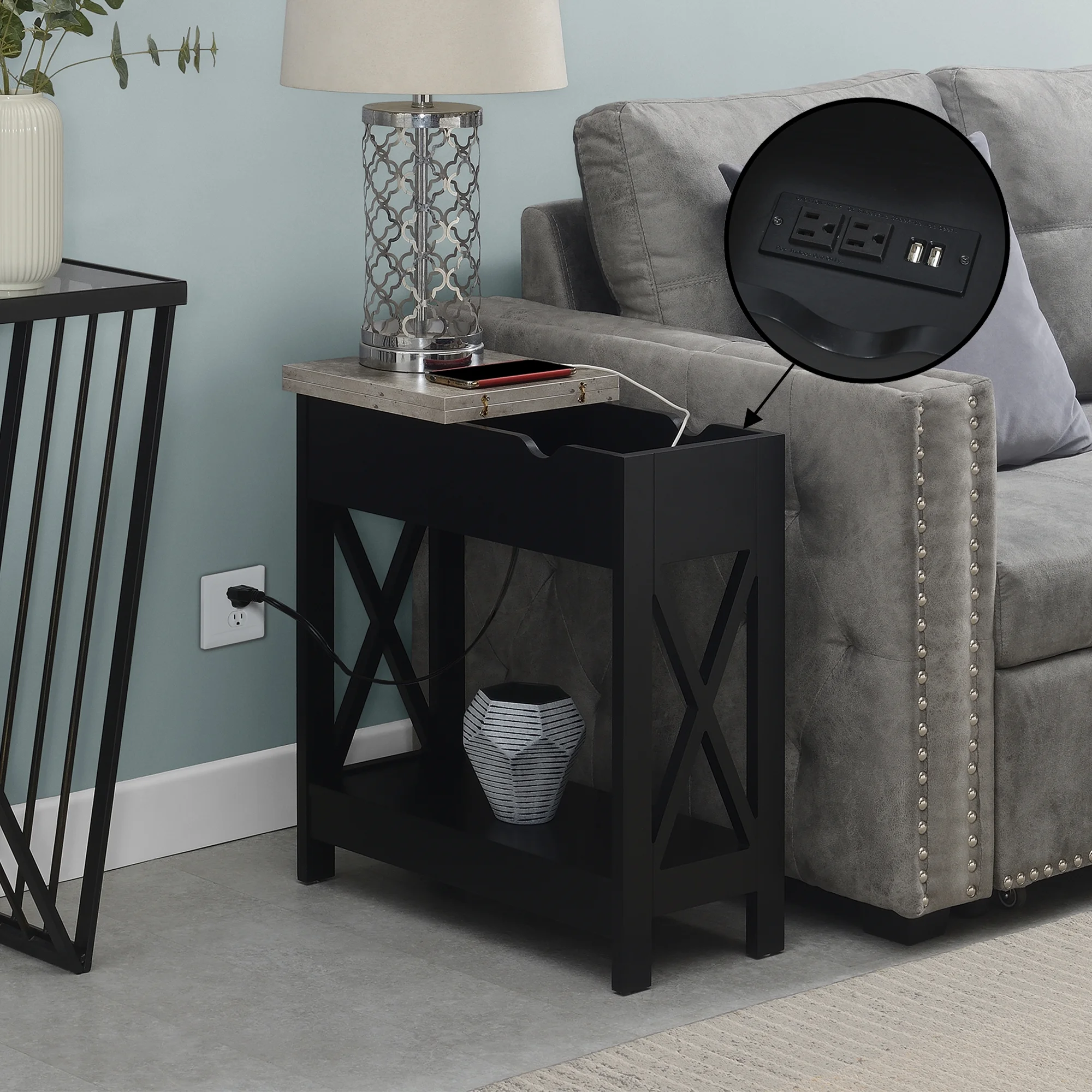 Convenience Concepts Oxford Flip Top End Table with Charging Station and Shelf, Faux Birch/Black