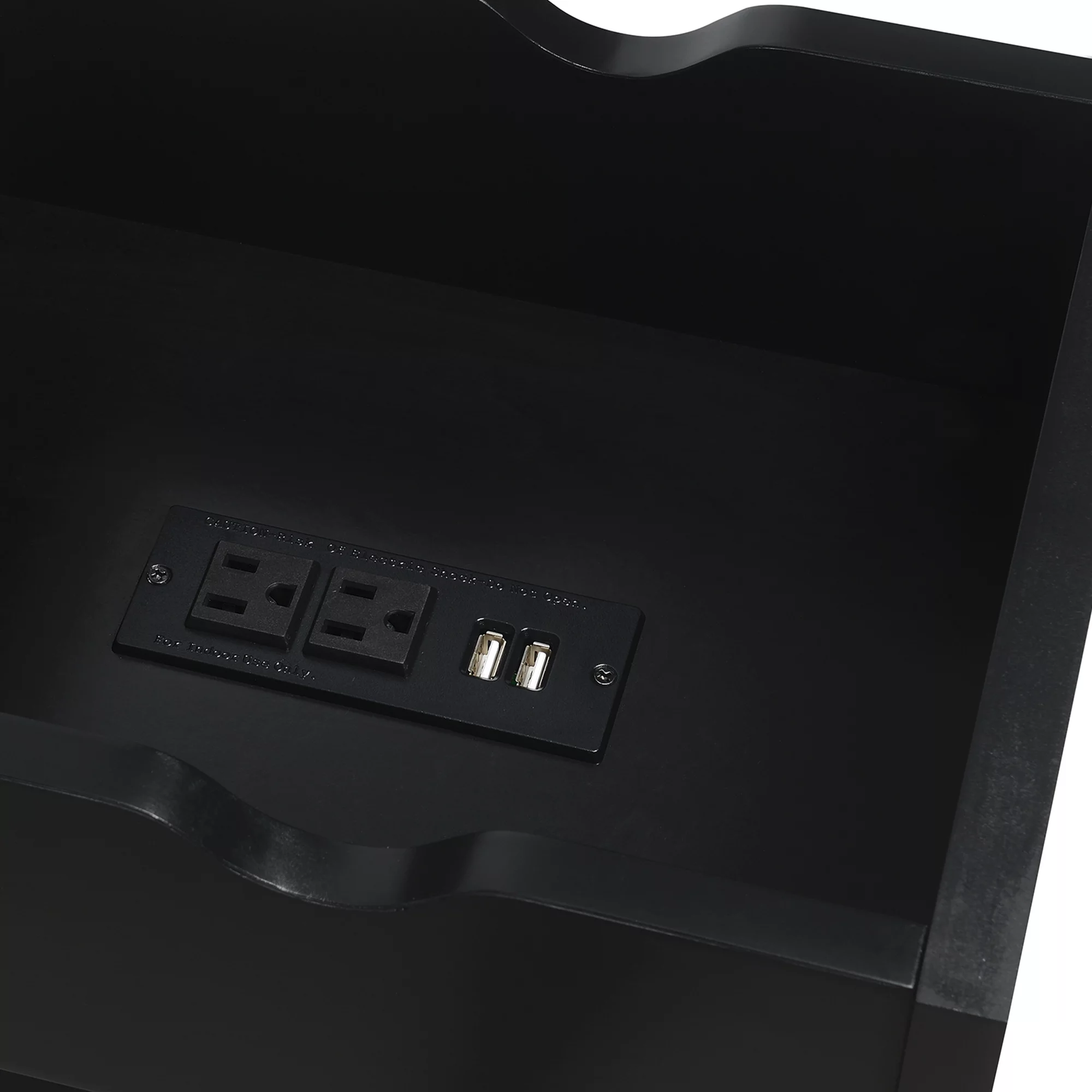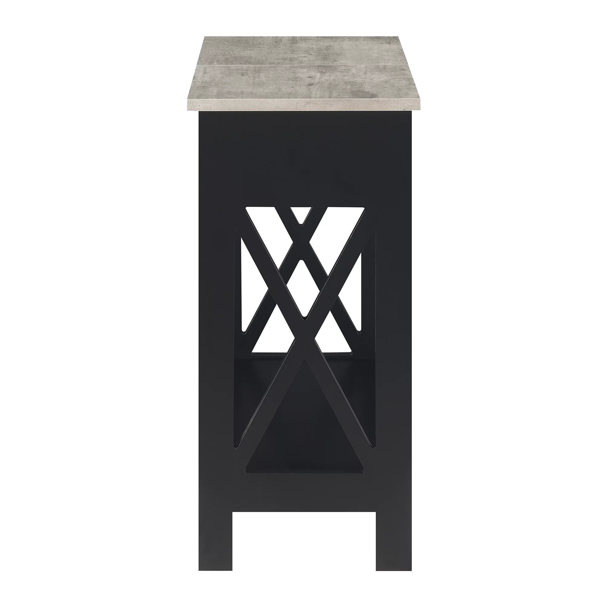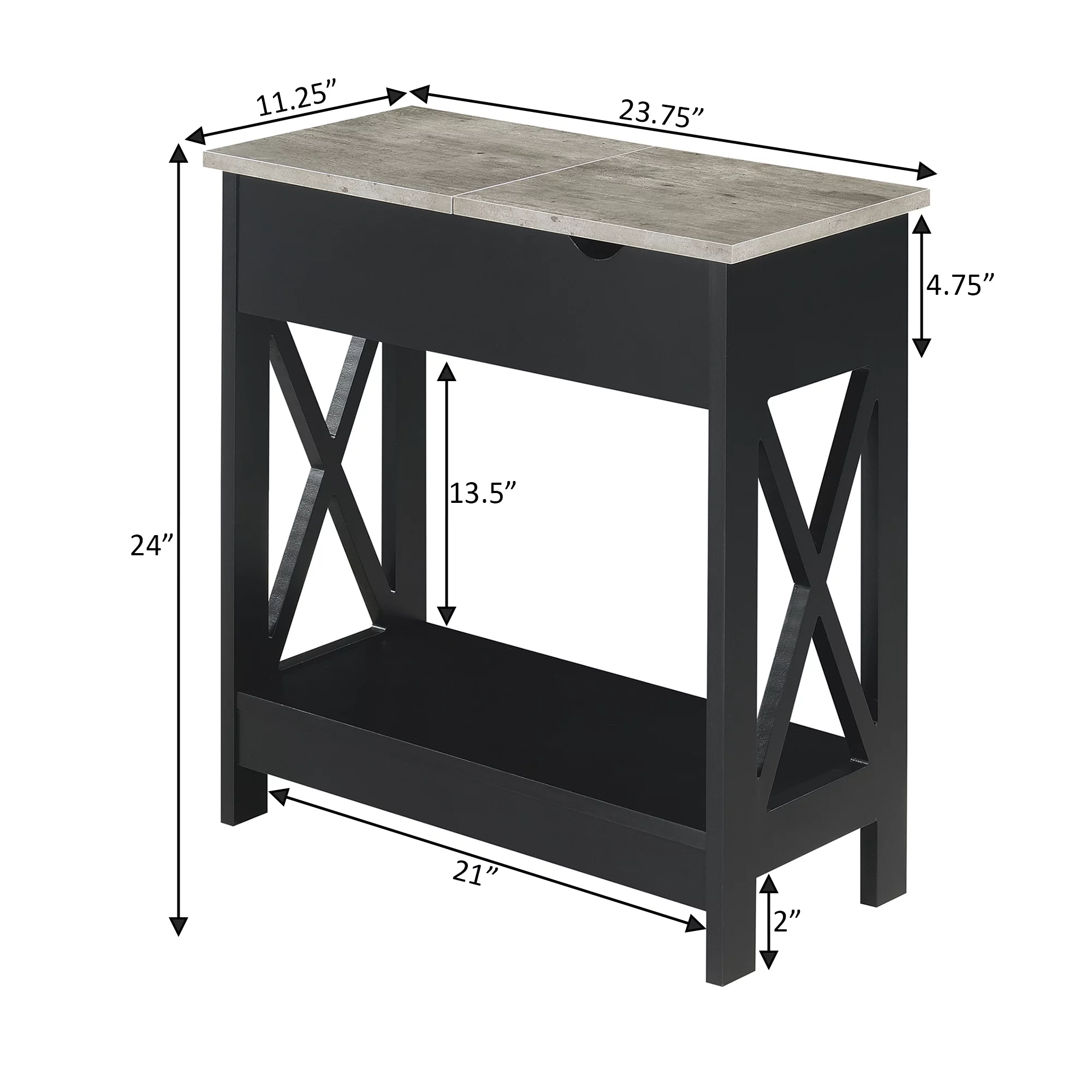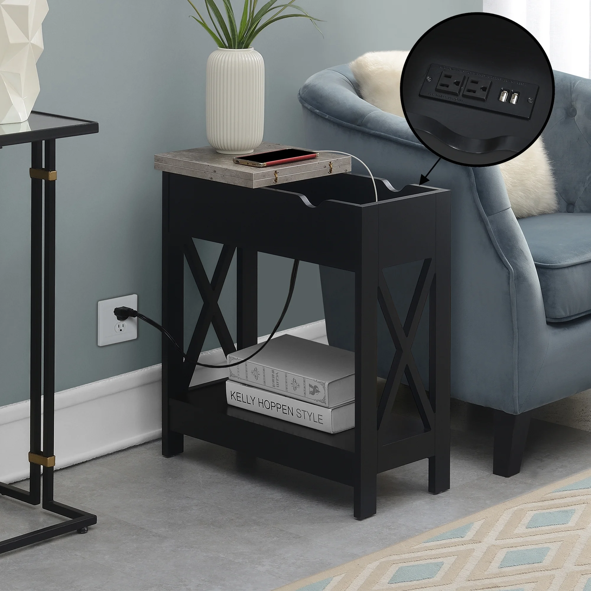 Convenience Concepts Oxford Flip Top End Table with Charging Station and Shelf, Faux Birch/Black