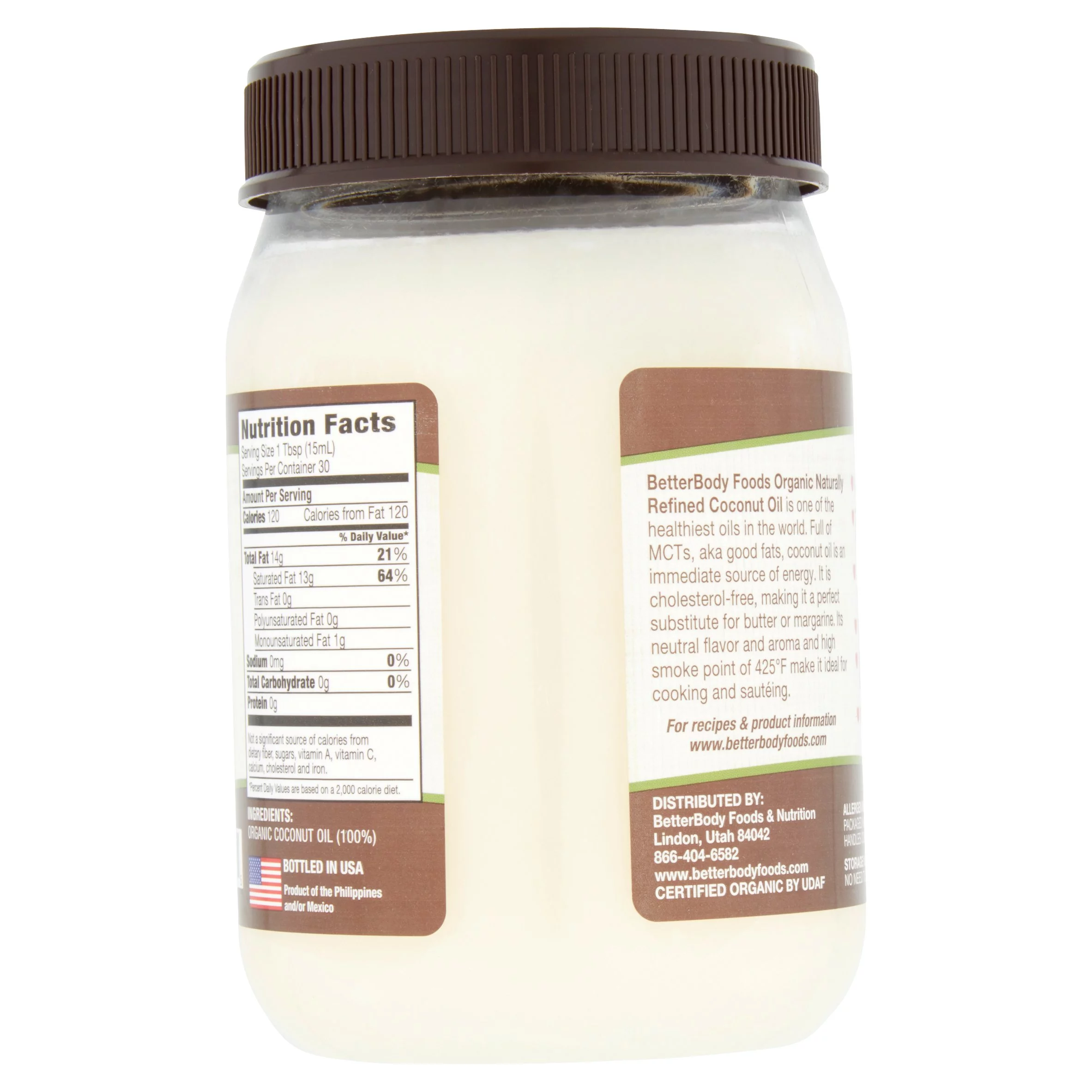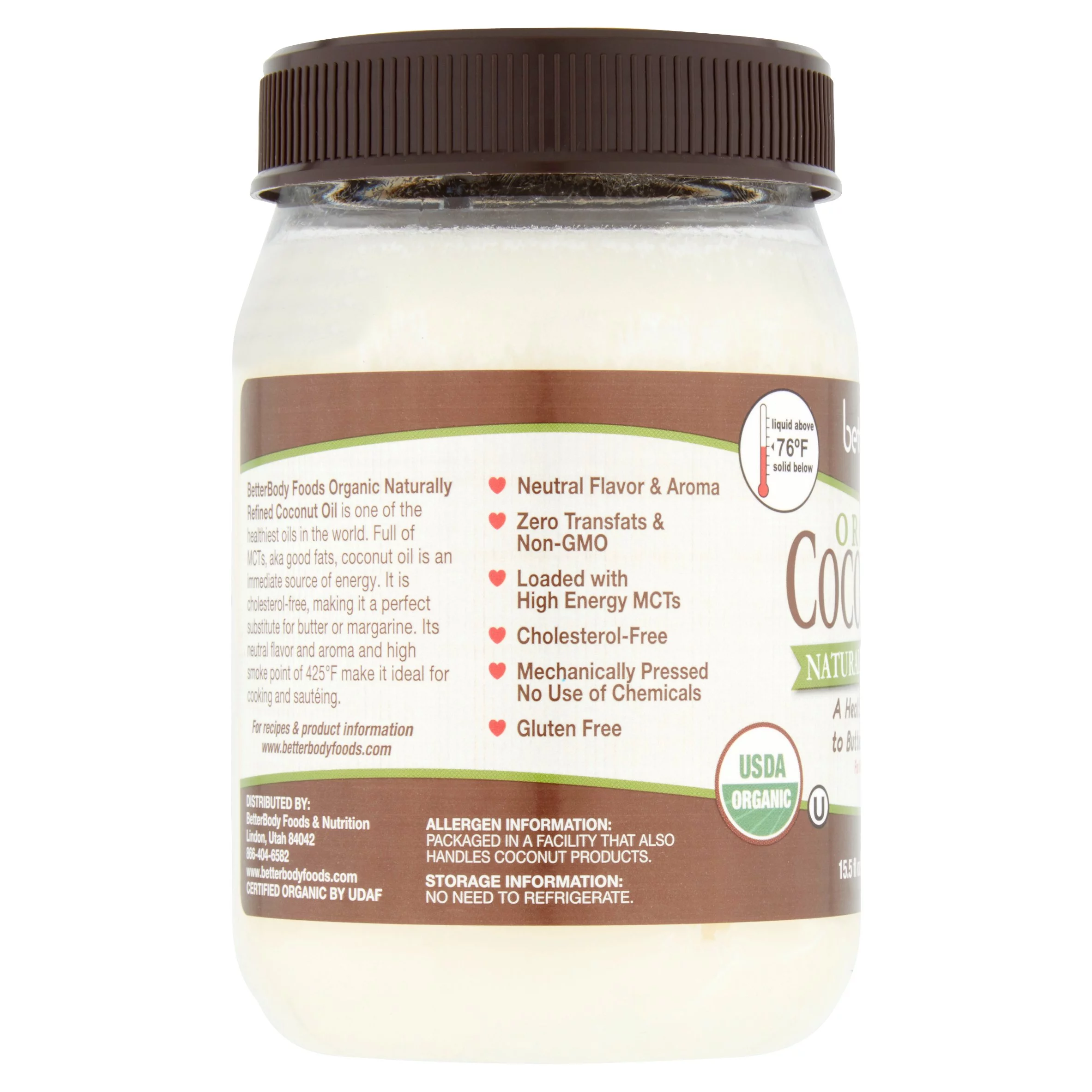 Betterbody Foods Organic Naturally Refined Coconut Oil, 15.5 fl oz, 6 pack