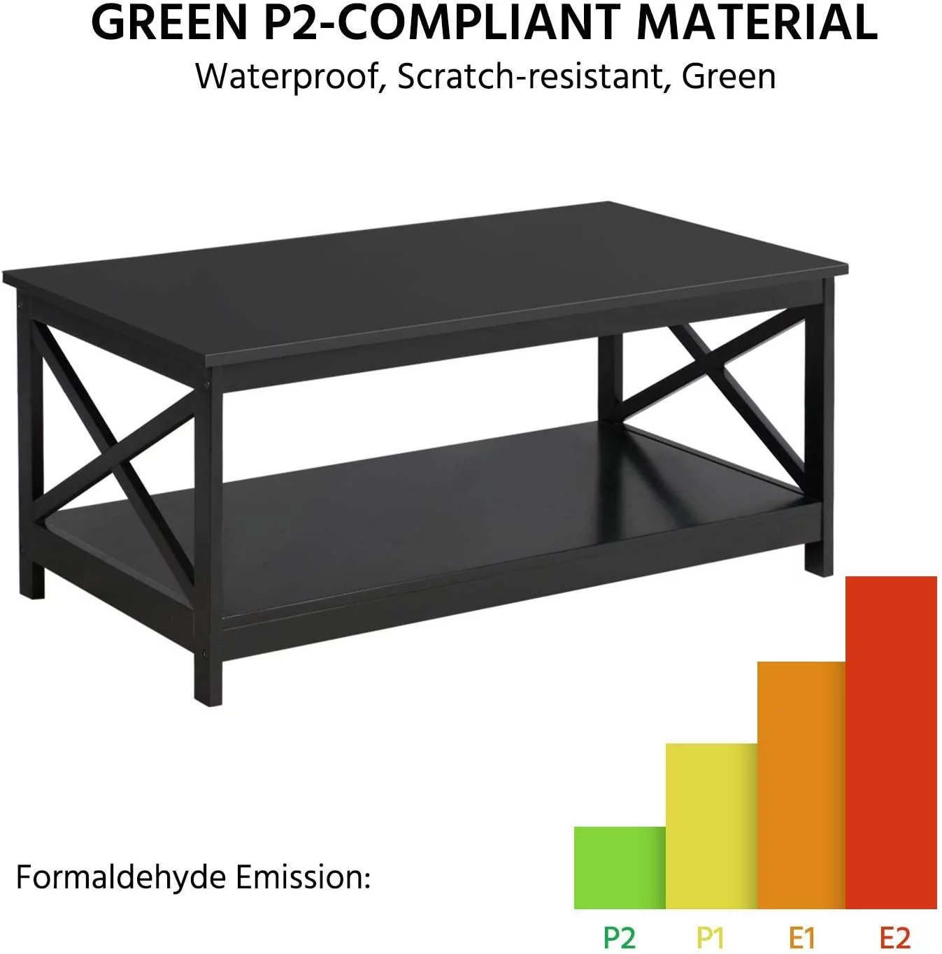 X-Design Black Coffee Table with Lower Storage Shelf Cocktail Table for Living Room/Apartment/Dormitory, Black