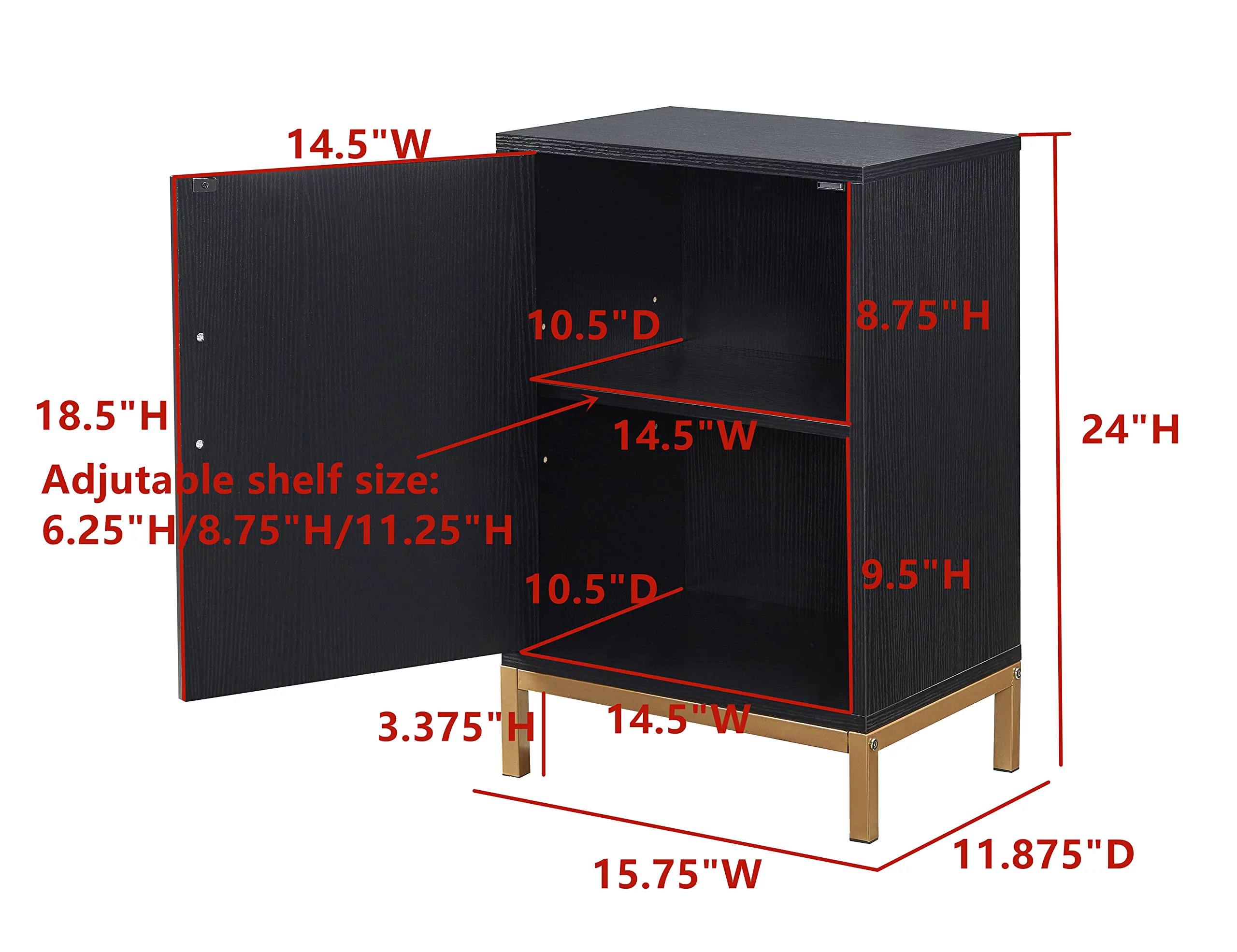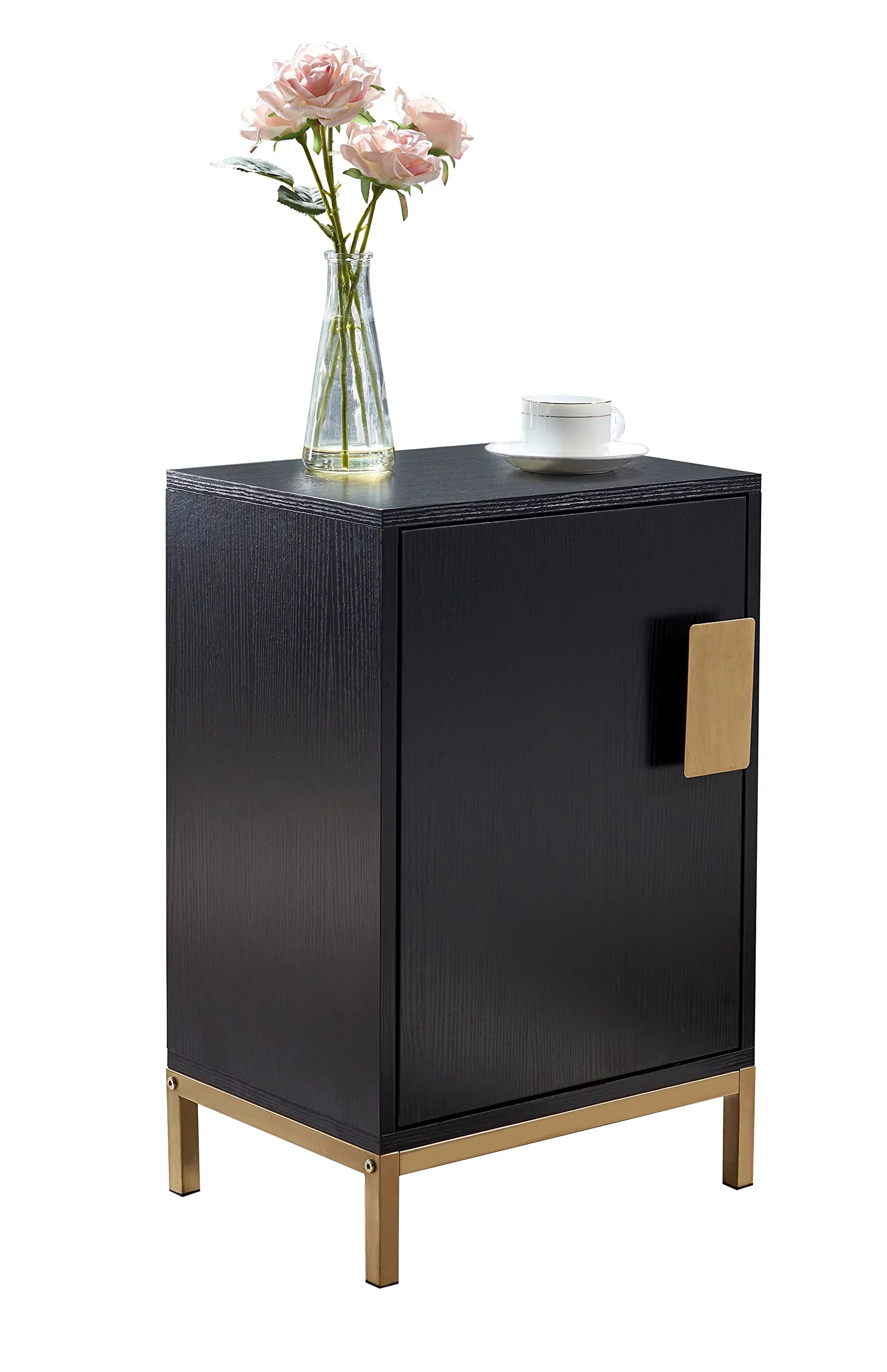 Kings Brand Furniture Wood Accent Cabinet Side Table for Bedroom Living Room, Black/Gold