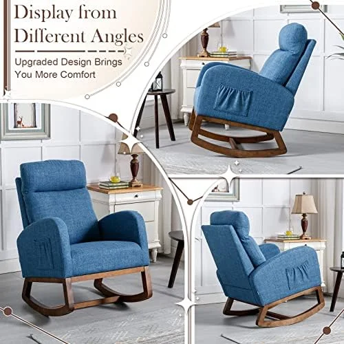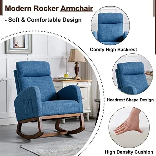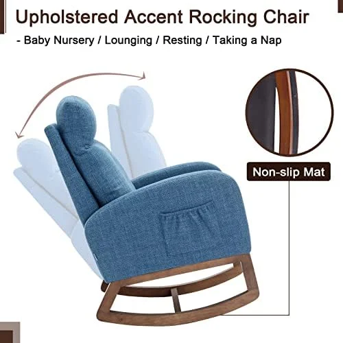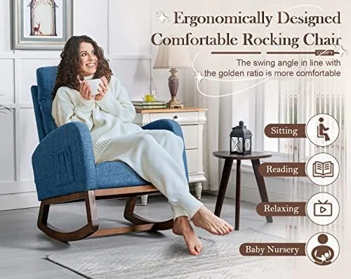 Modern Accent Rocking Chair Upholstered Nursery Glider Rocker for Baby and Comfy Armchair with Pocket Living Room Lounge Arm Chair High Backrest with Decorative Buttons Off White