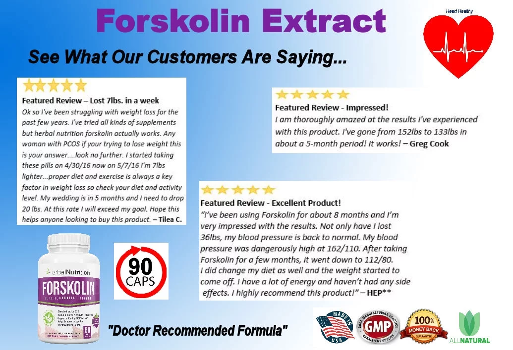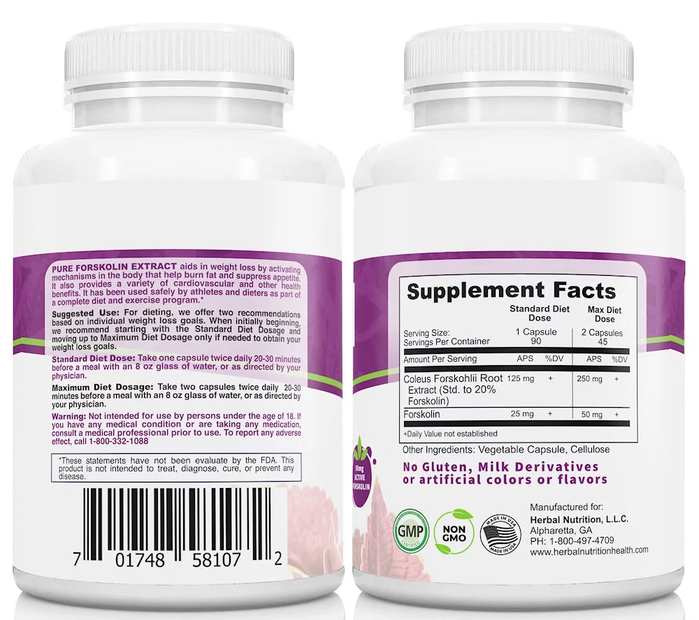Herbal Nutrition Pure Forskolin Extract Weight Loss Supplement, 90 Capsules