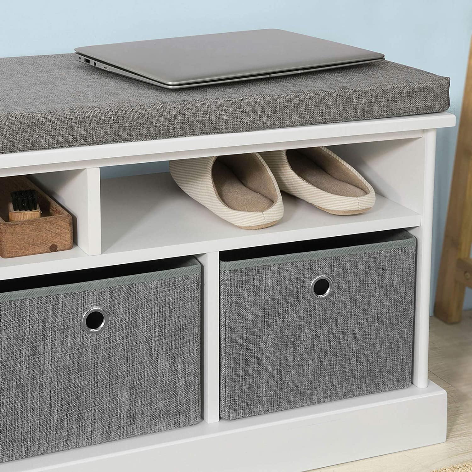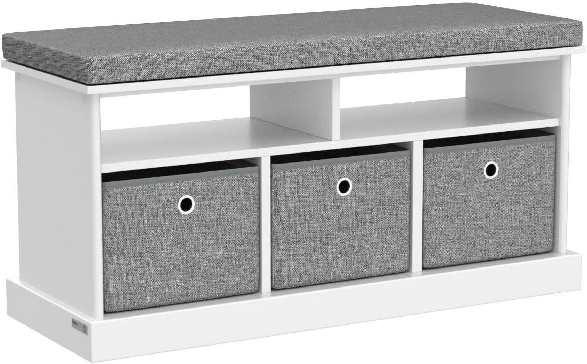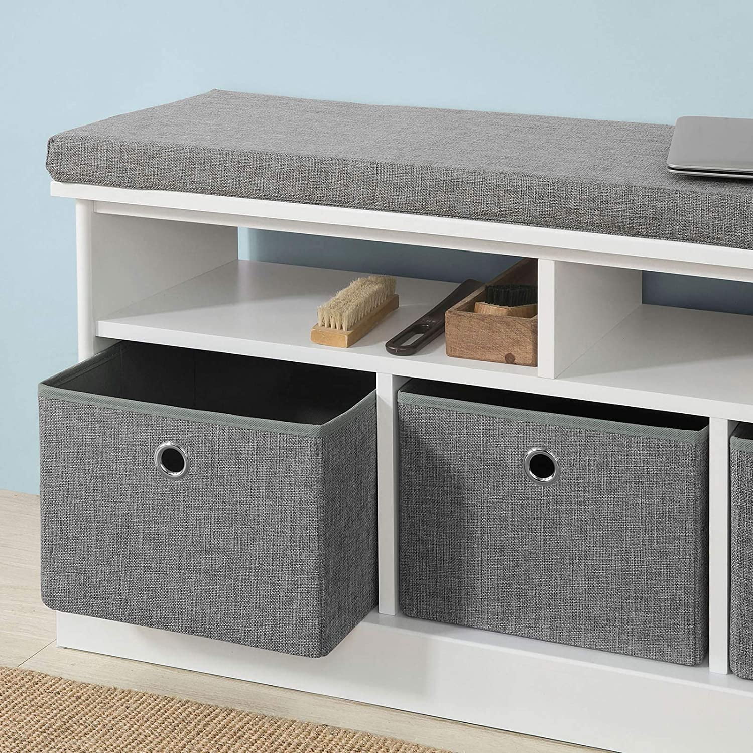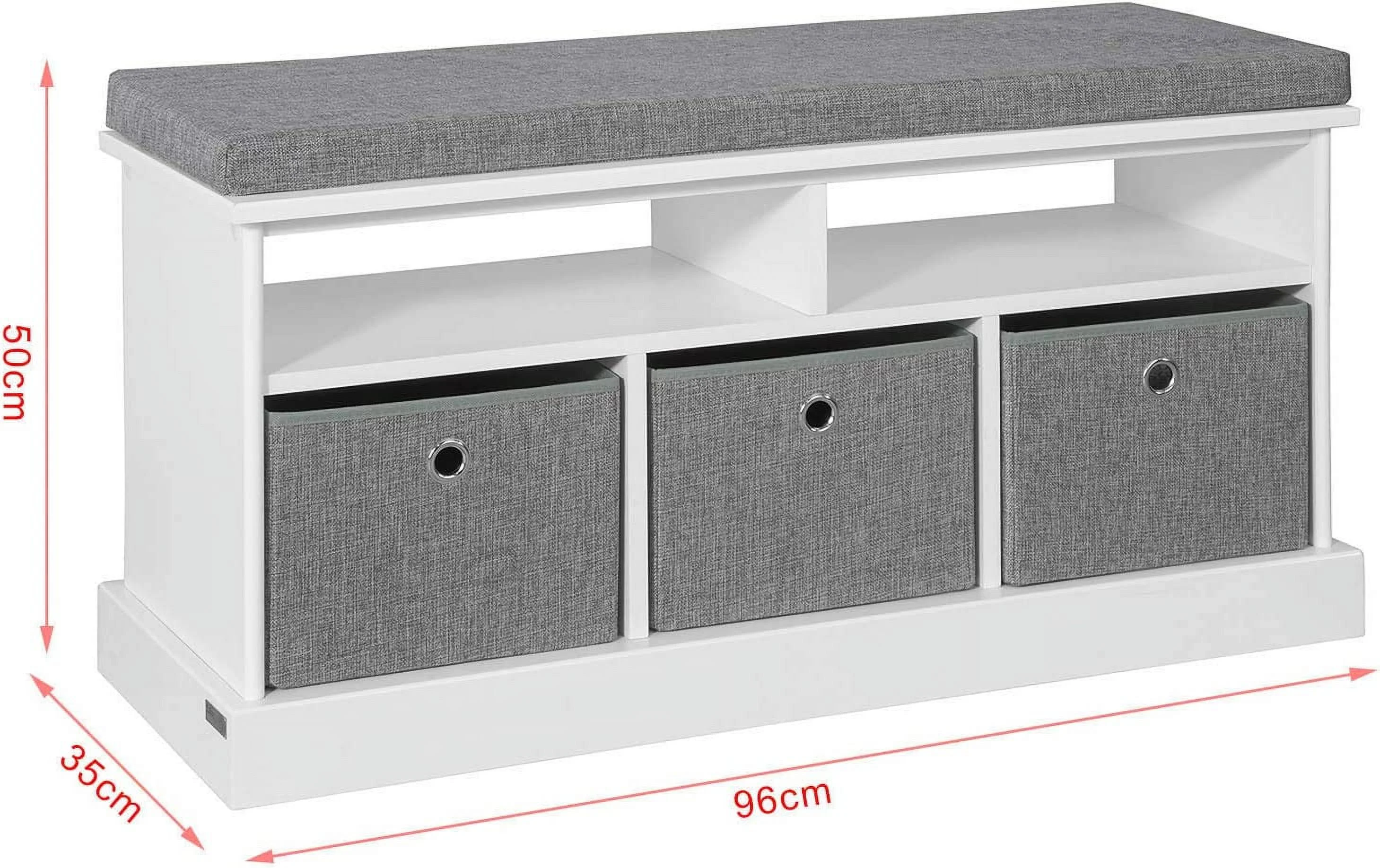 LIHONG FSR67-HG, 3 Baskets Hallway Storage Bench, Shoe Bench Shoe Rack Shoe Cabinet with Seat Cushion