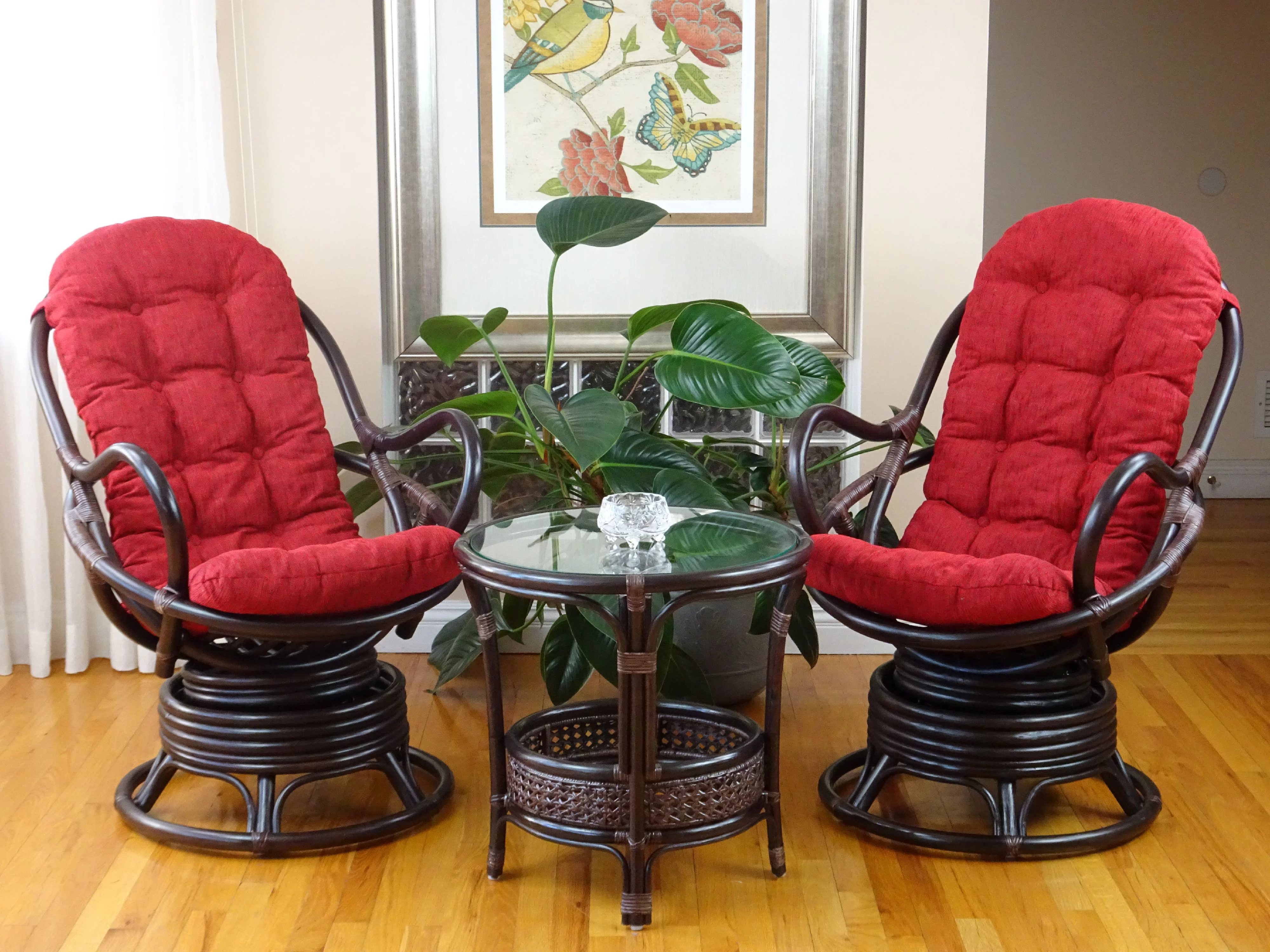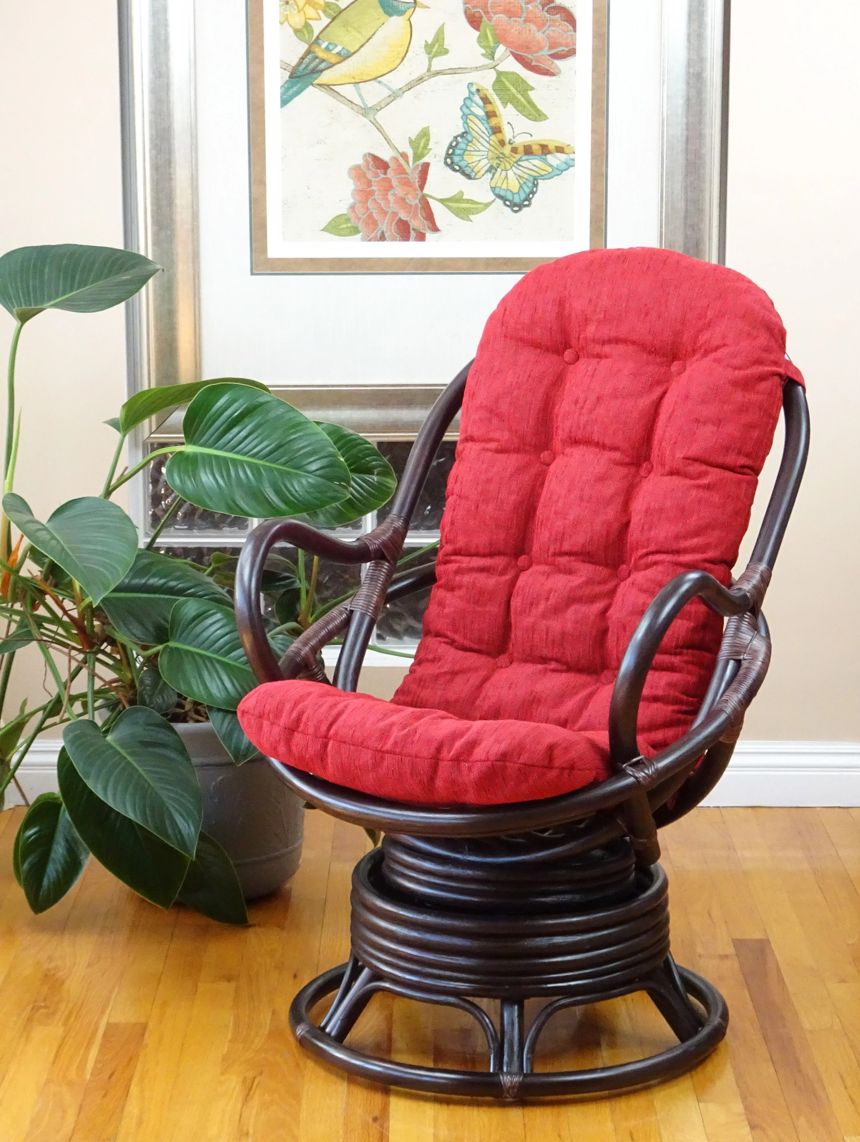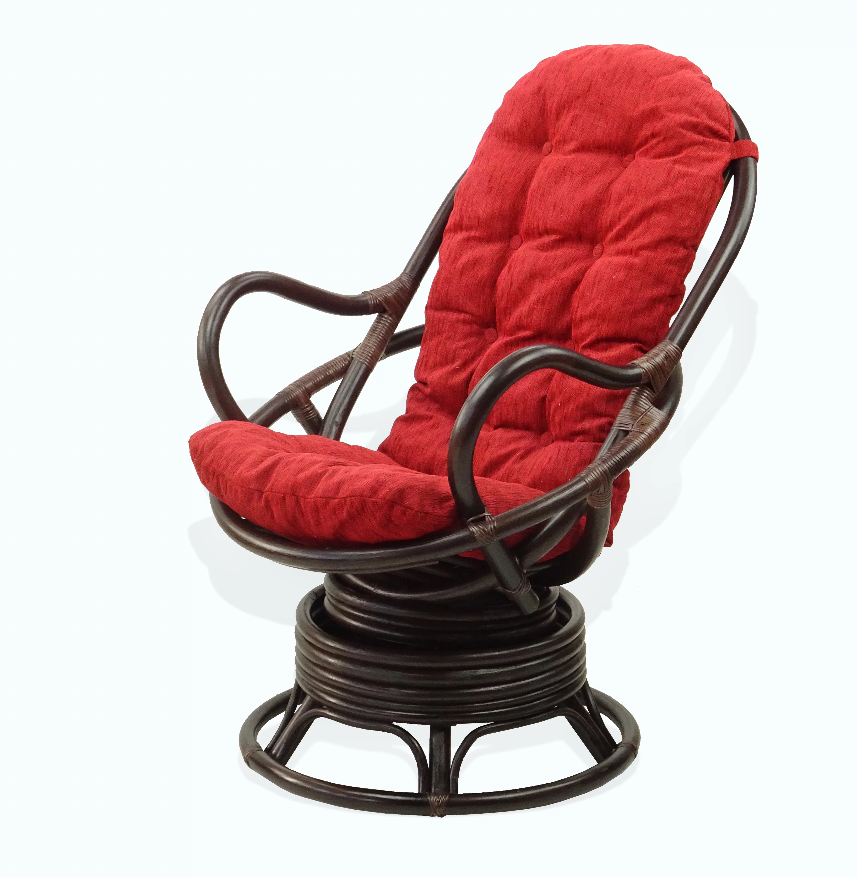 SK New Interiors Java Swivel Rocking Lounge Chair Natural Rattan Wicker w/Burgundy Cushion, Dark Brown