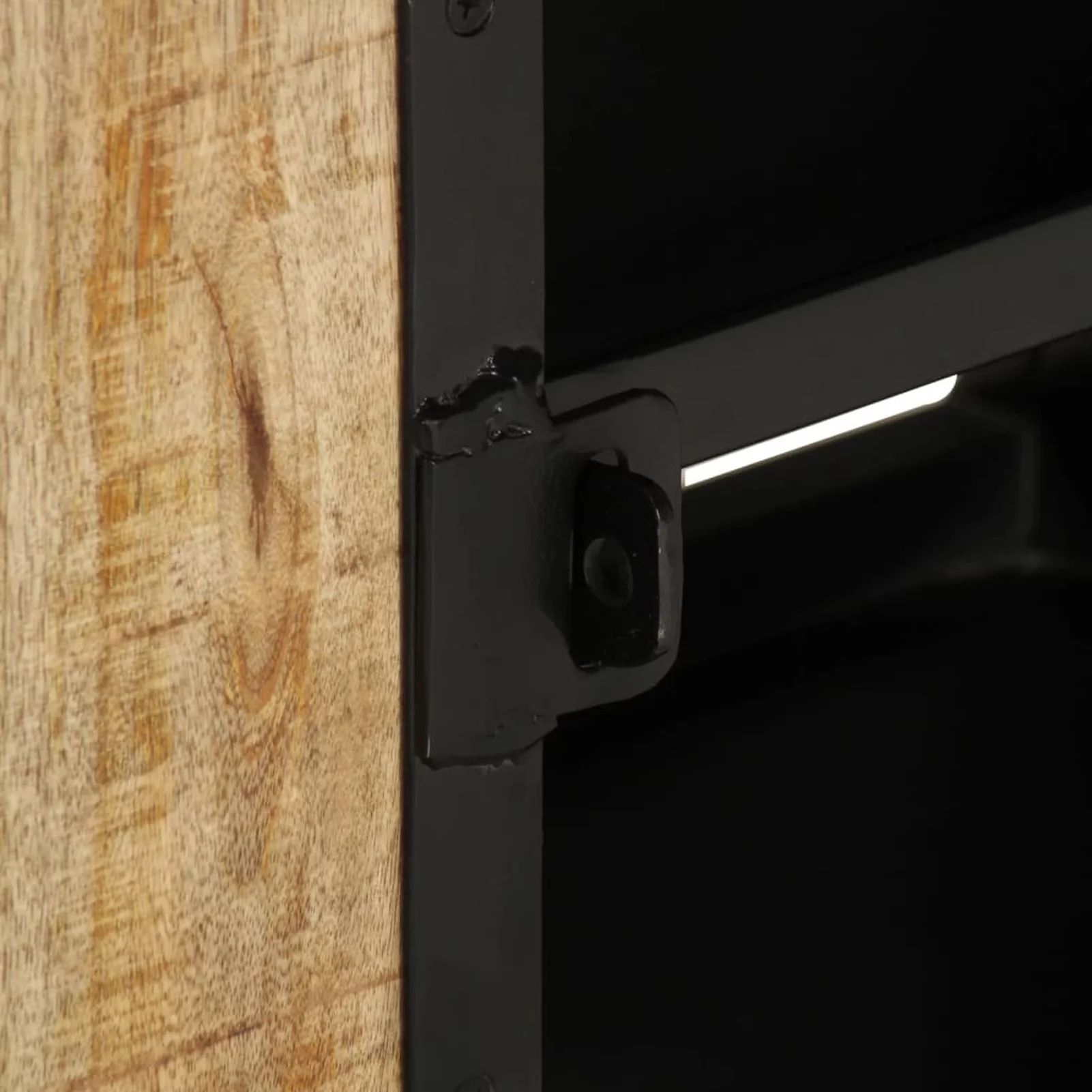 Anself TV Stand with 2 Compartments and 2 Storage Shelves Rough Mango Wood Television Cabinet Sofa End Side Table Iron Legs for Living Room Home Furniture 43.3 x 11.8 x 17.7 Inches (L x W x H)