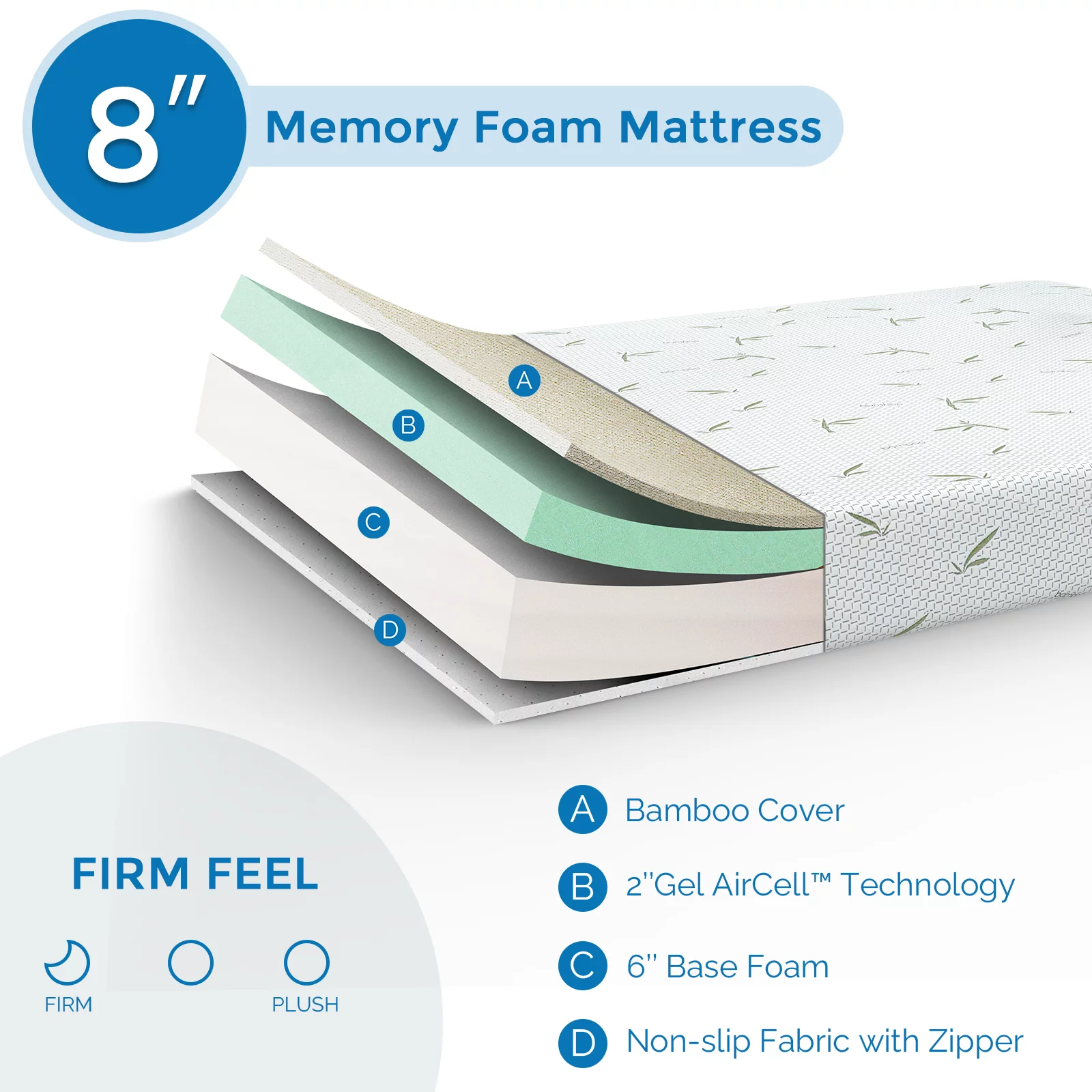 Full Mattress, 8 inch Memory Foam Mattress Bed in a box, with Green Tea Cooling Gel, Medium, Made in USA