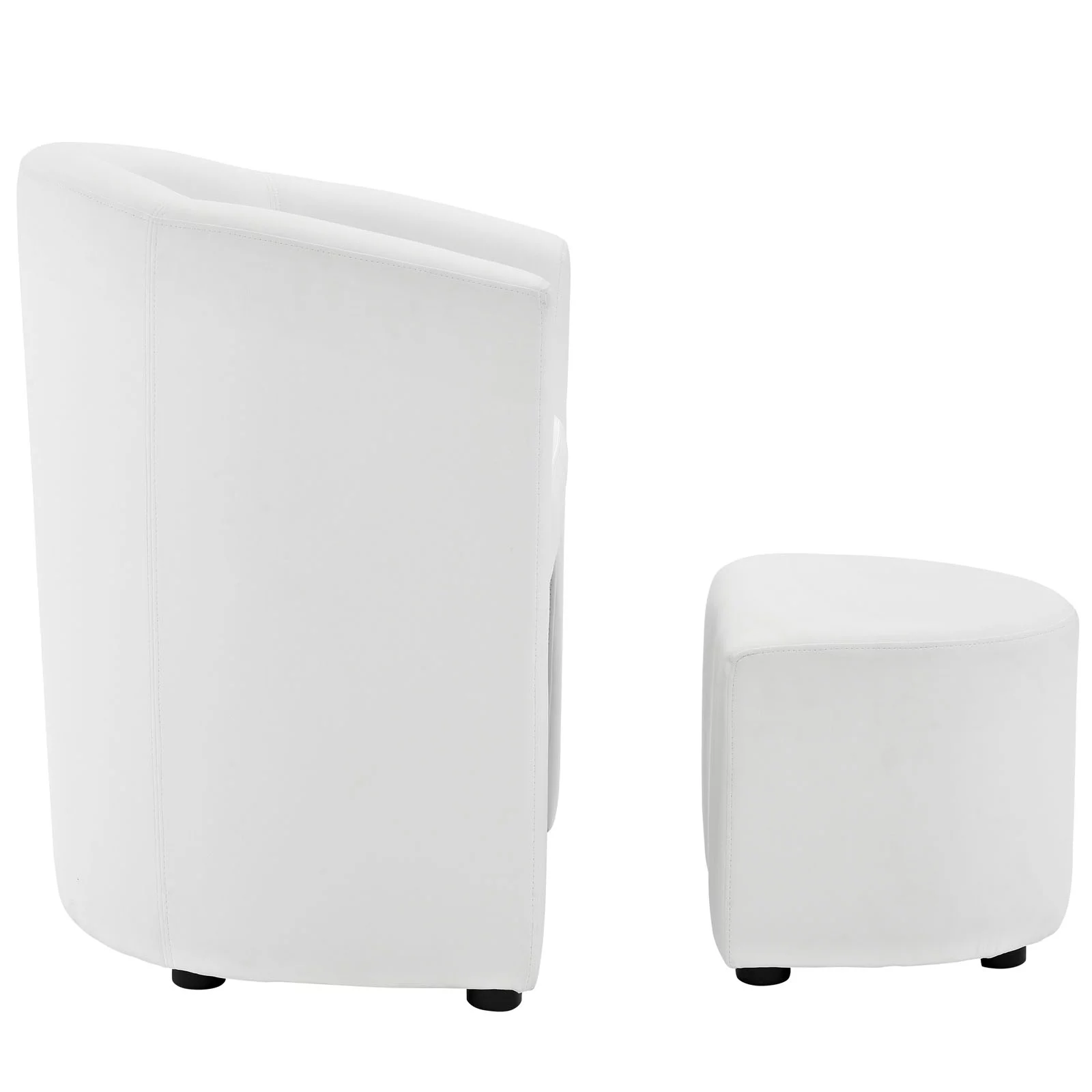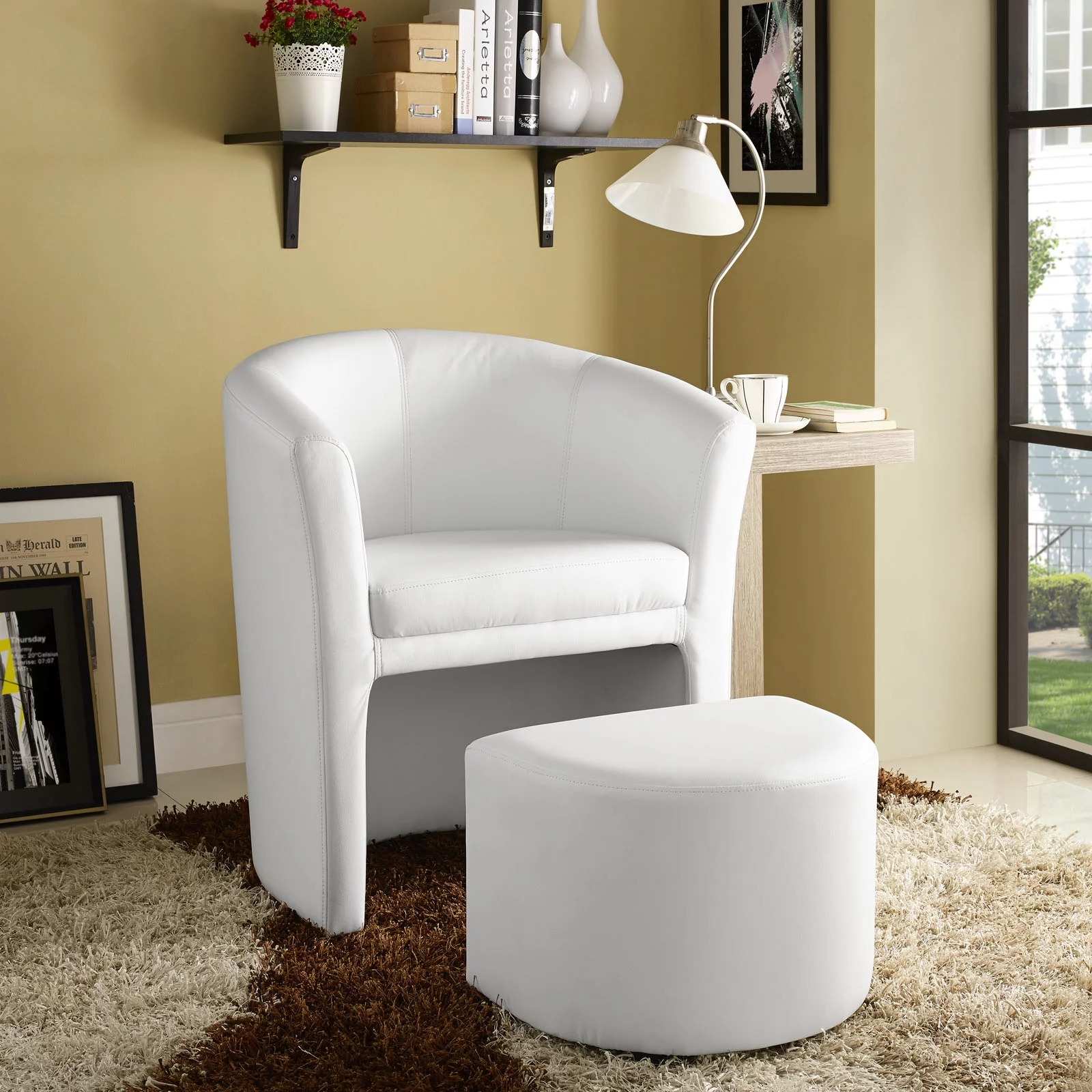 Modern Contemporary Armchair and Ottoman, White Faux Leather