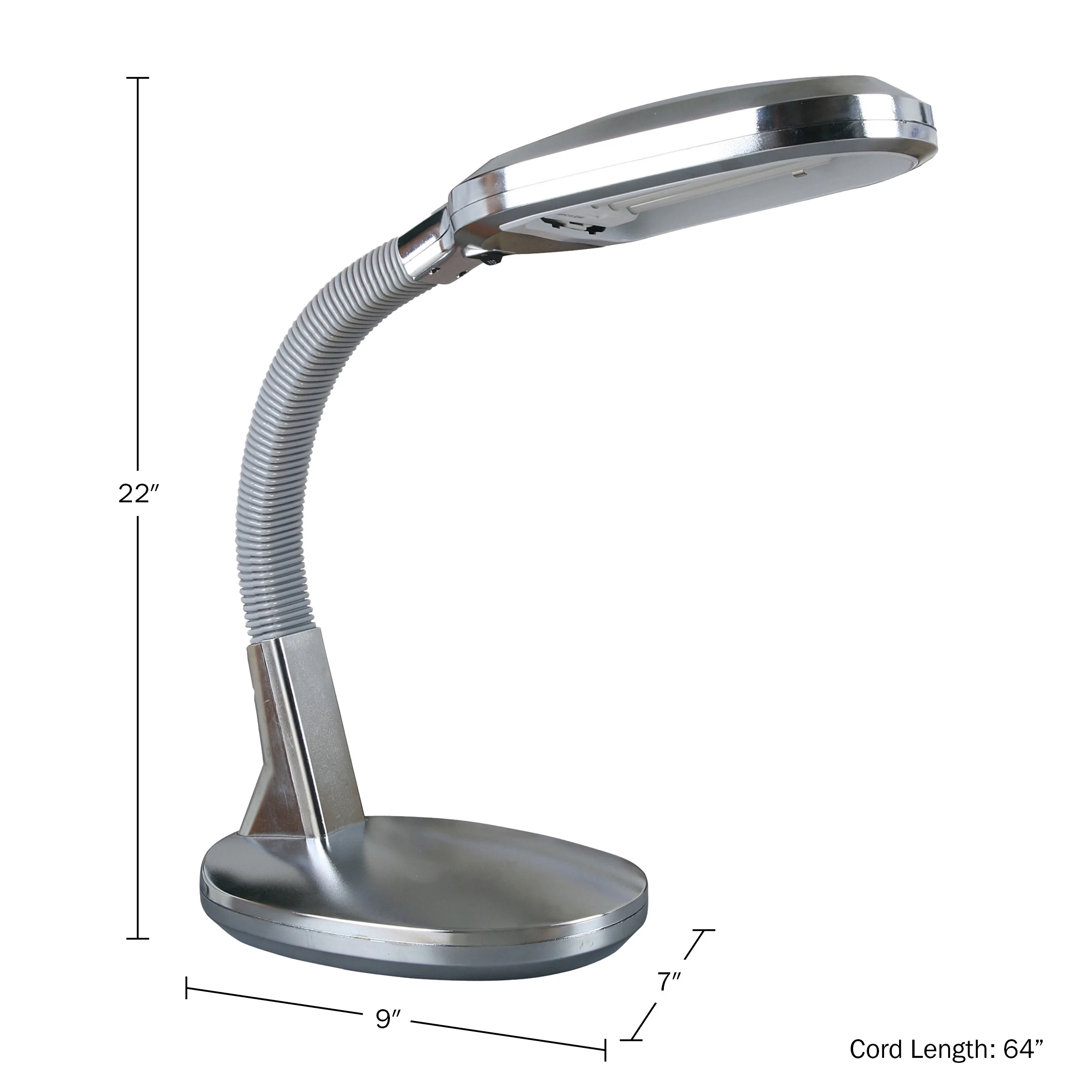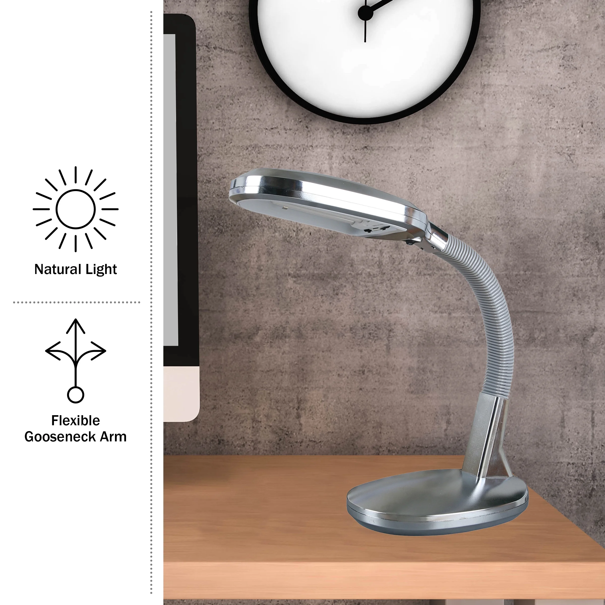 Lavish Home Natural Sunlight Desk Lamp, Adjustable Gooseneck for Home and Office Lamp, Silver