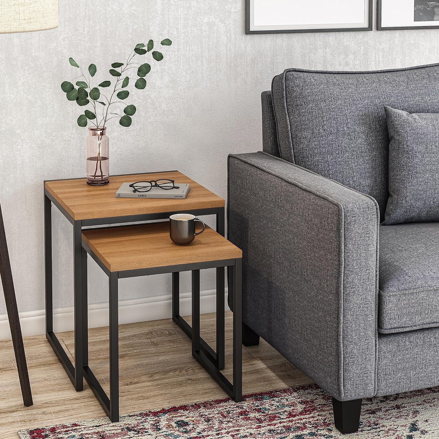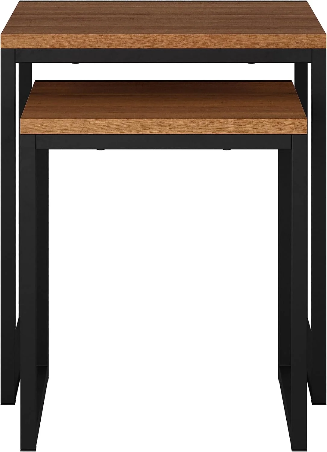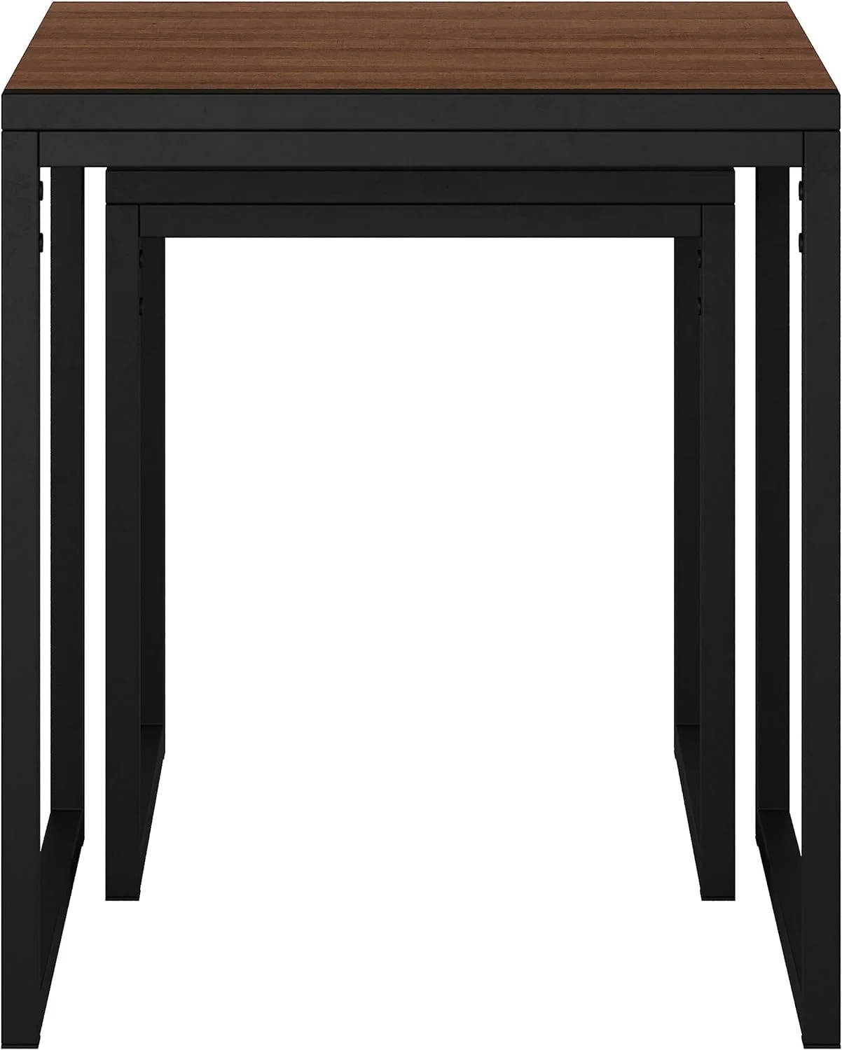 Fort Worth Square Metal Nesting Side Tables In Brown Wood Grain/Black