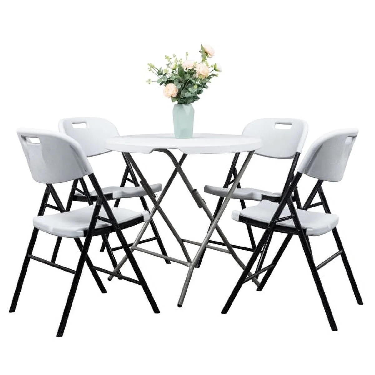 SYTHERS Plastic Folding Chairs, 4 Pack Stackable Dining Chairs for Guests Kitchen Office Wedding Party Picnic, White