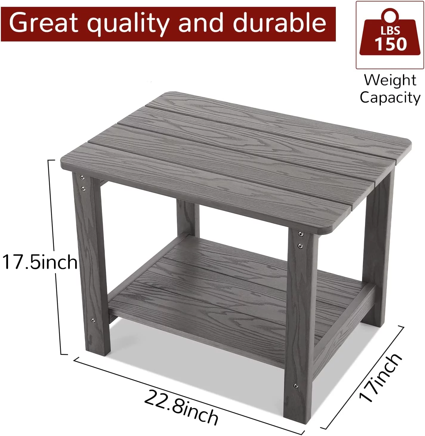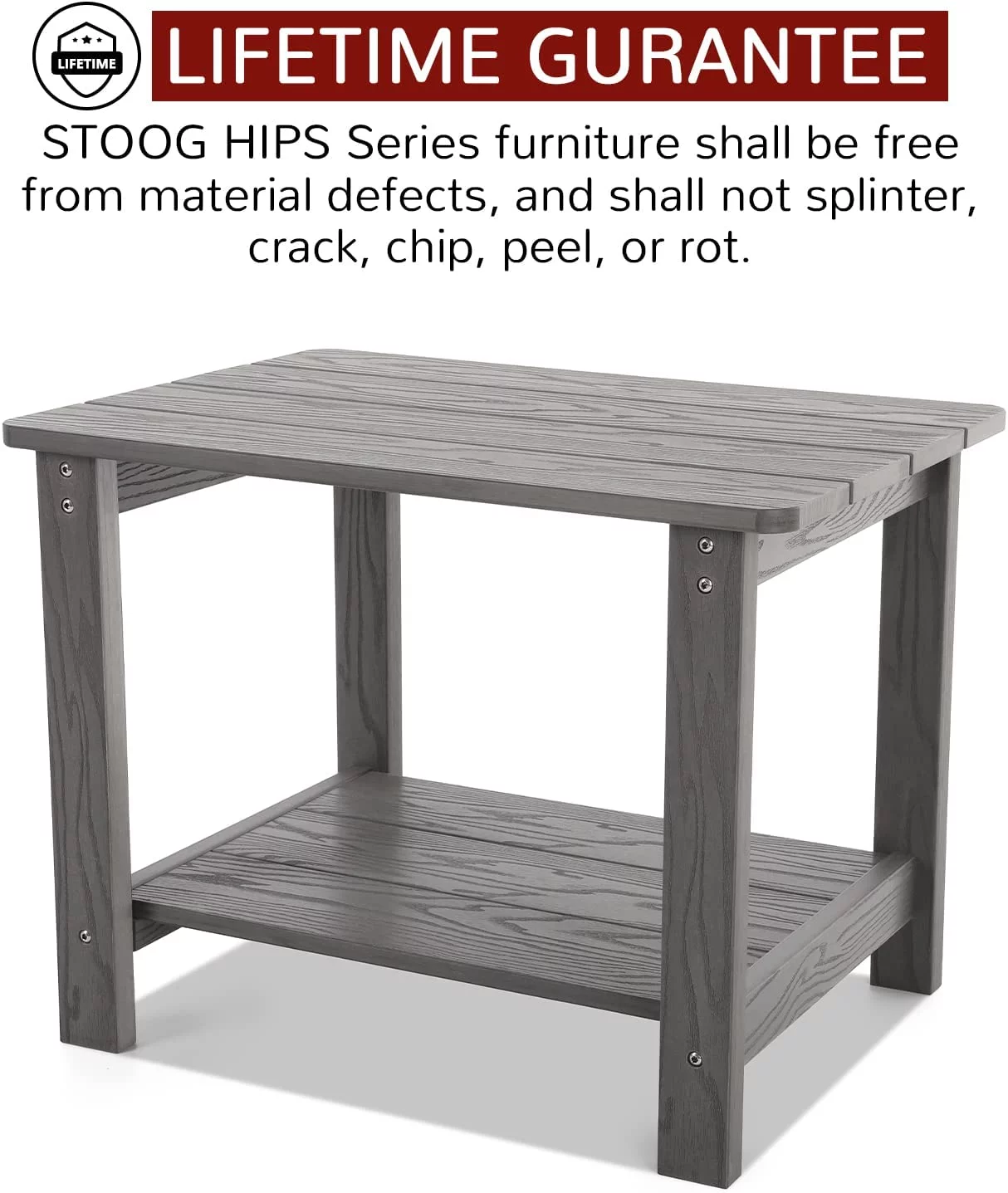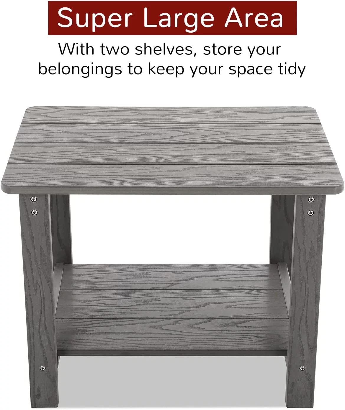 Jiekair Outdoor Side Table, All Weather Resistant Rectangle 2-Tier Patio Table for Backyard Garden, Gray