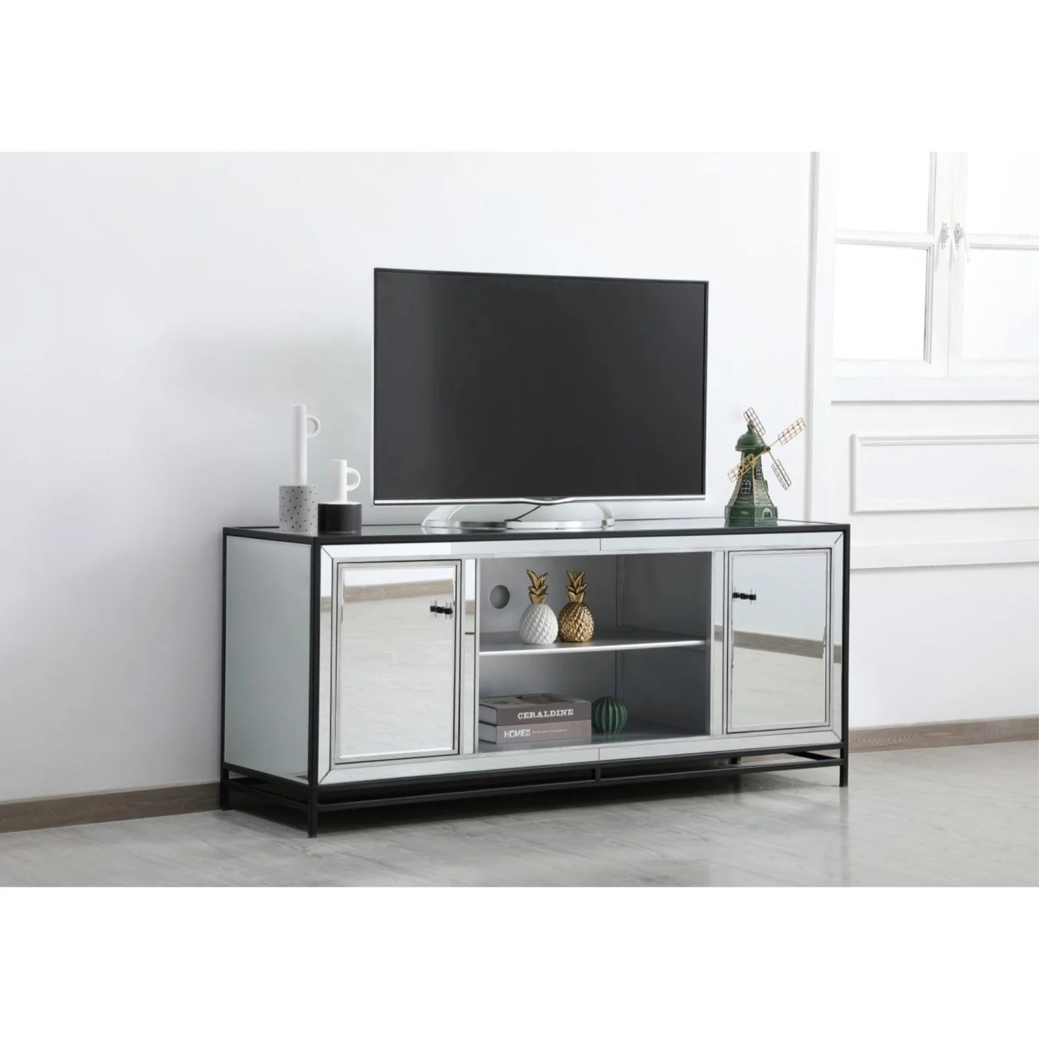 Elegant Decor James Mirrored TV Stand for TVs up to 55" in Black