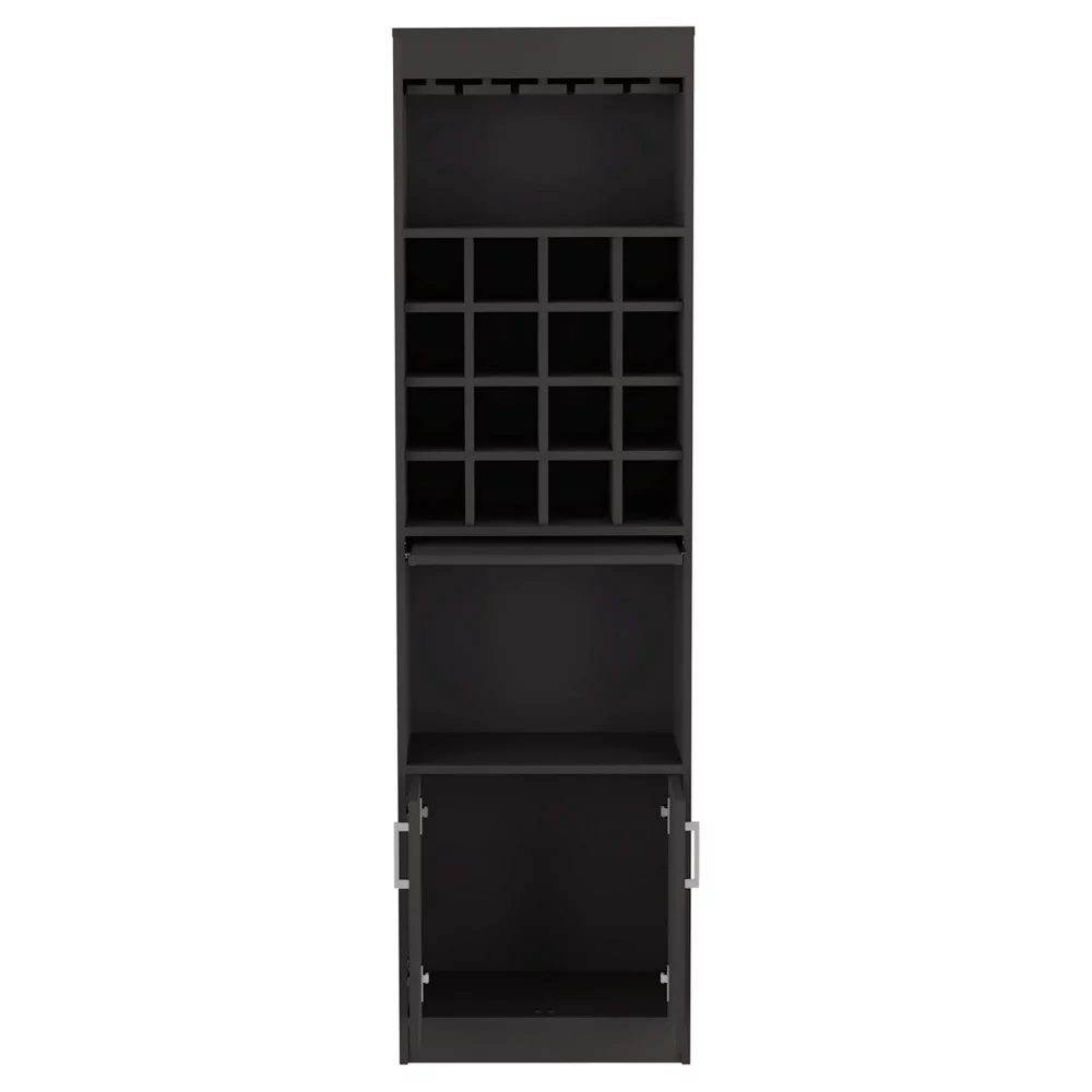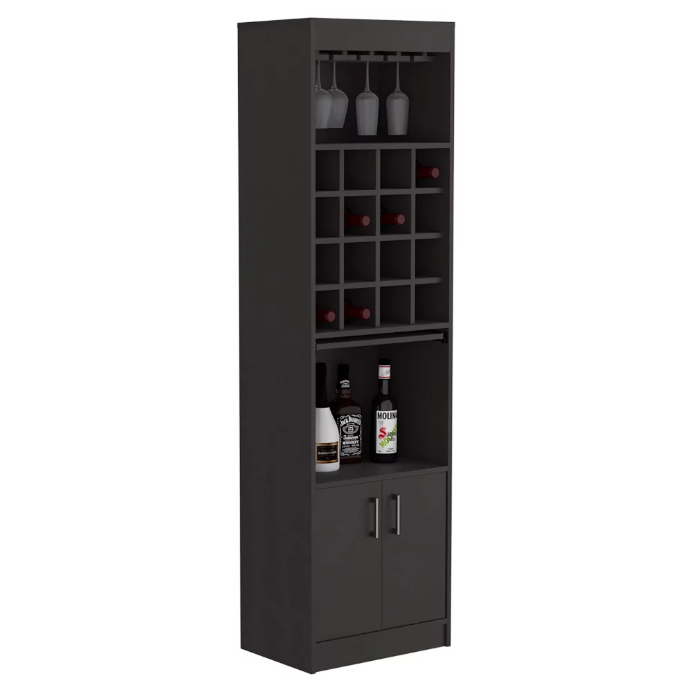 Depot E-Shop Athens Kava Bar Cabinet, 16 Built-in Wine Rack, Two Door Cabinet, Two Shelves, Black