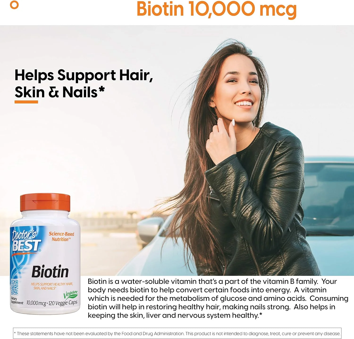 Doctor's Best Biotin - 10000 mcg - 120 Veggie Caps Pack of 2