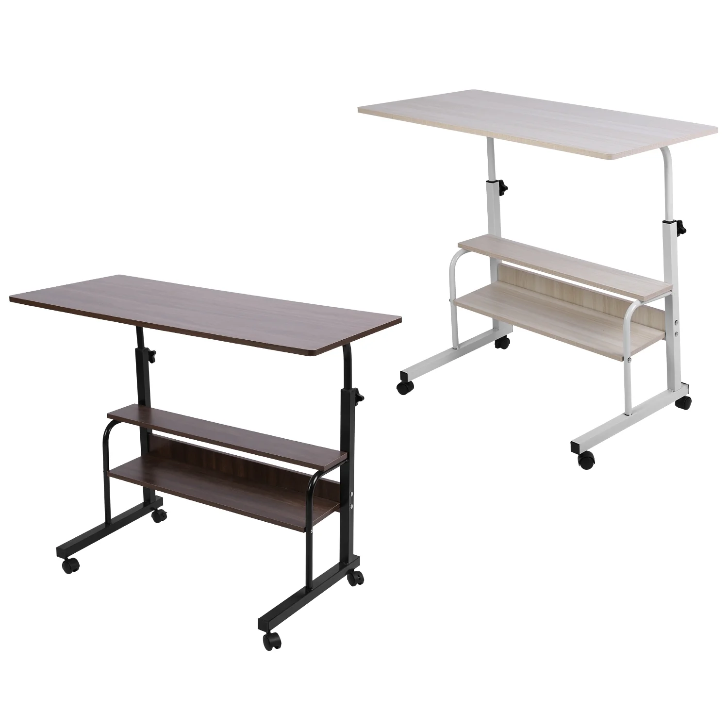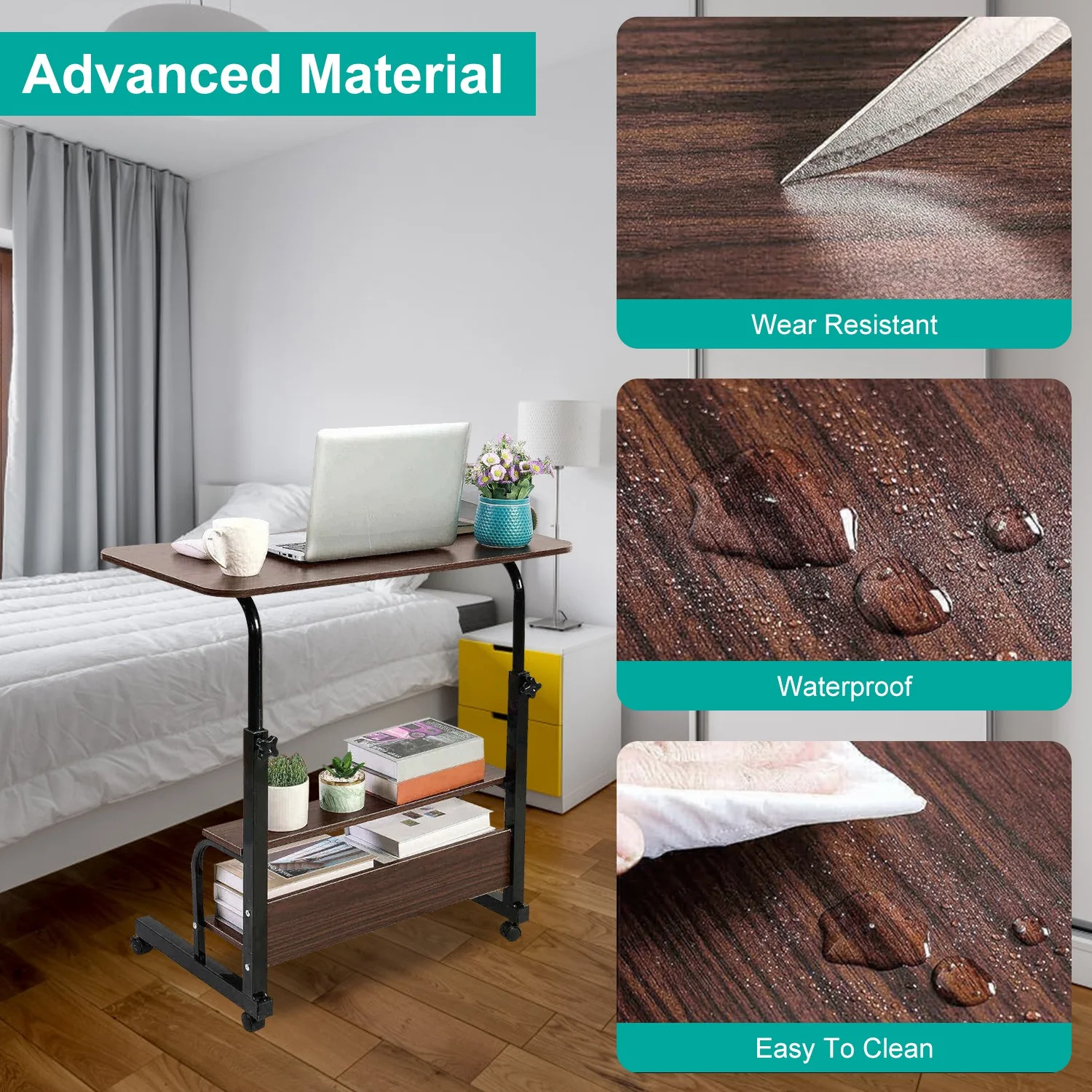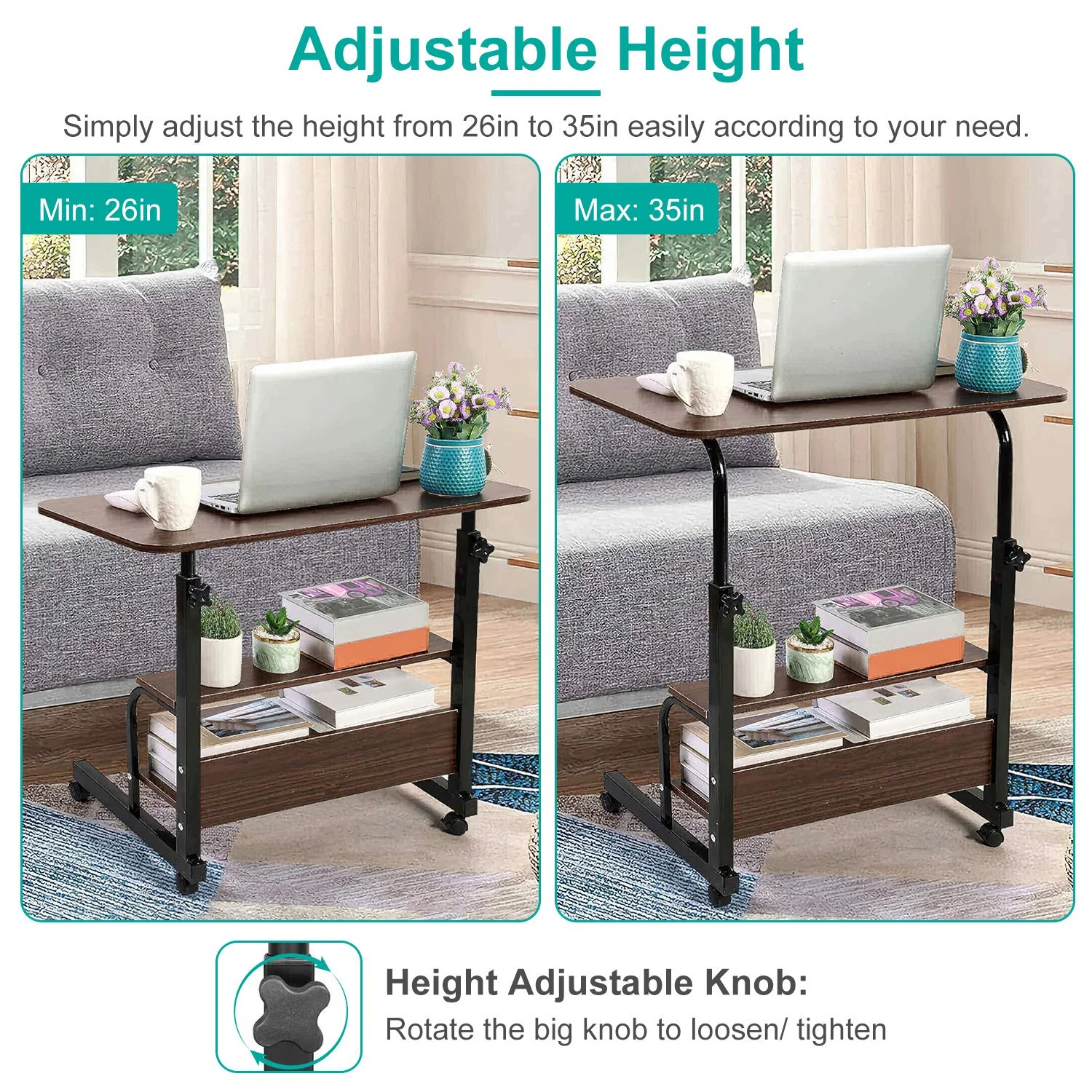 iMounTEK Laptop Desk 3-Tier Mobile Laptop Table 35in Height Adjustable C Side Snack Table with Rolling Wheels for Couch Bed Sofa Living Room Bedroom, Beige