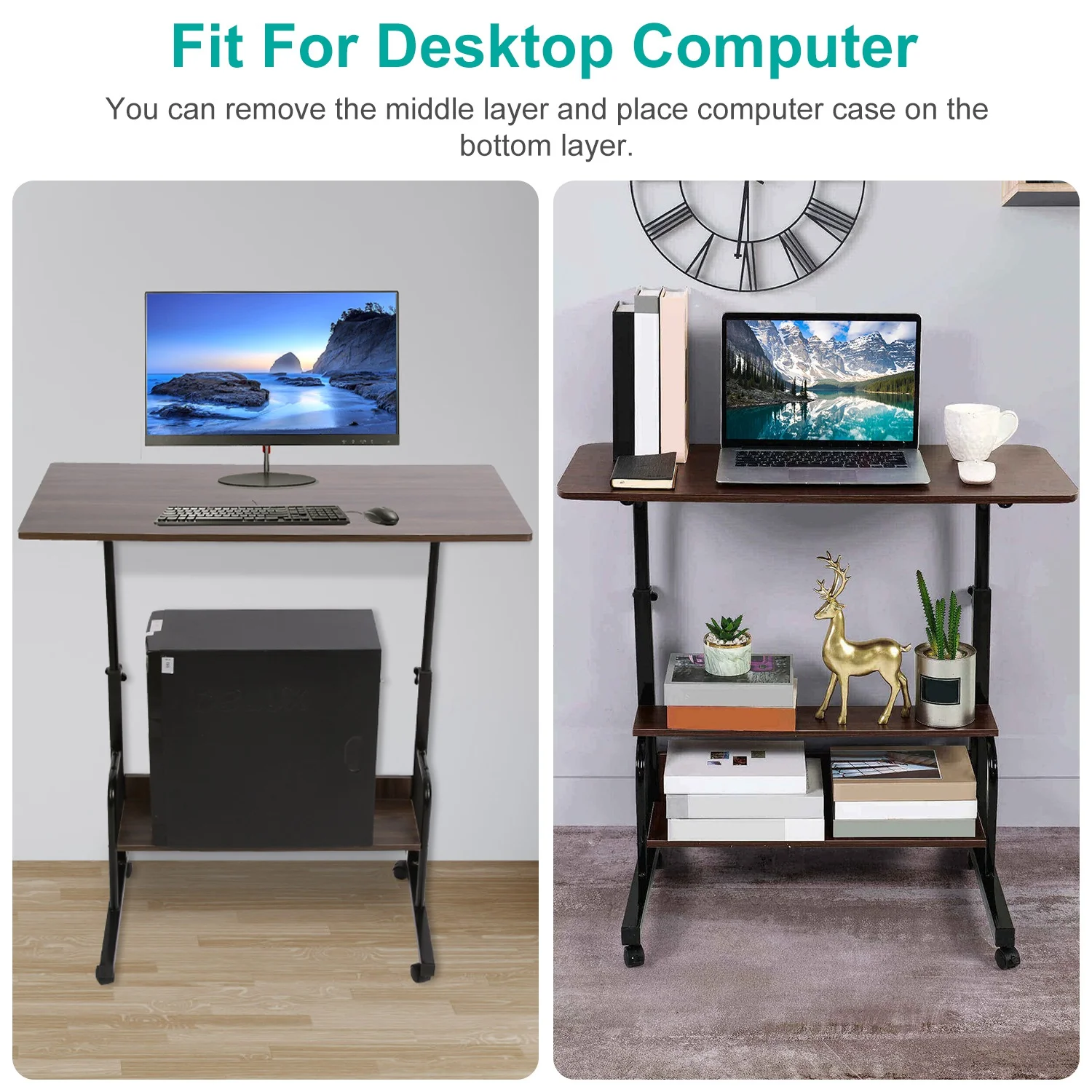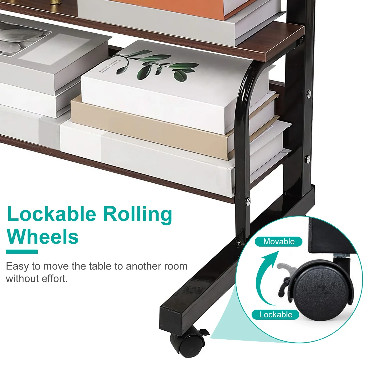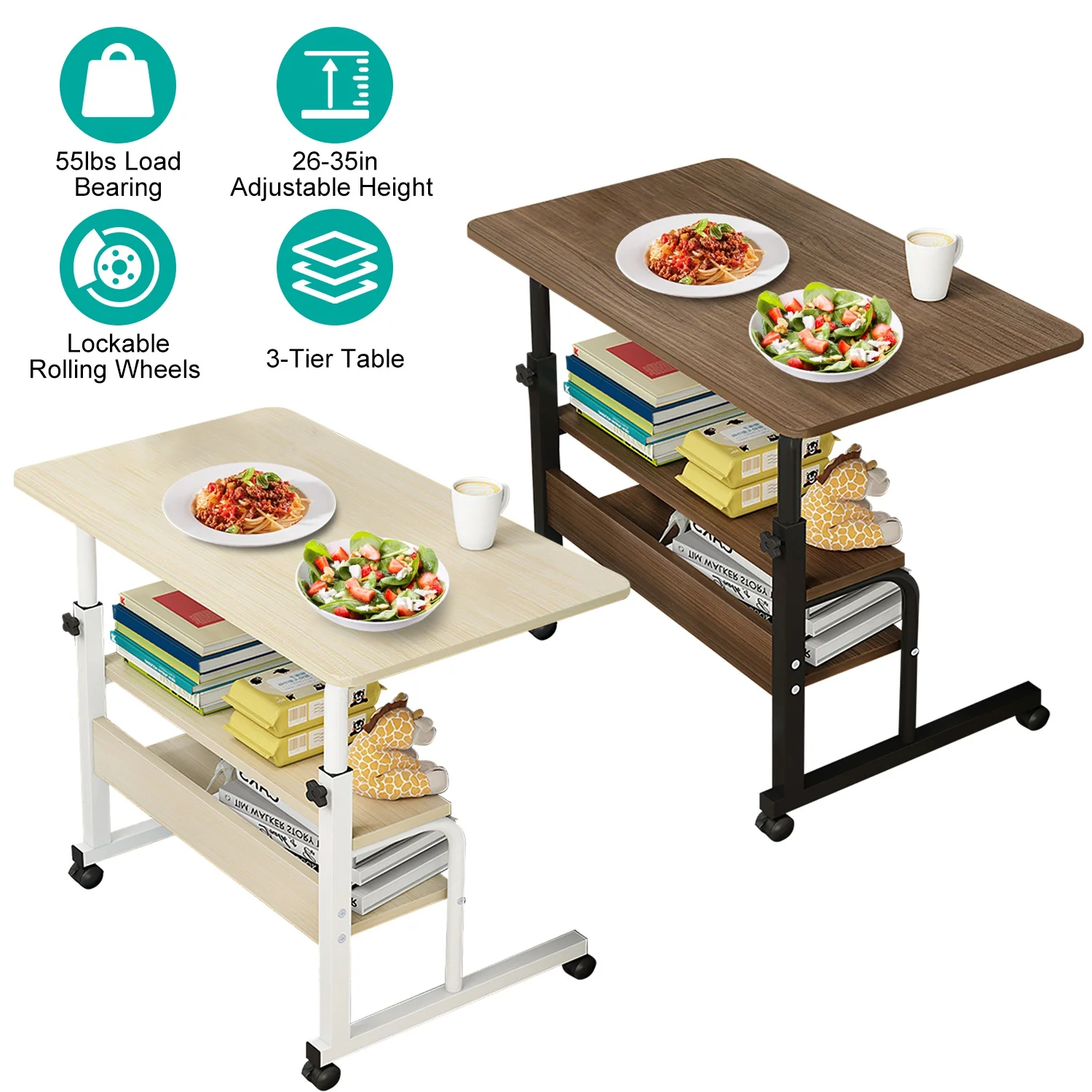 iMounTEK Laptop Desk 3-Tier Mobile Laptop Table 35in Height Adjustable C Side Snack Table with Rolling Wheels for Couch Bed Sofa Living Room Bedroom, Beige