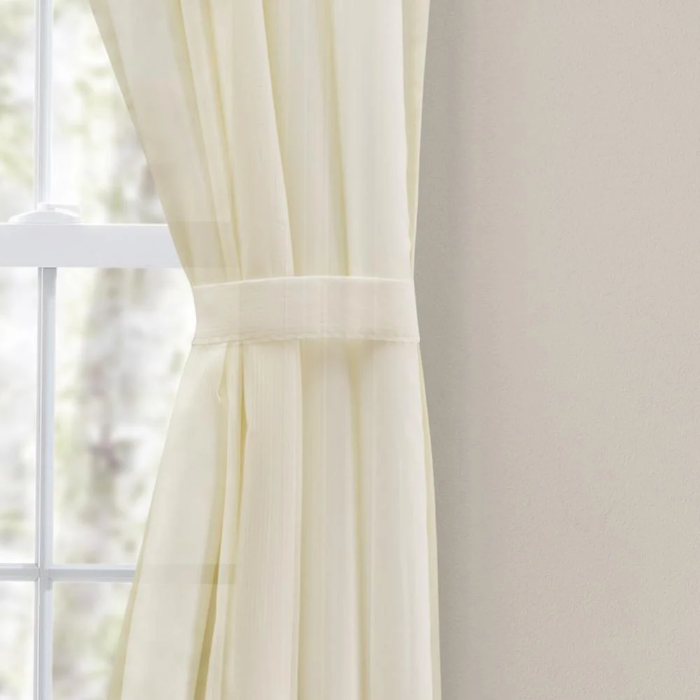 Ellis Curtain Shadow Stripe Tailored Curtain Panel Pair for Windows with Ties 80" x 54" Natural