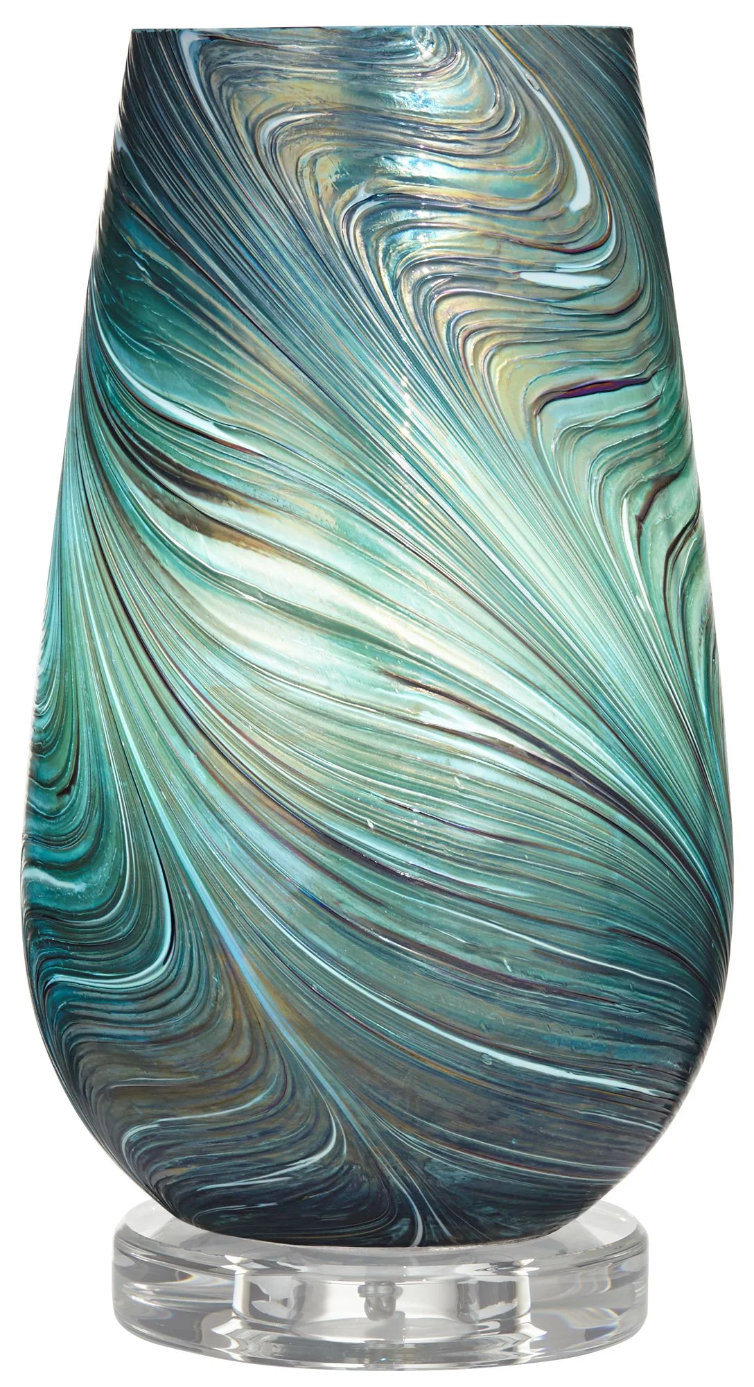 360 Lighting Carmen Modern Coastal Accent Table Lamps 12 1/2" High Set of 2 Green Art Glass Shade for Bedroom Bedside Nightstand Office