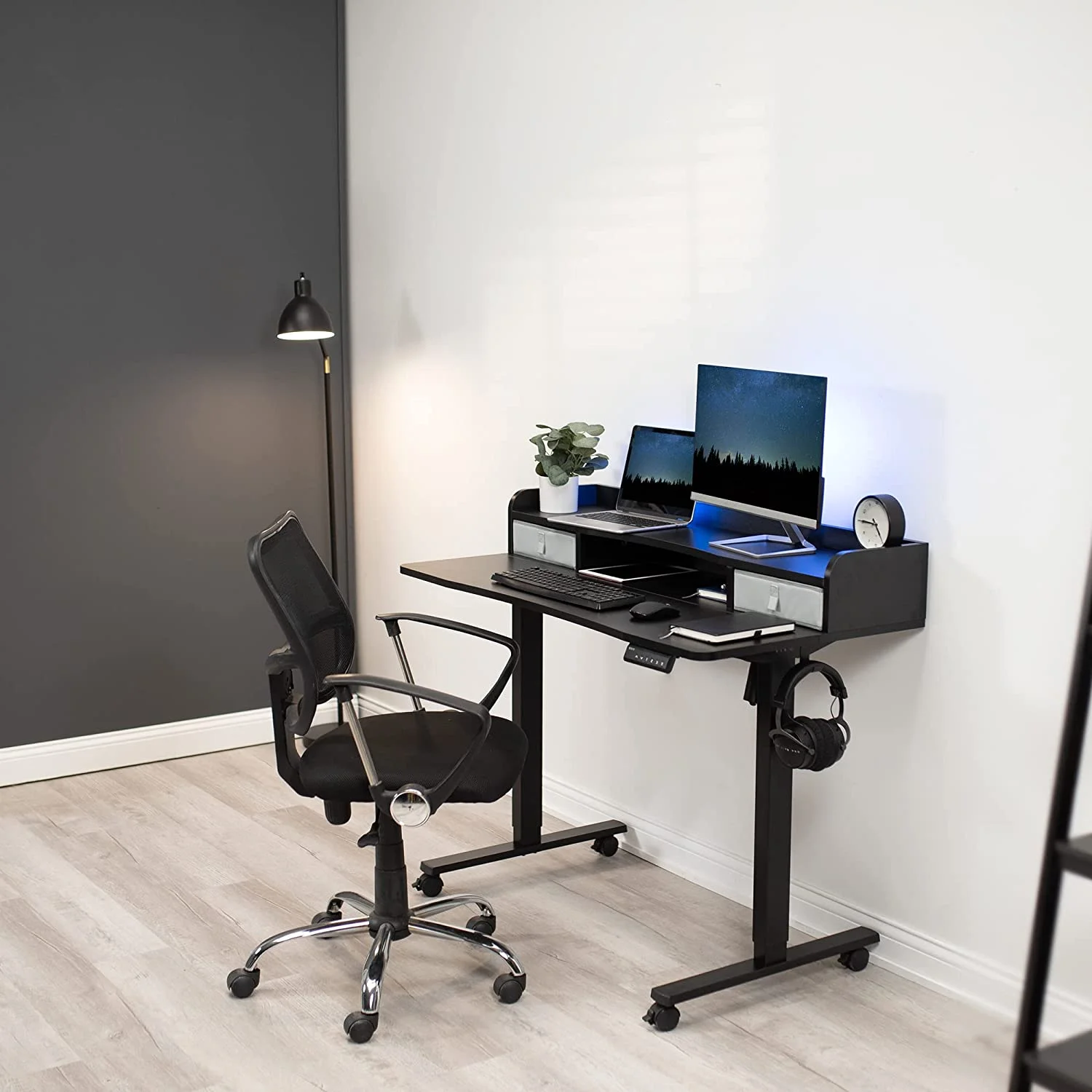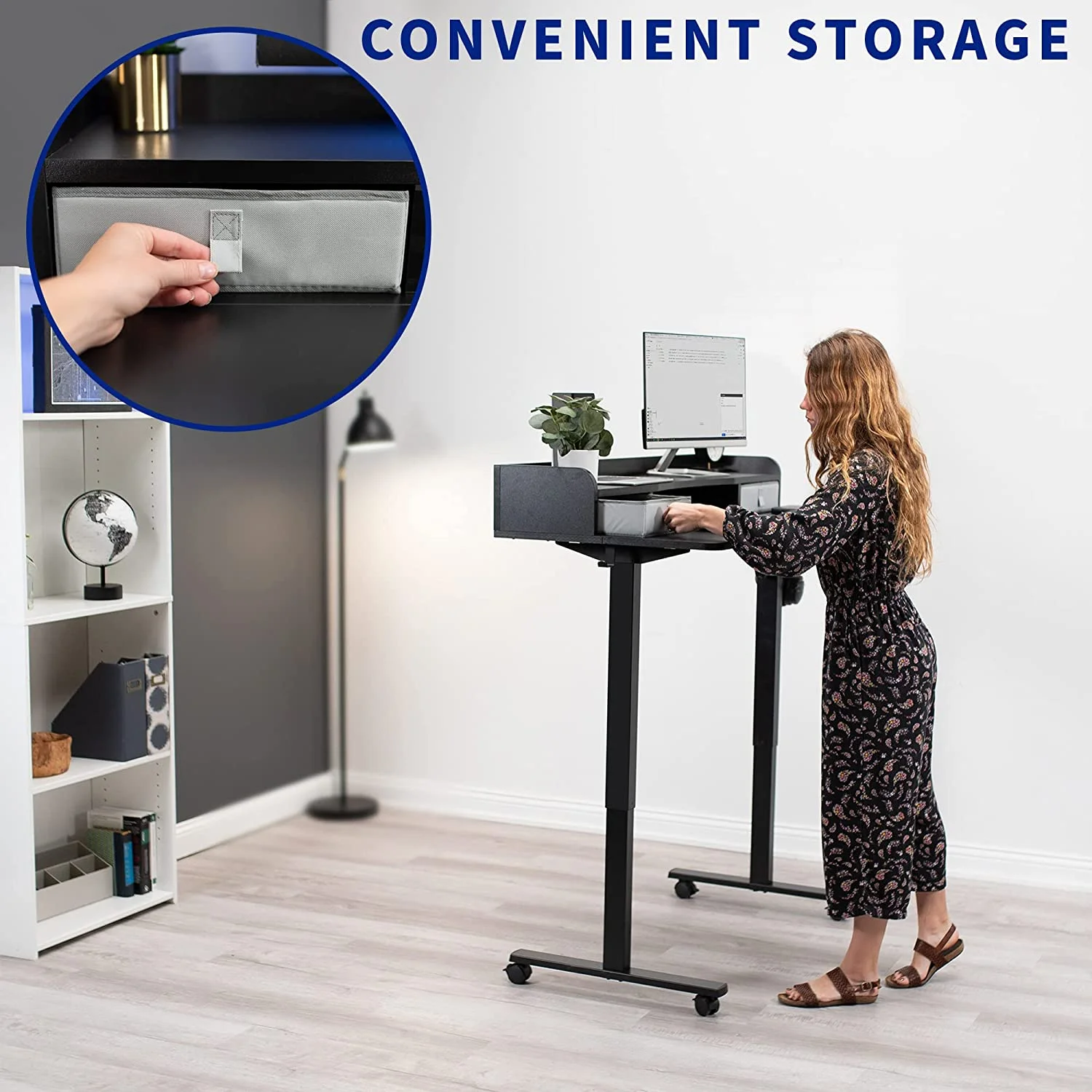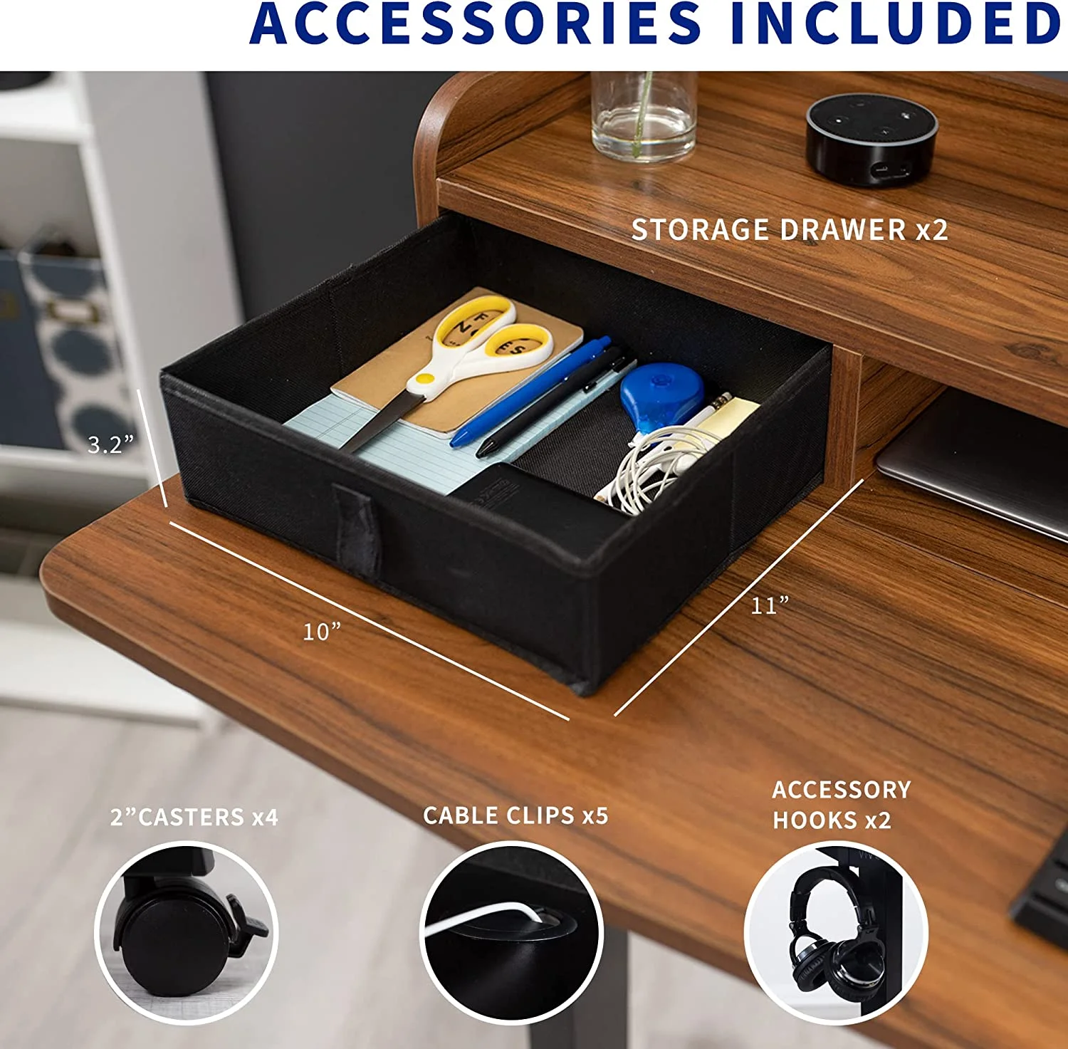 Electric 2-Tier Height Adjustable X 24 Inch Stand Up Desk, Mobile Table With Storage Drawers, Standing Workstation With Memory Controller, Casters, Dark Walnut Top, Black Frame, DESK-E-YSD