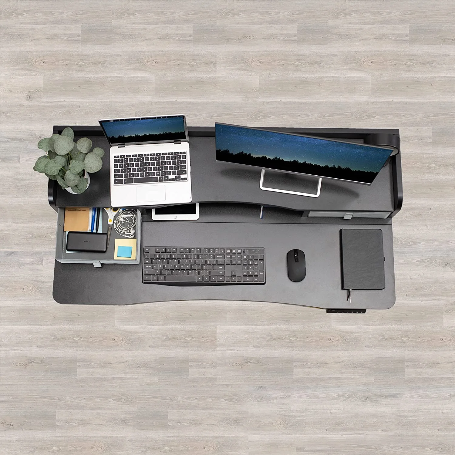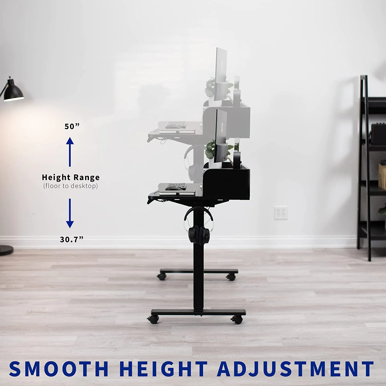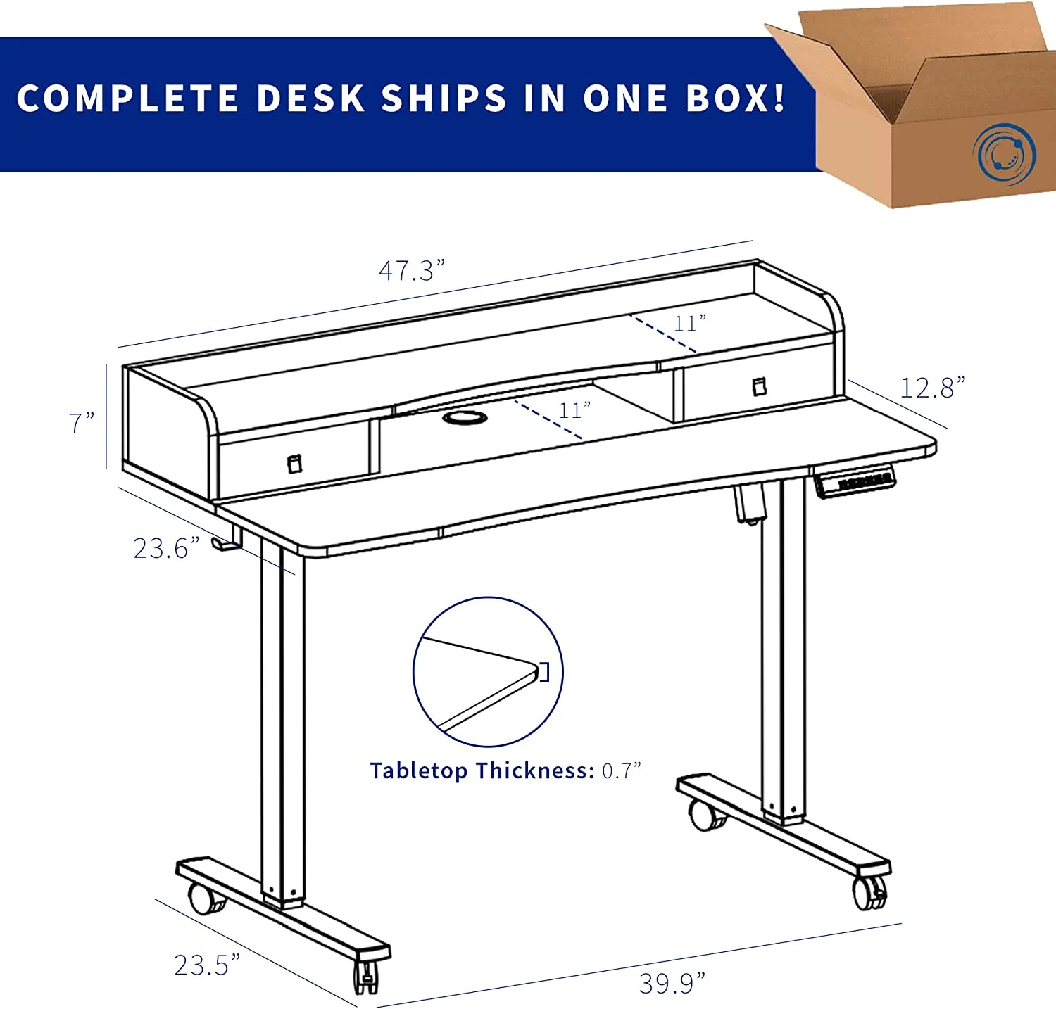 Electric 2-Tier Height Adjustable X 24 Inch Stand Up Desk, Mobile Table With Storage Drawers, Standing Workstation With Memory Controller, Casters, Dark Walnut Top, Black Frame, DESK-E-YSD