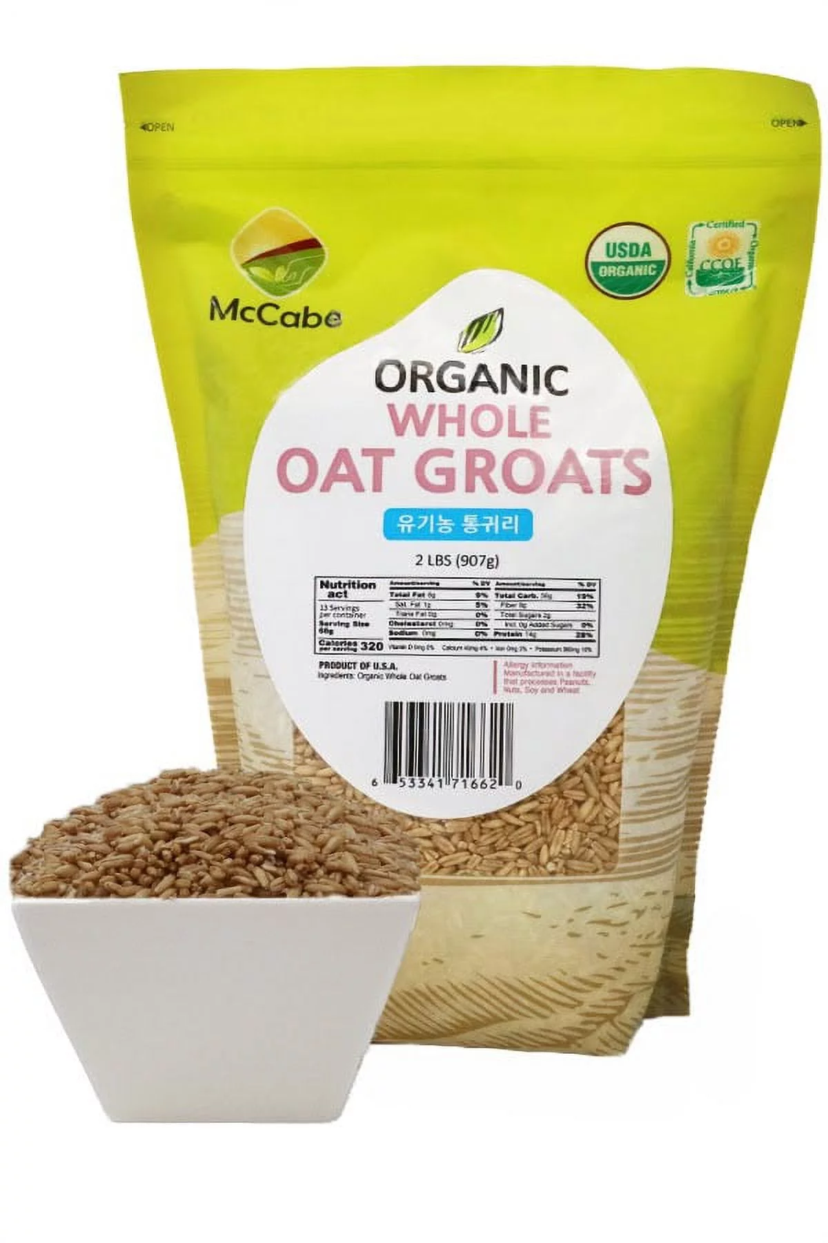 McCabe Organic Whole Oats Groats - Whole Grain Oats | Organic Raw Oats Groats | USDA and CCOF Certified | Product of USA | 2 Lbs