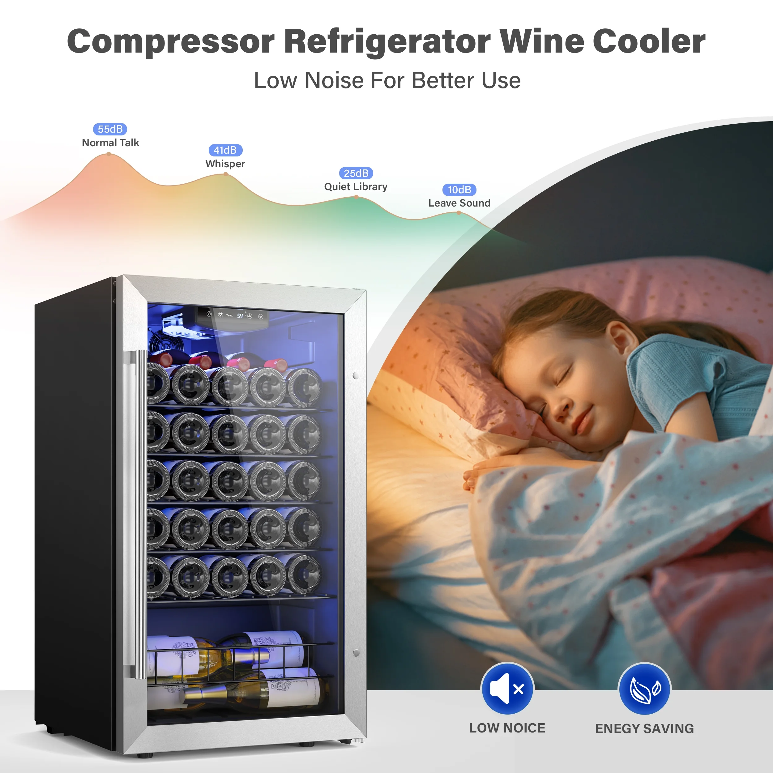 Yeego 32 Bottle Wine Refrigerator Cooler Compact Freestanding Wine Cellars,Glass Door