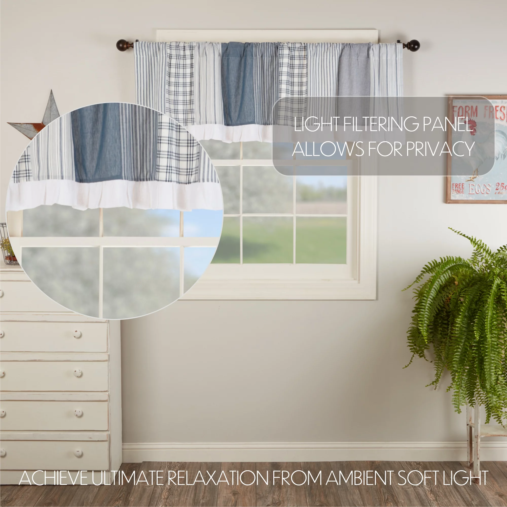 VHC Brands Sawyer Mill Blue Farmhouse Window Panel Set for Living Room or Bedroom with Attached Valance