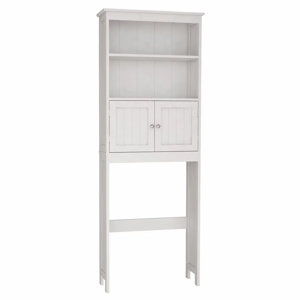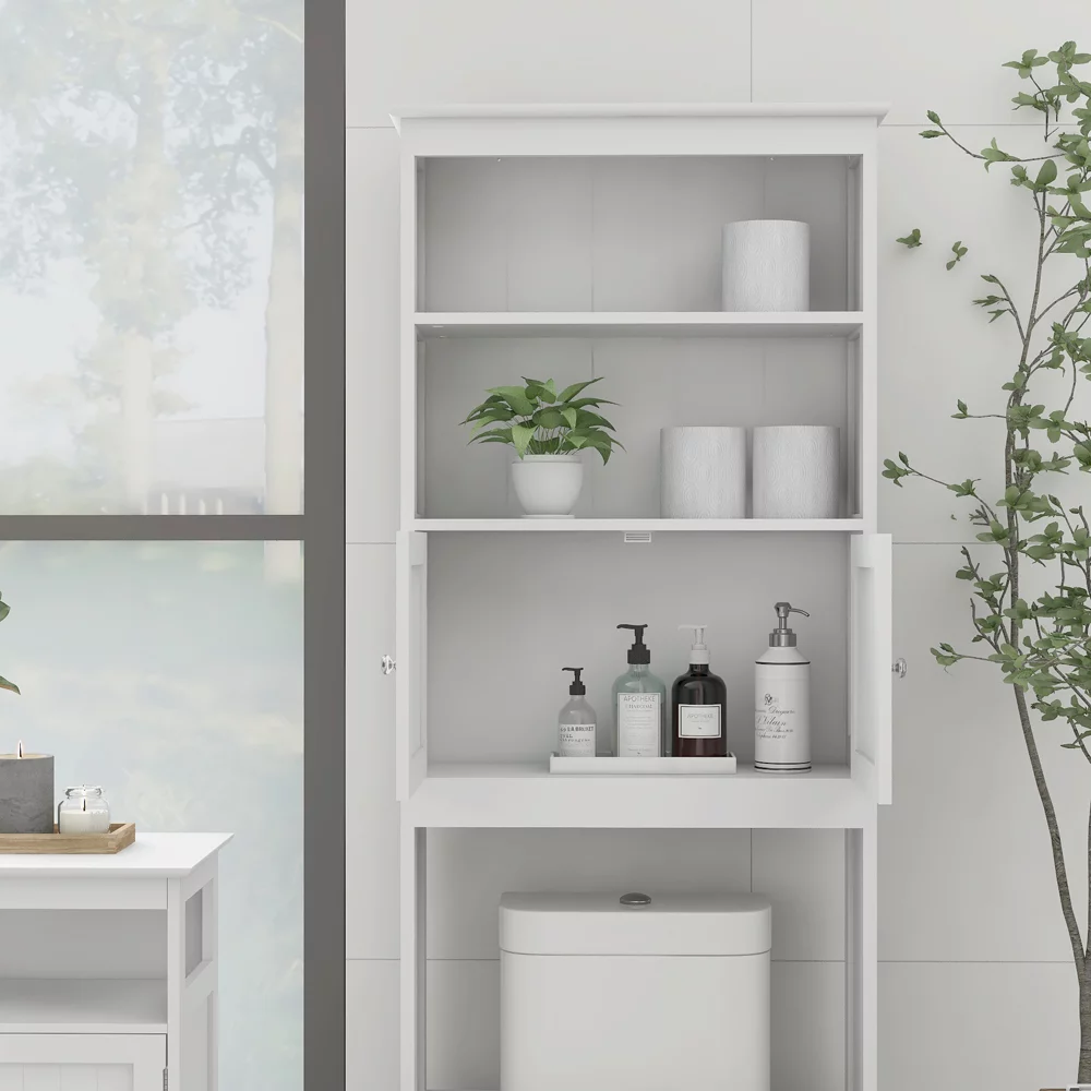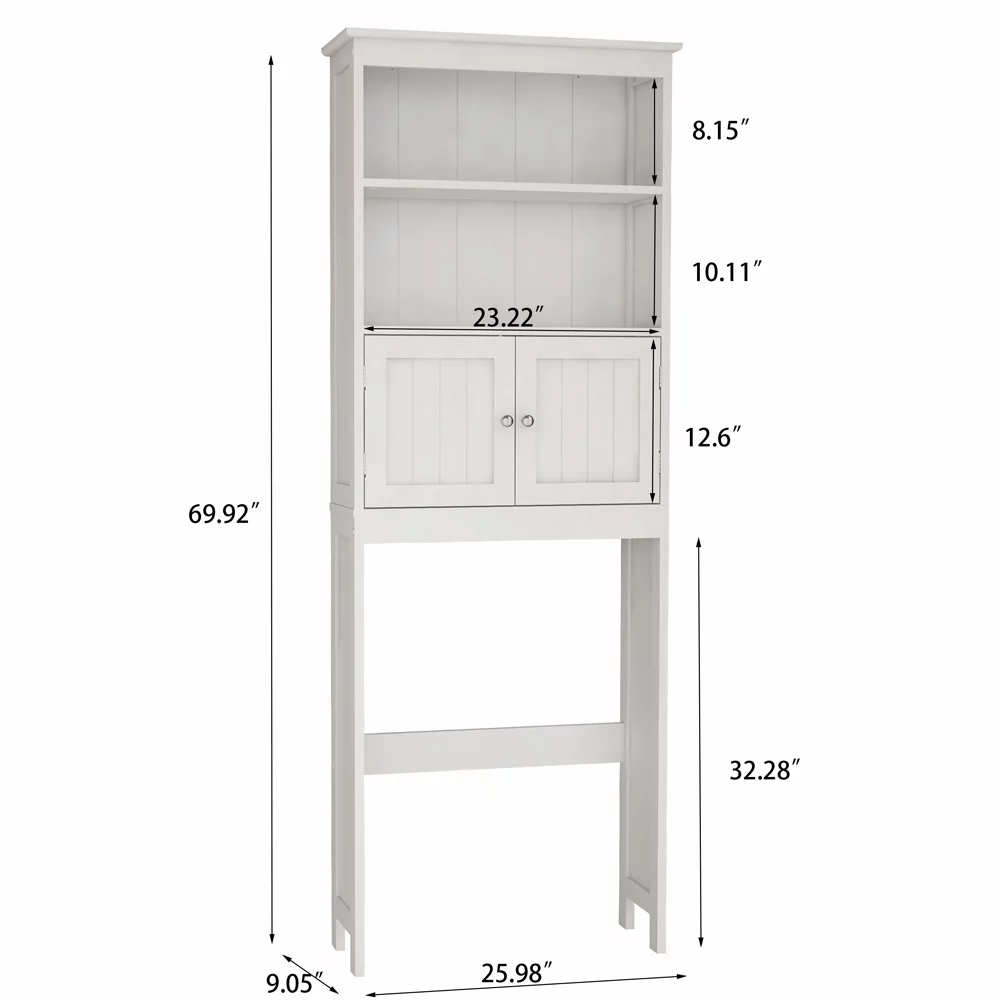 Over The Toilet Storage Cabinet Bathroom Spacesaver Storage Organizer with 2 Doors, for Bathroom Freestanding Shelf-White