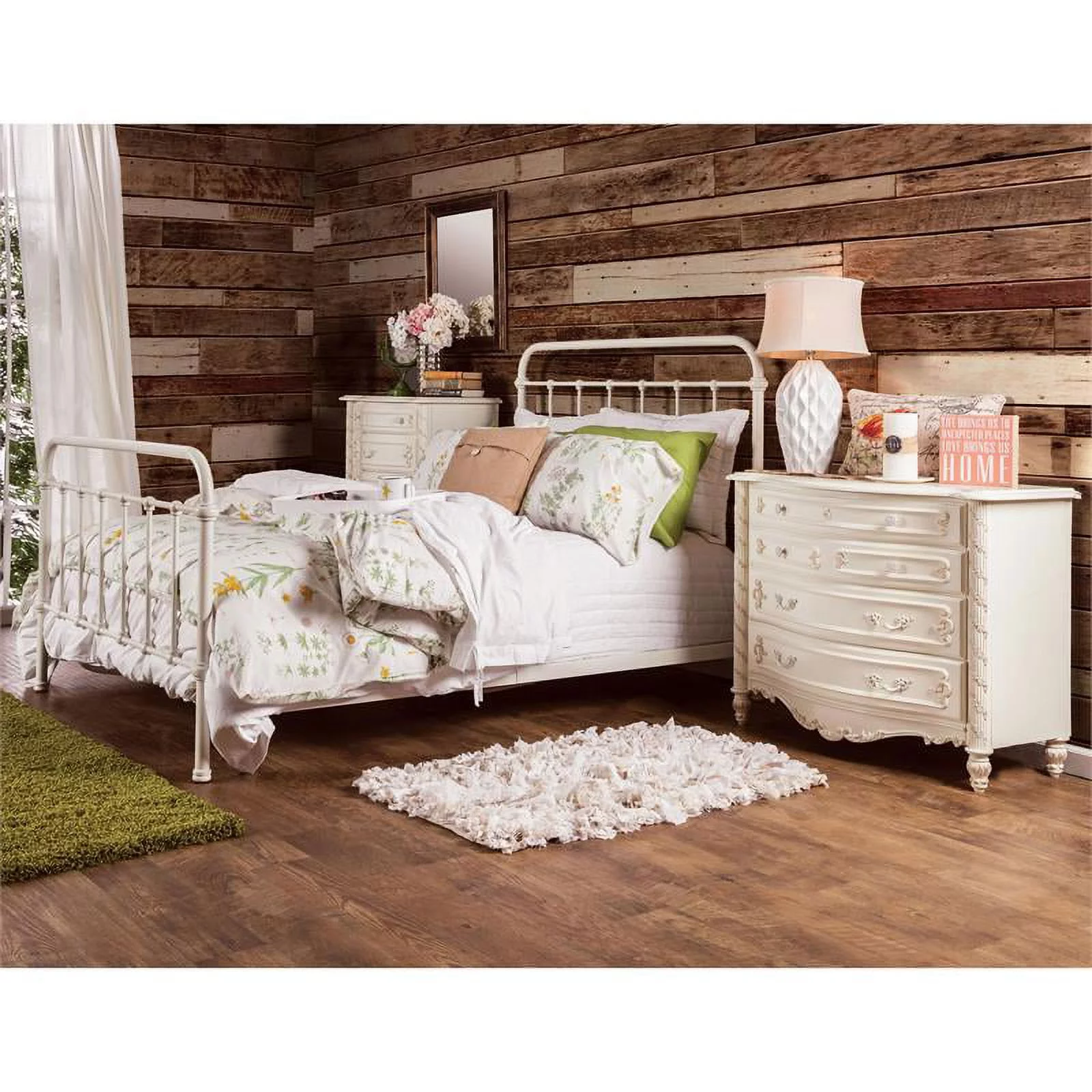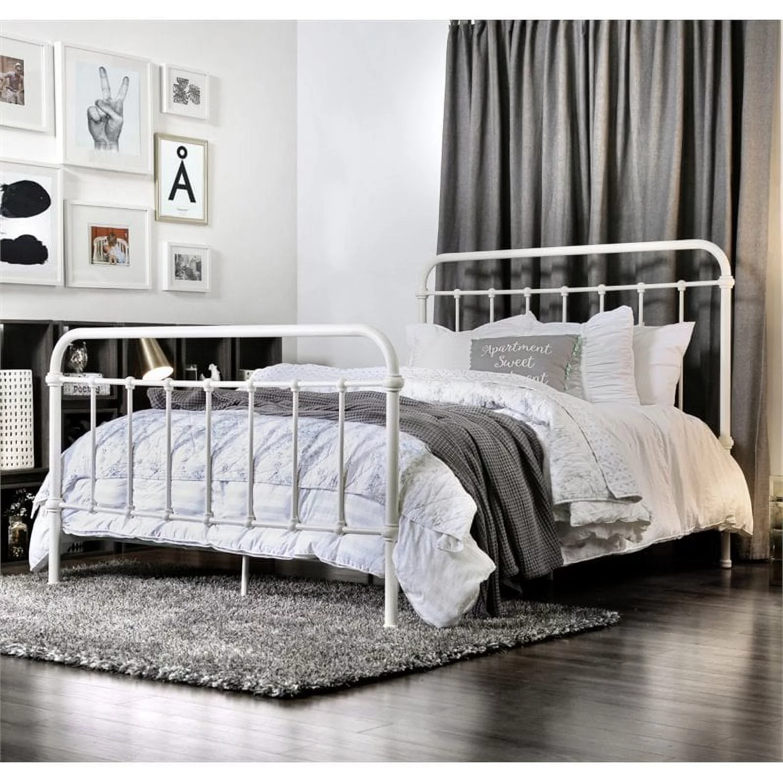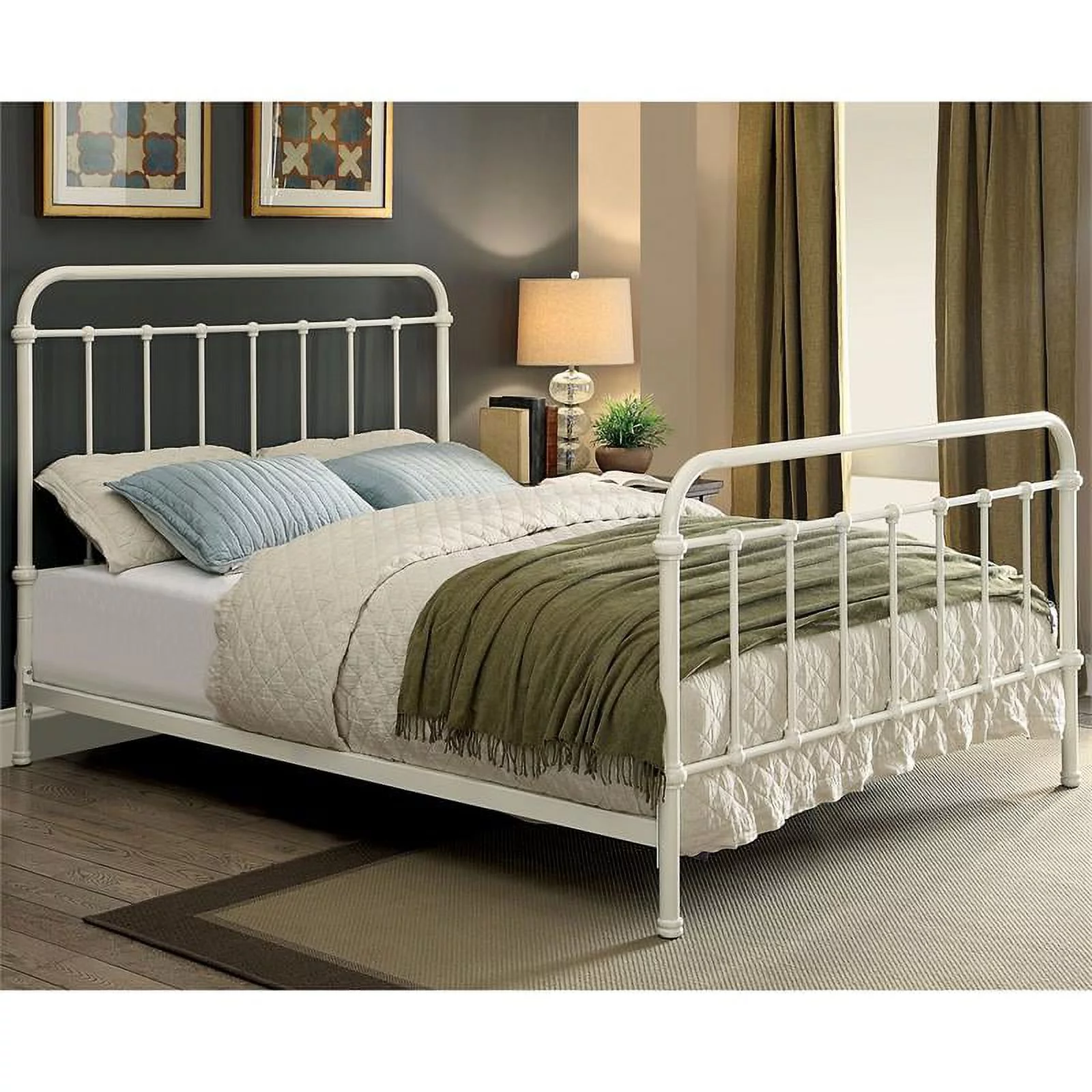 Furniture of America Celinda Metal Twin Spindle Bed in Vintage White
