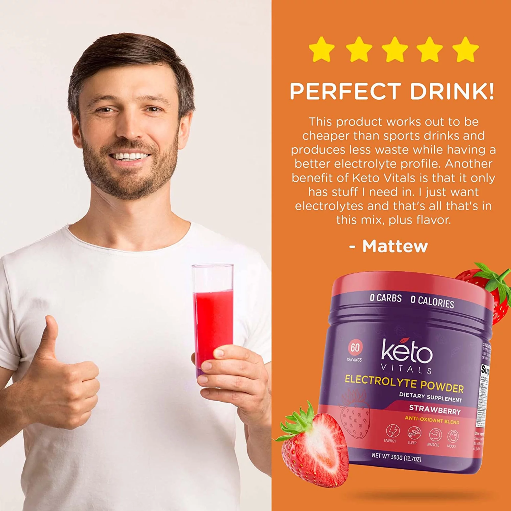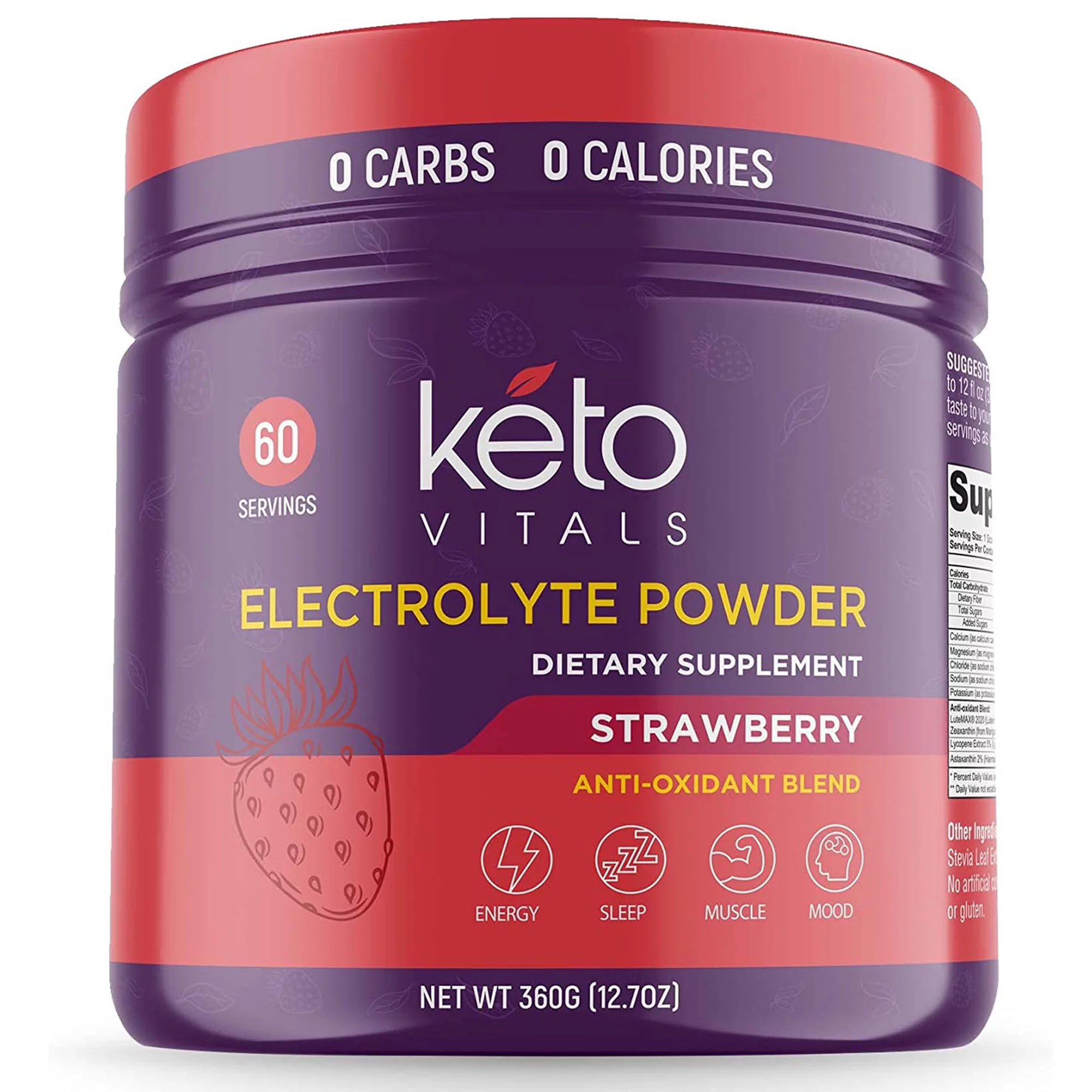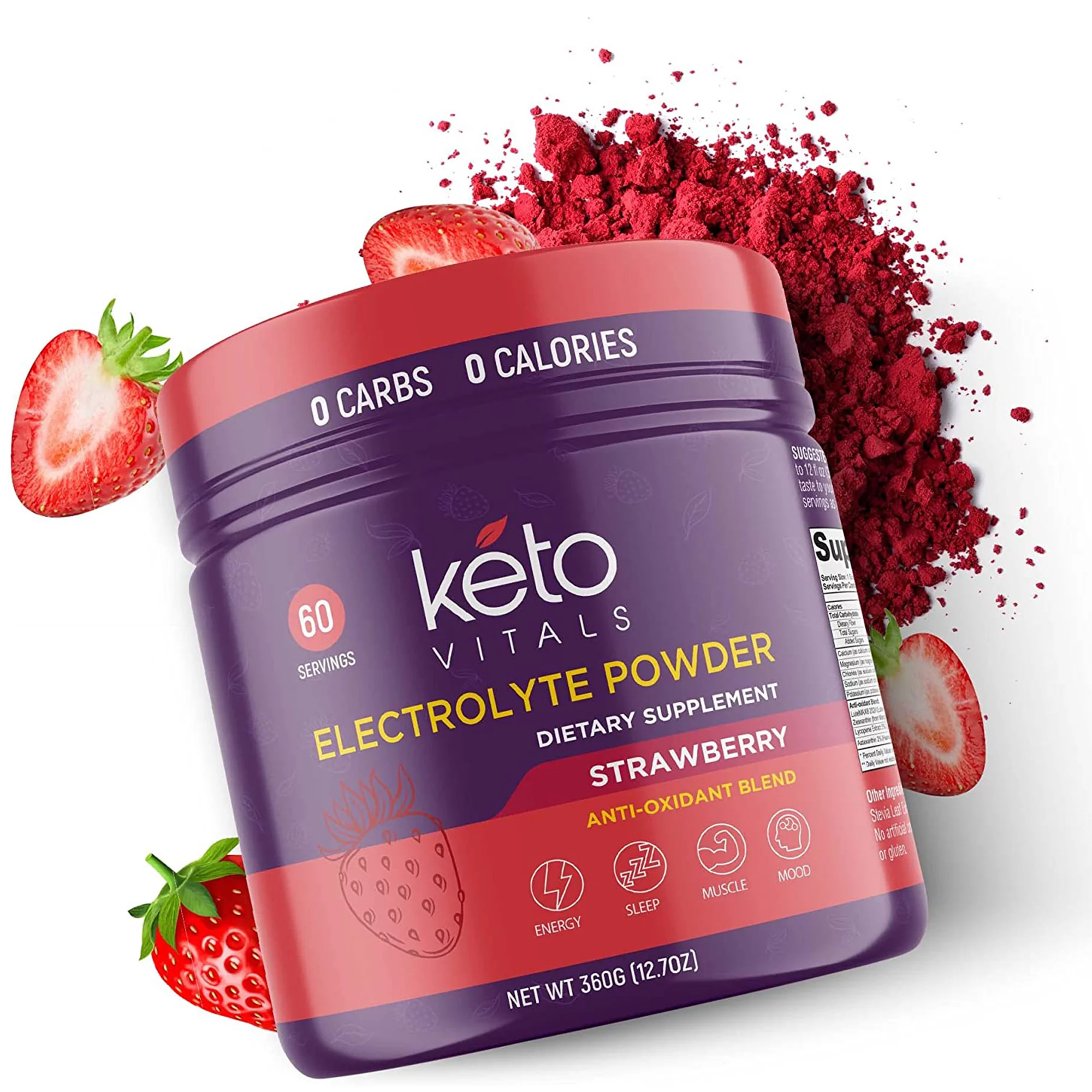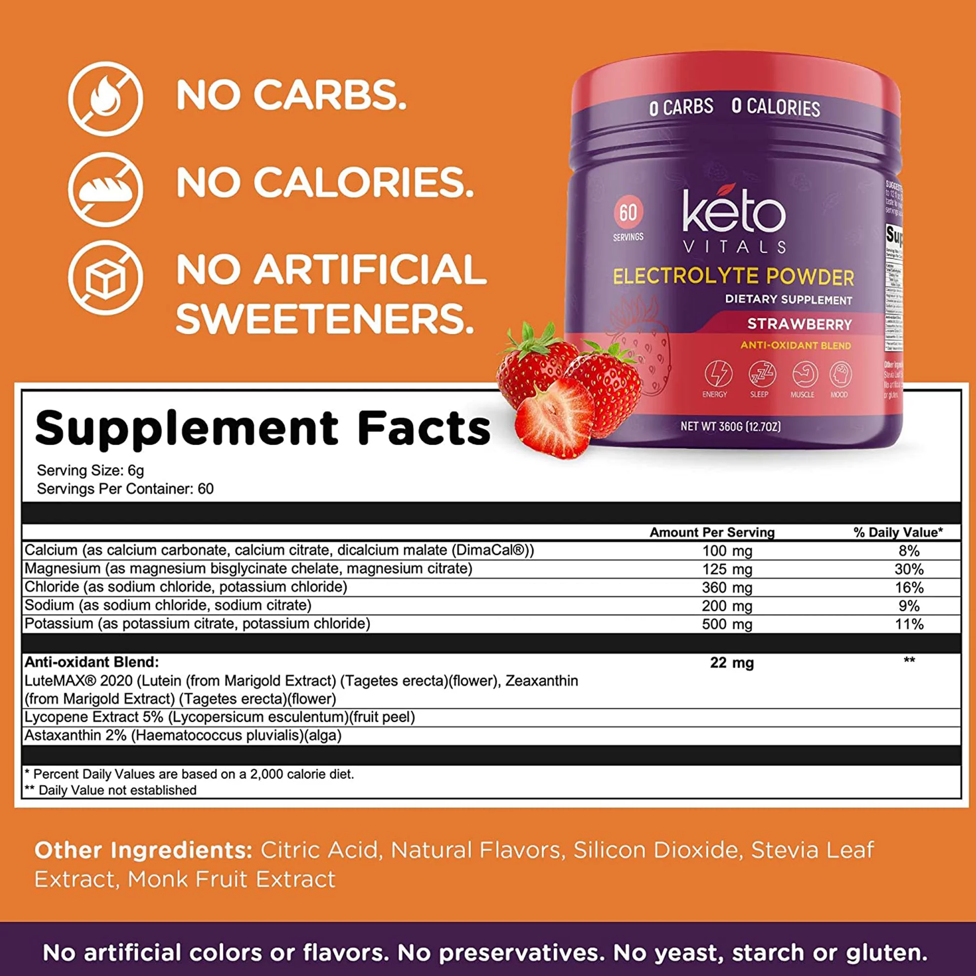 Keto Vitals Keto Electrolytes Powder with Antioxidants for Hydration, Sleep, Energy, Muscle Function Strawberry 10 oz