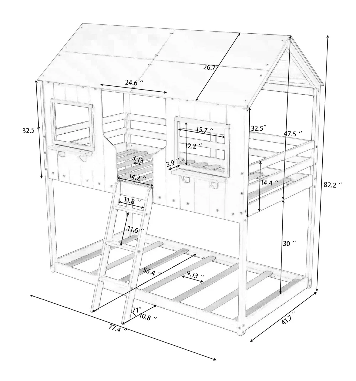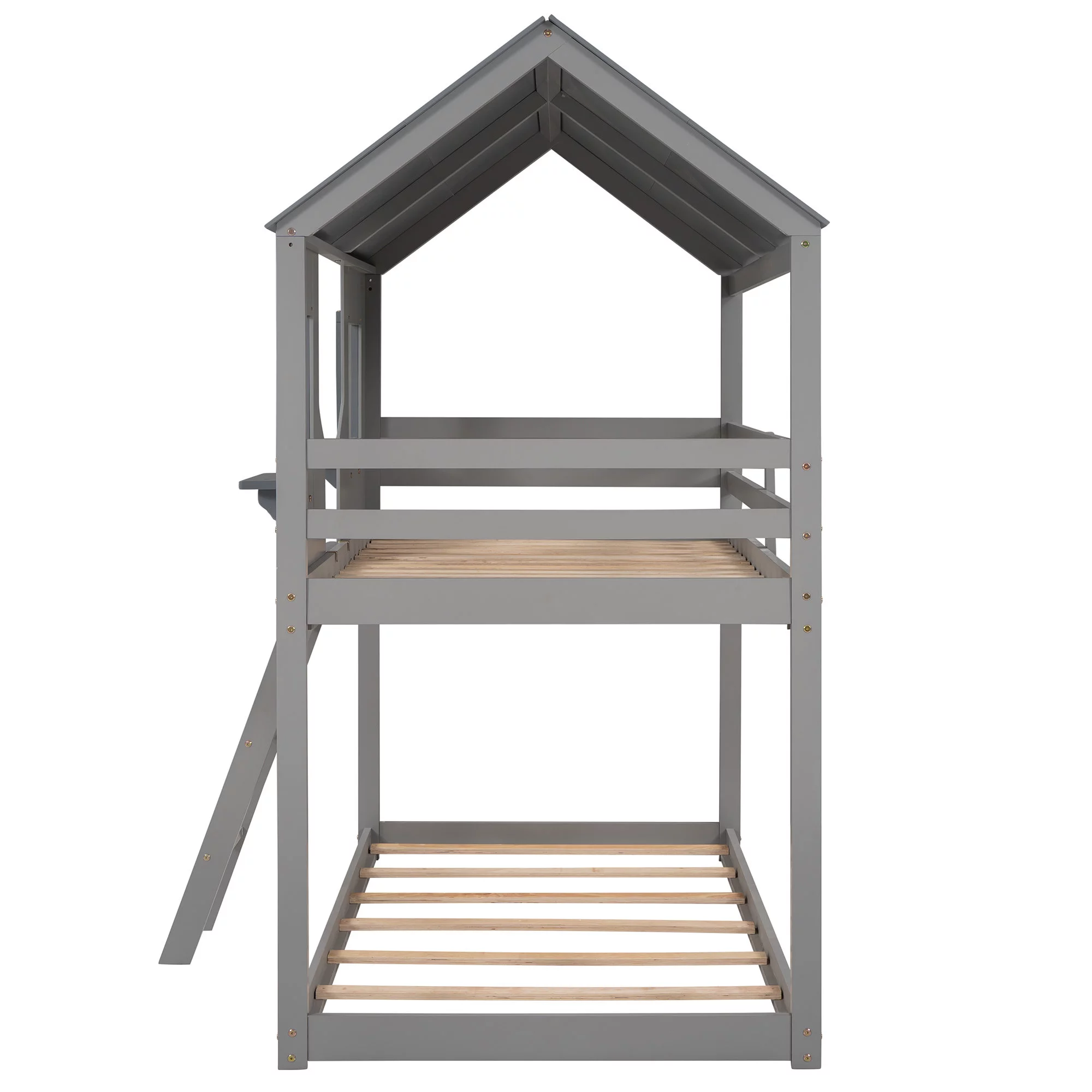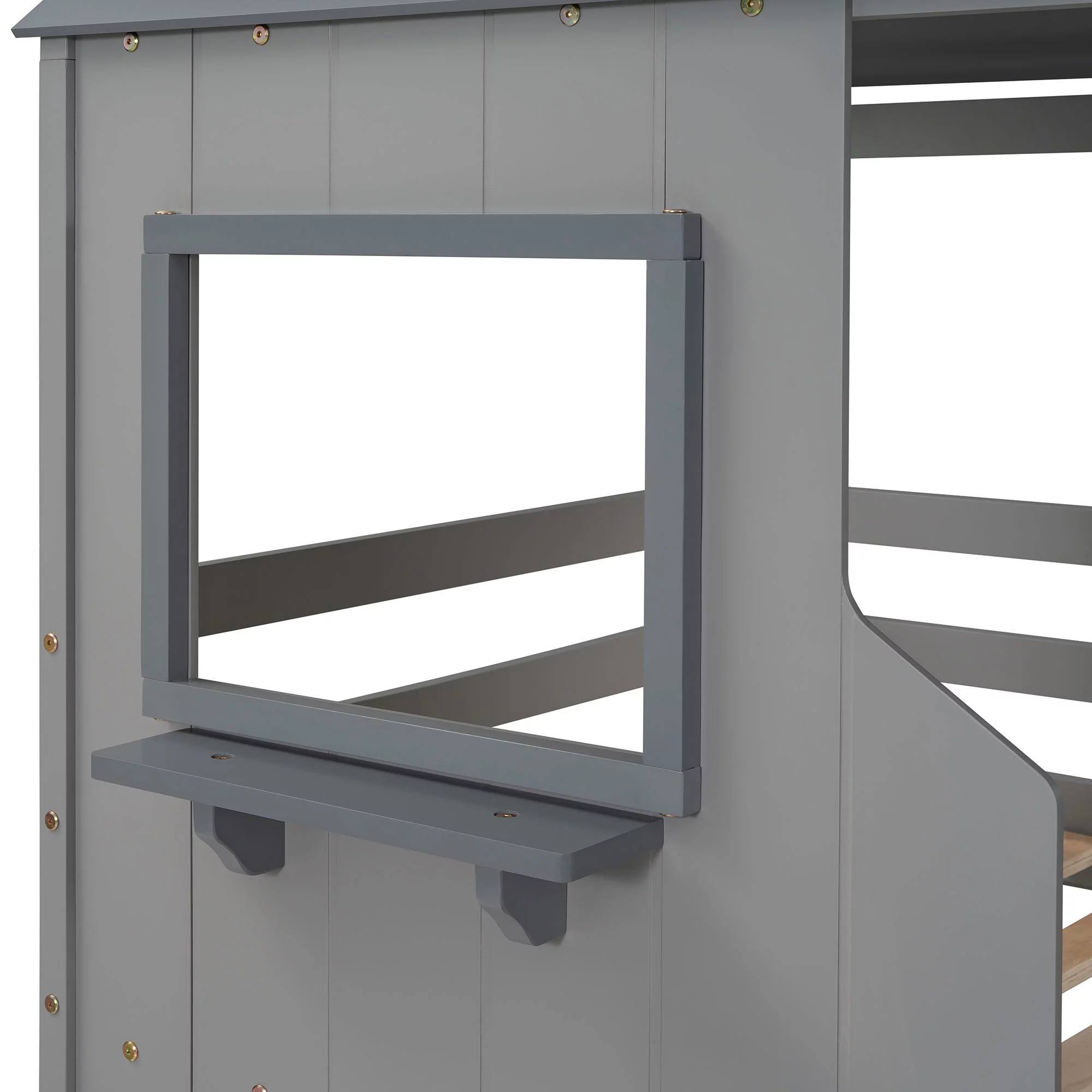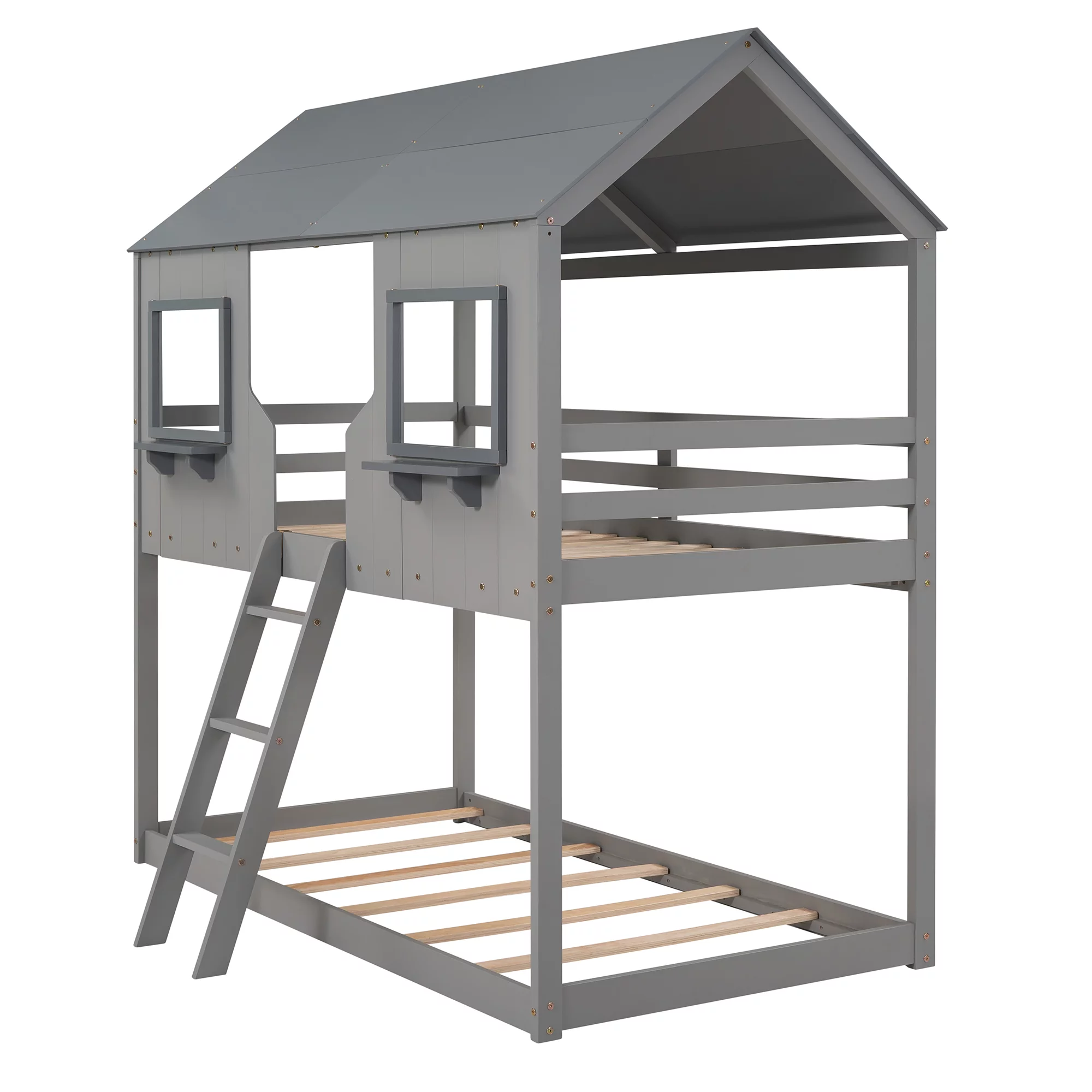 Bellemave Kids Bunk Bed Twin Over Twin, Wooden House Bunk Bed with Roof and Windows, Floor Bunk Beds for Kids Teens Girls Boys, No Spring Box Required (Gray)