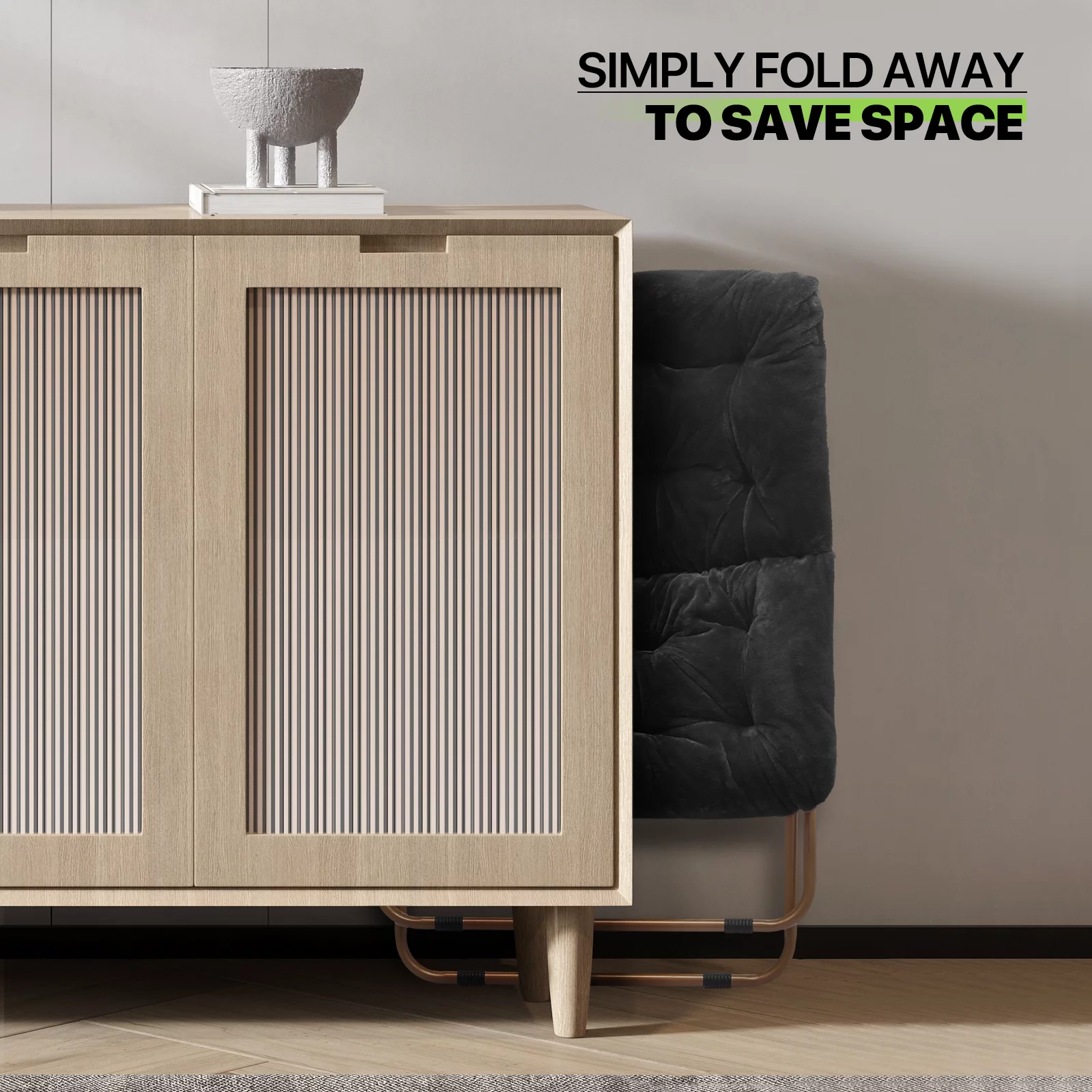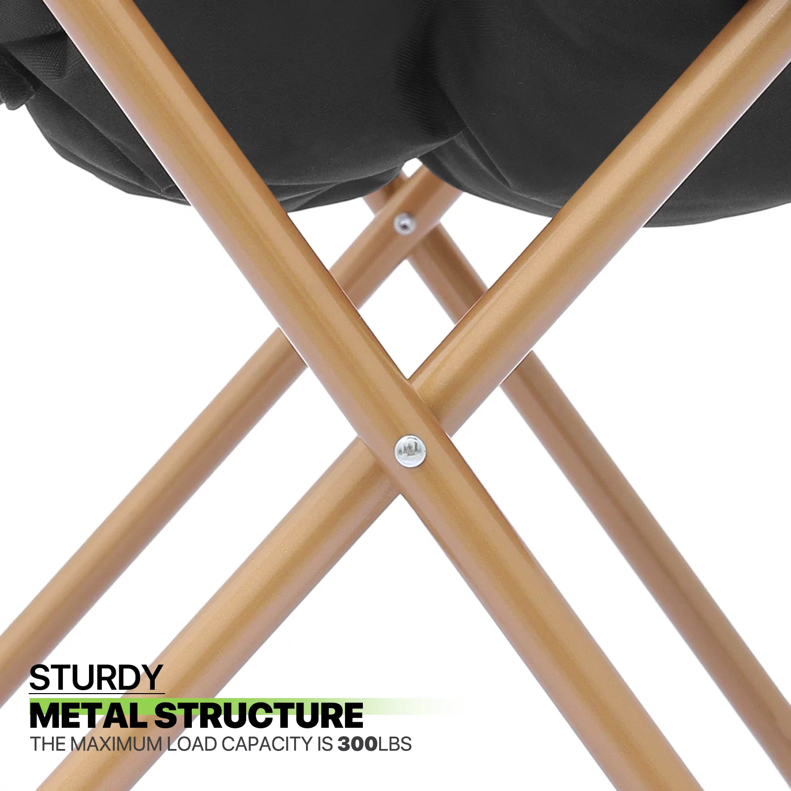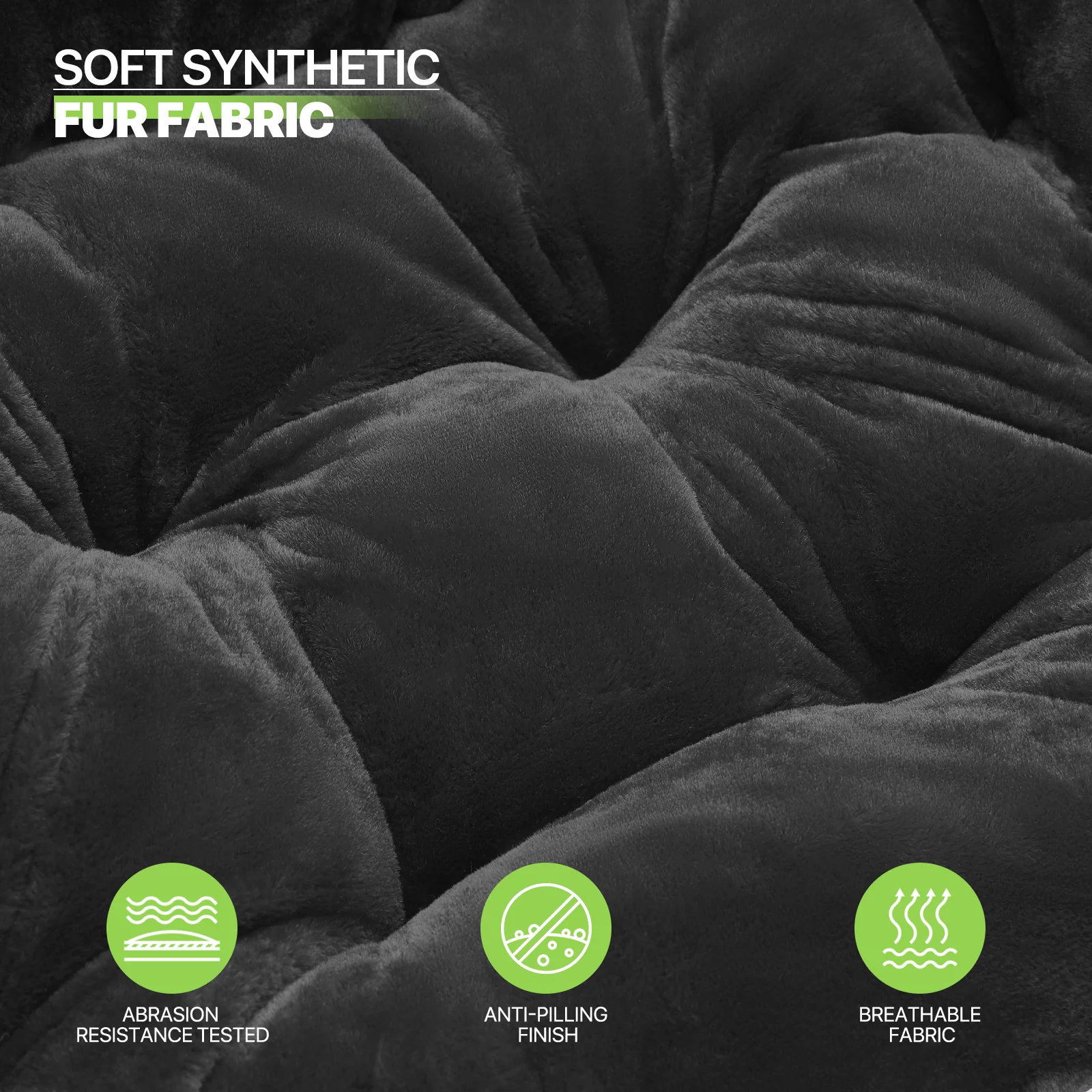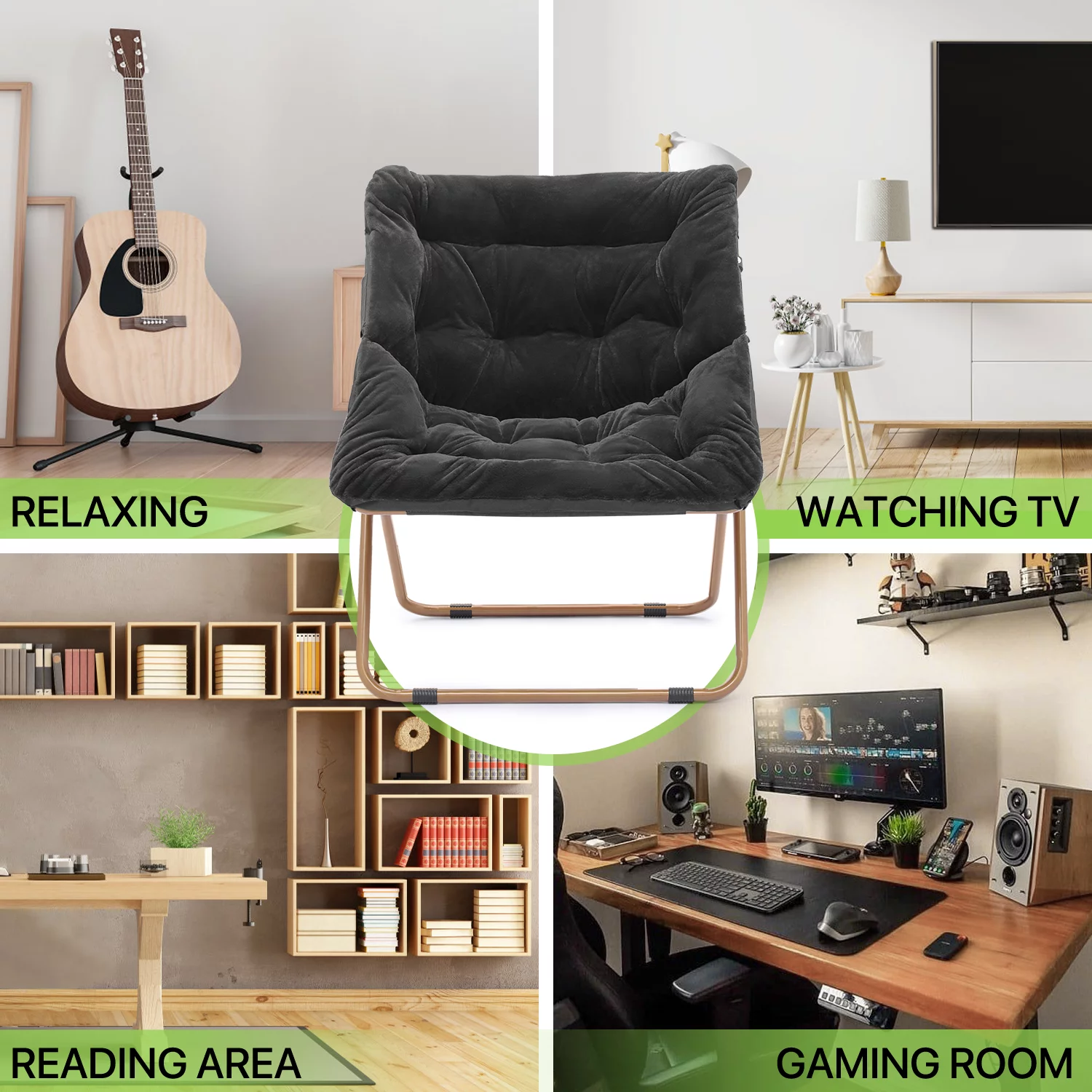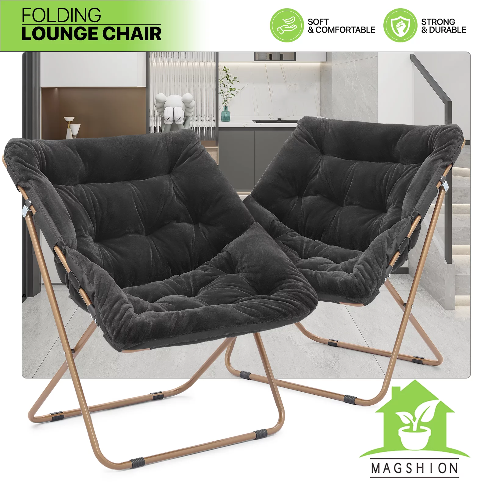 Magshion Set of 2 Saucer Chair Soft Faux Fur Folding Accent Chair, Square Lounge Lazy Chair Moon Chair with Metal Frame for Bedroom Living Room, Black