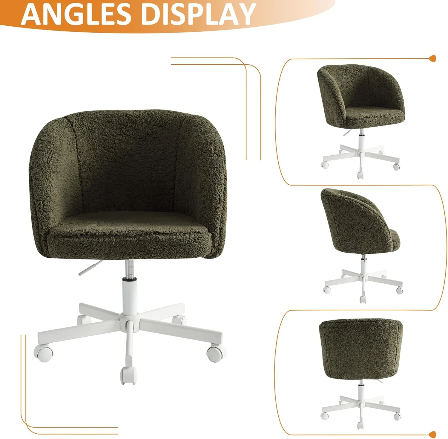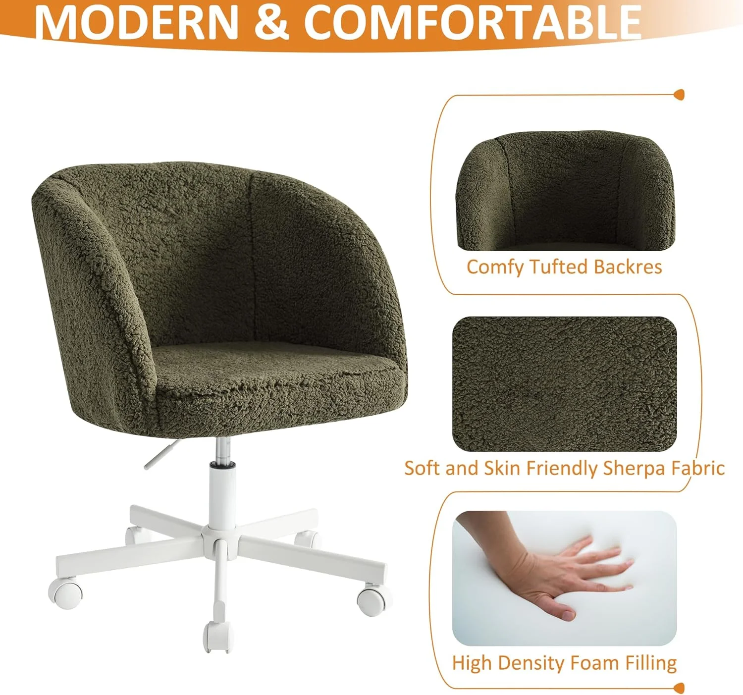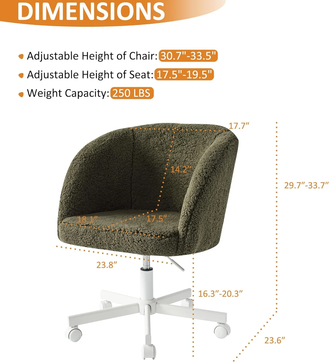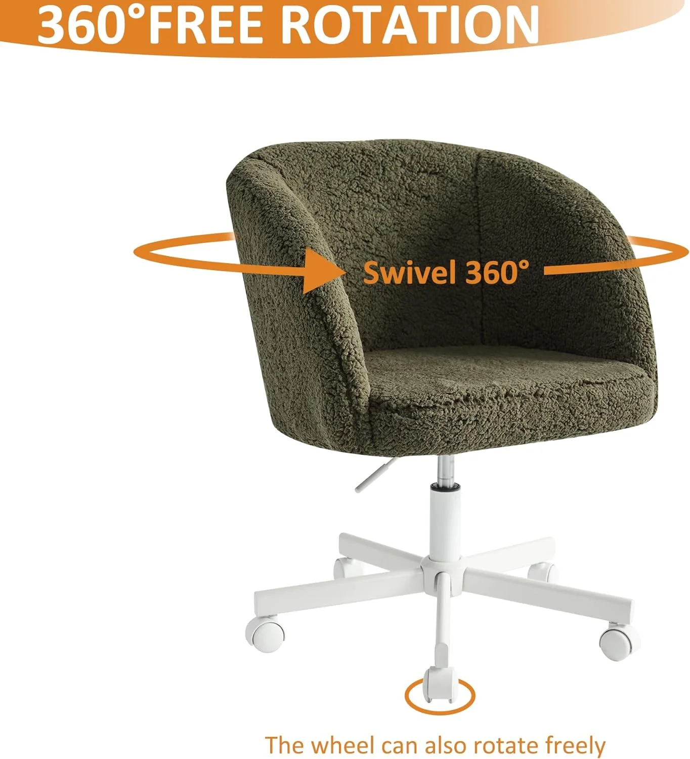 Sherpa Office Chair Modern Boucle Desk Chairs Upholstered Height Adjustable Faux Makeup Chair with Wheels for Office Living Room Bedroom Vanity Study