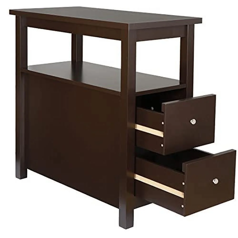 Oteymart Chair Side Table End Table Narrow Sofa Table Rectangular Side Cabinet with Drawers and Shelf for Living Room, Multi-Functional Table Furniture, Espresso