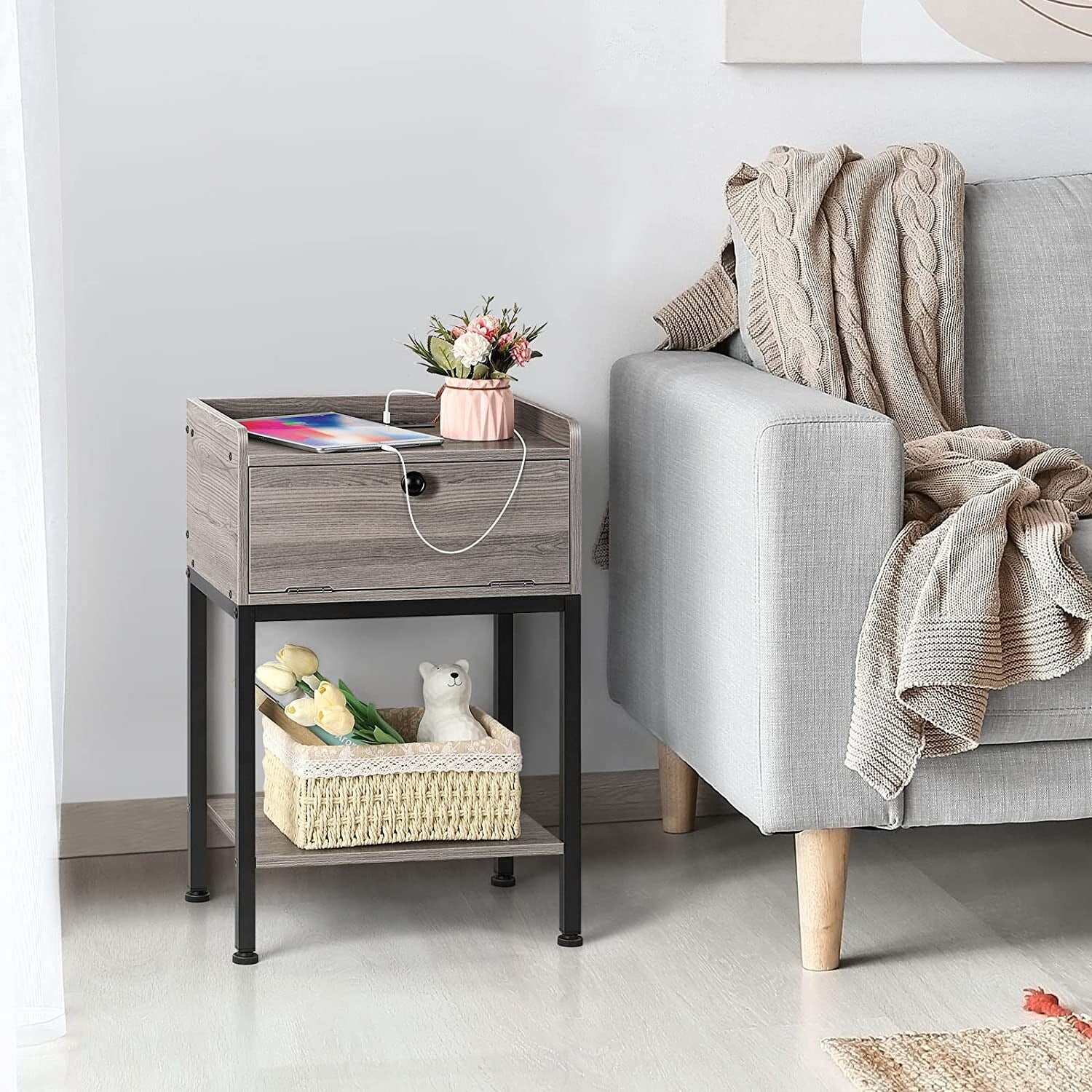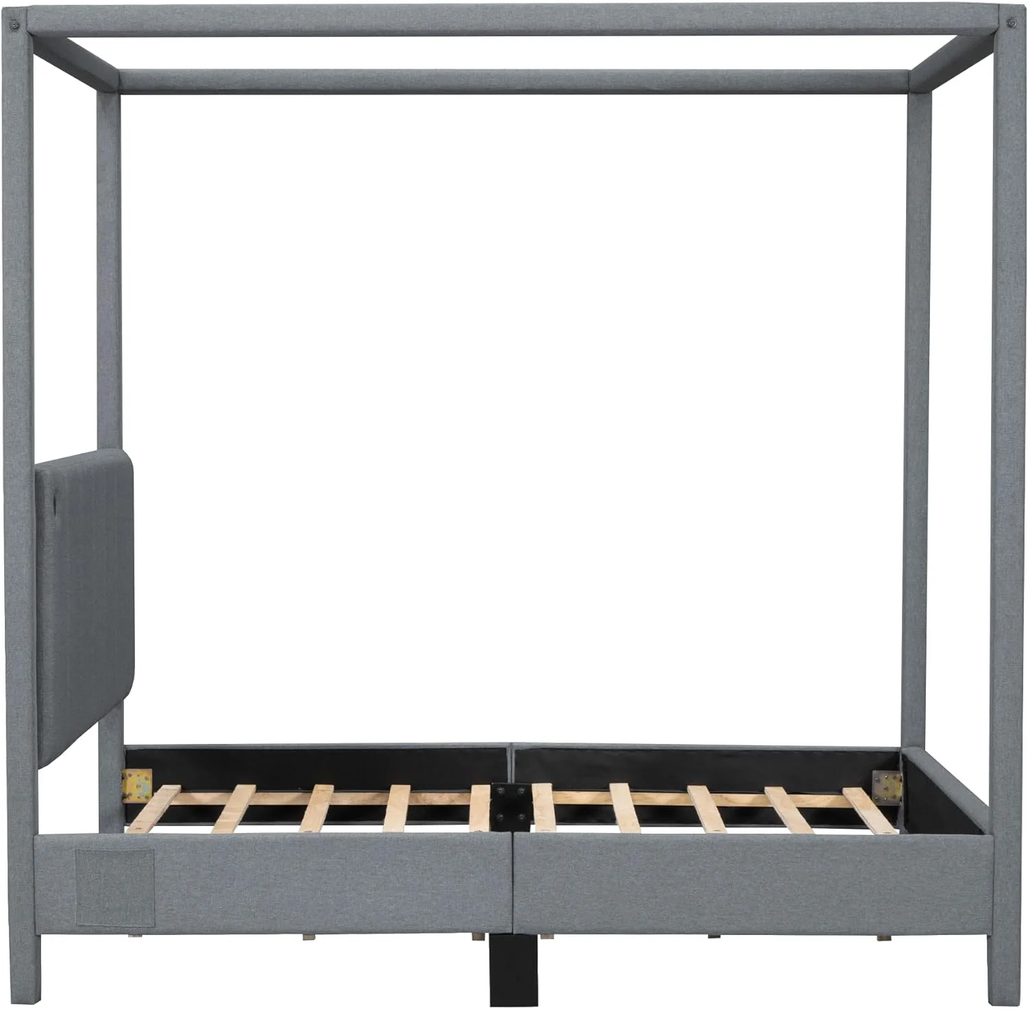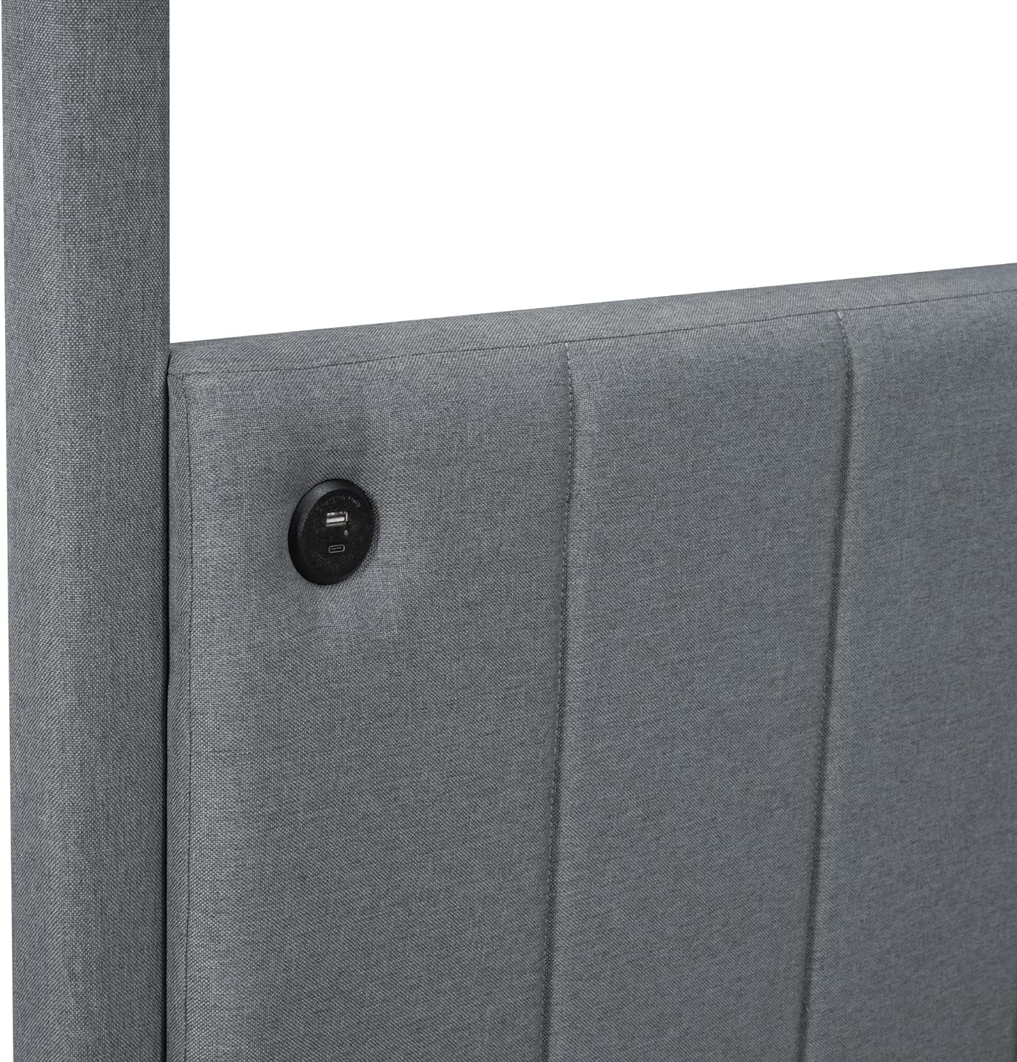 Upholstery Full Size Canopy Platform Bed with Headboard, Full Platform Bed Frame with USB and Type-C Ports,Modern 4 Poster Bed for Teens Adults, No Box Spring Needed