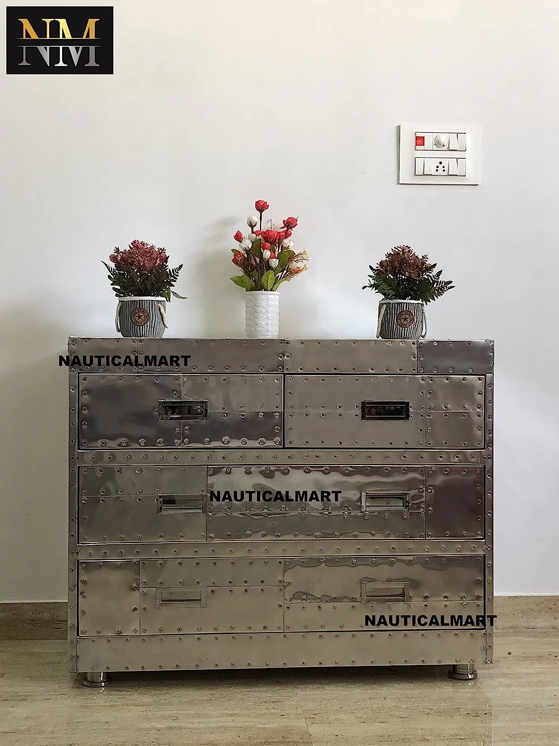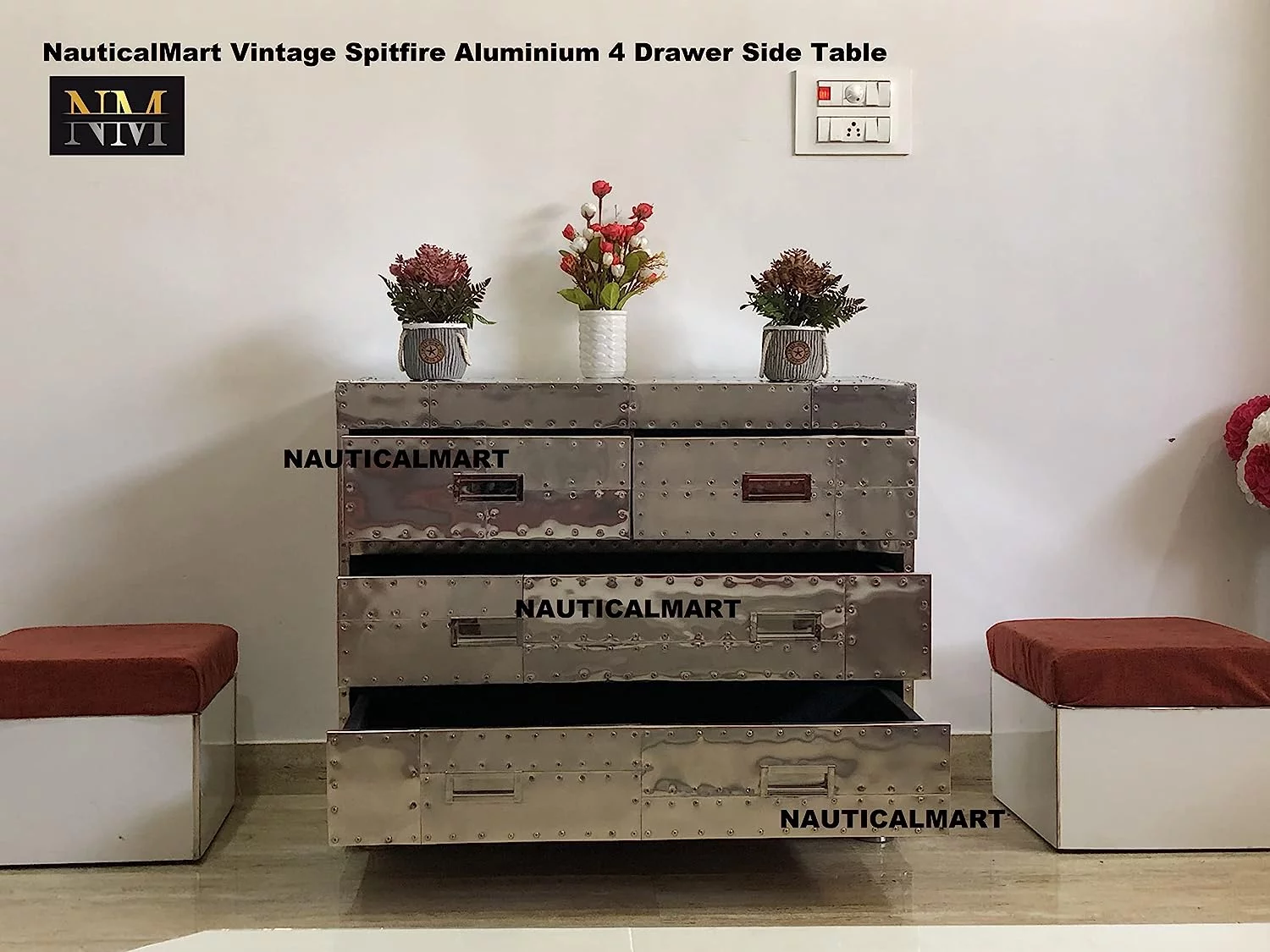 Nautical-Mart Aviator Spitfire 4 Drawer Chest Aluminum Mid Century Modern Classic Home Furniture End Table (42 Inches)