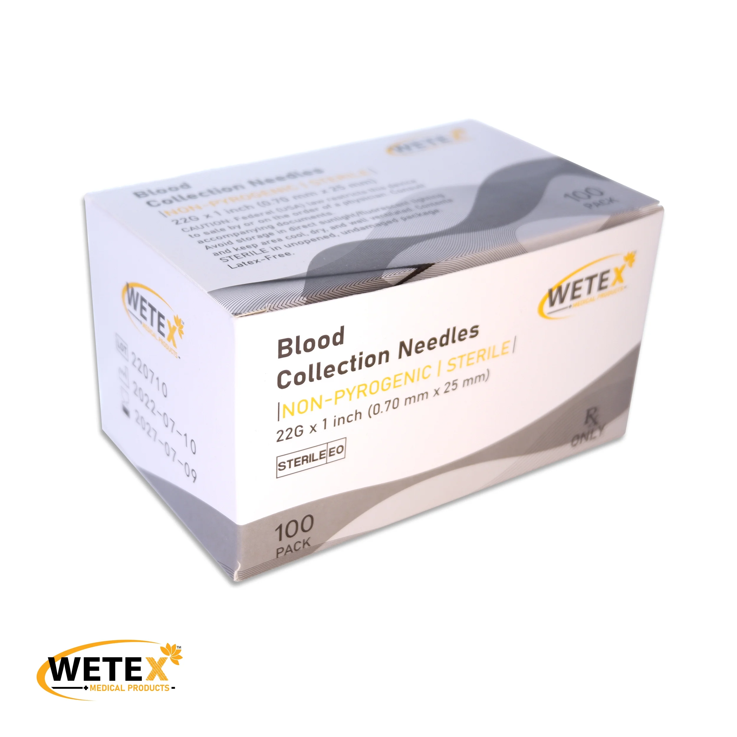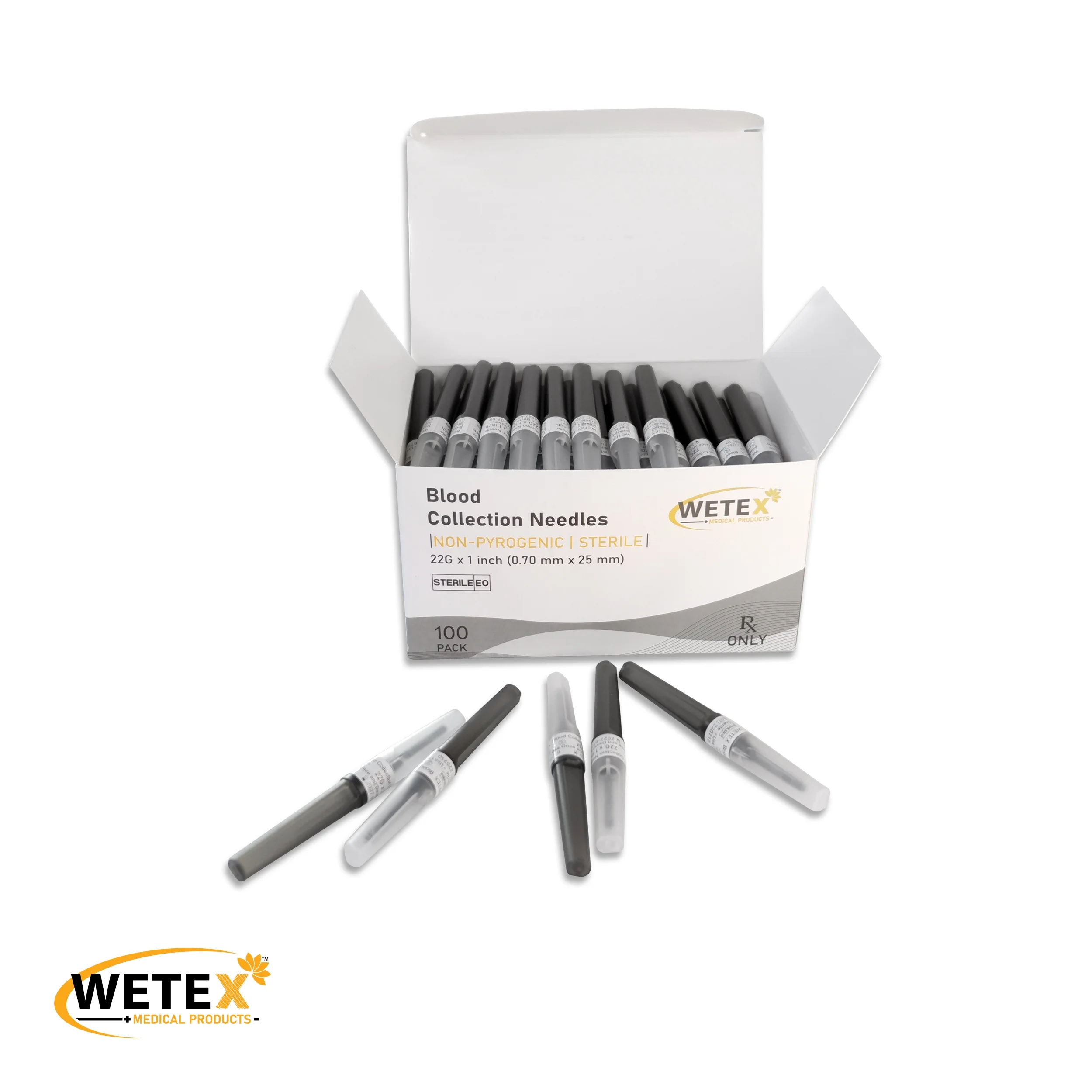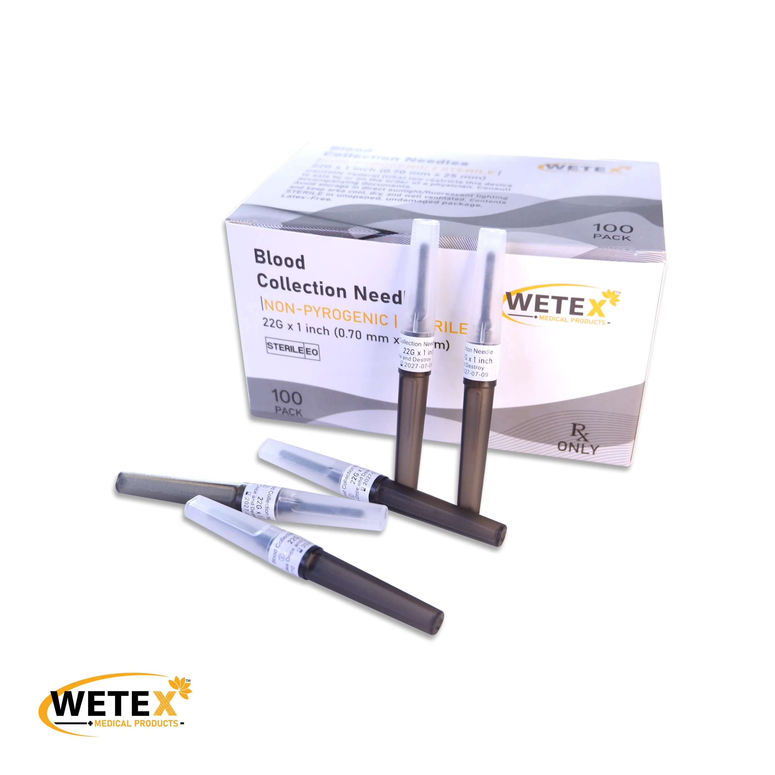 Wetex 1000pcs Blood Collection Pen Type, 22 Gauge x 1 inch, Exp 07/2027