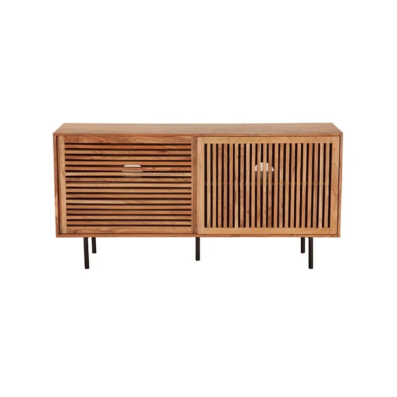 Pemberly Row Contemporary Solid Acacia Wood Sideboard in Natural