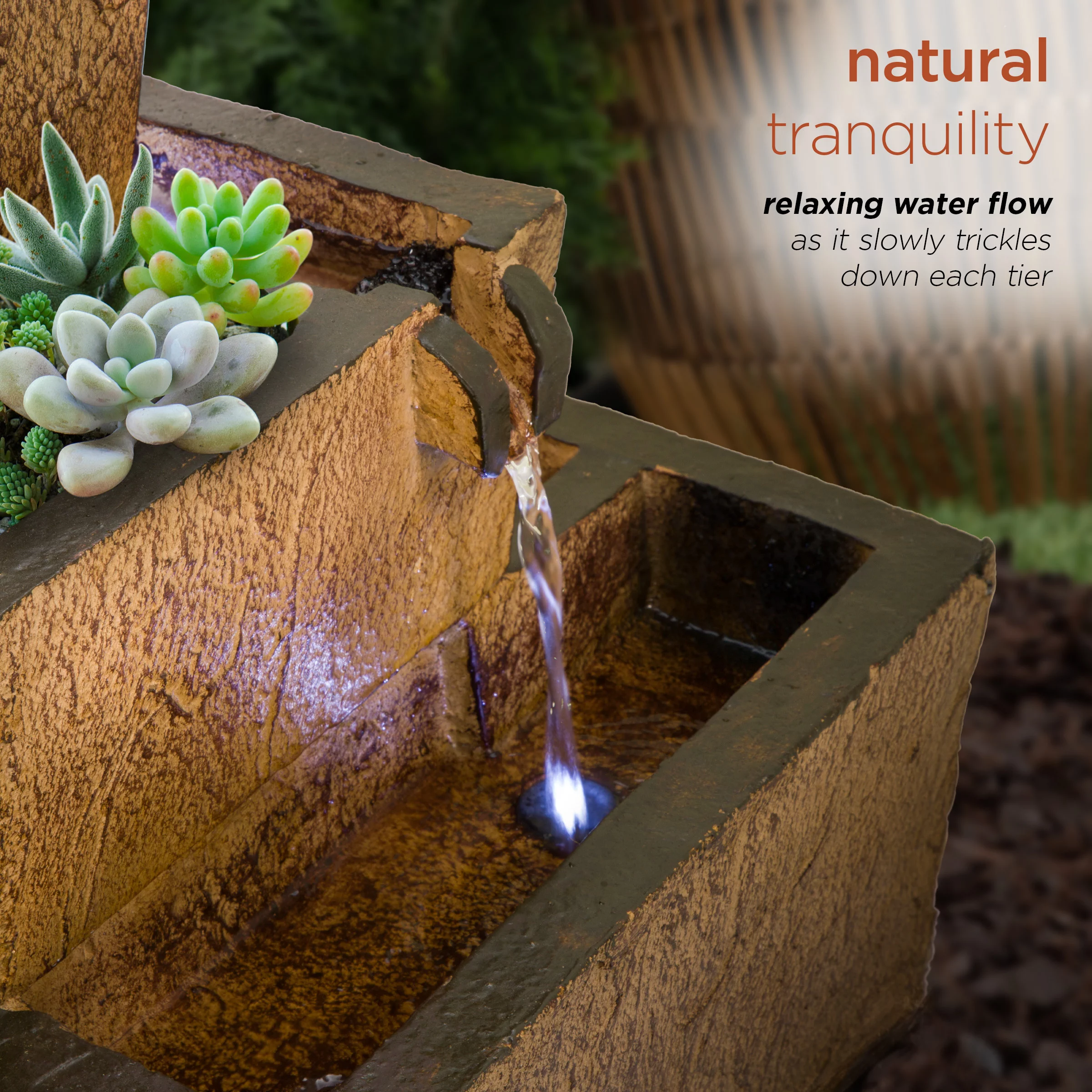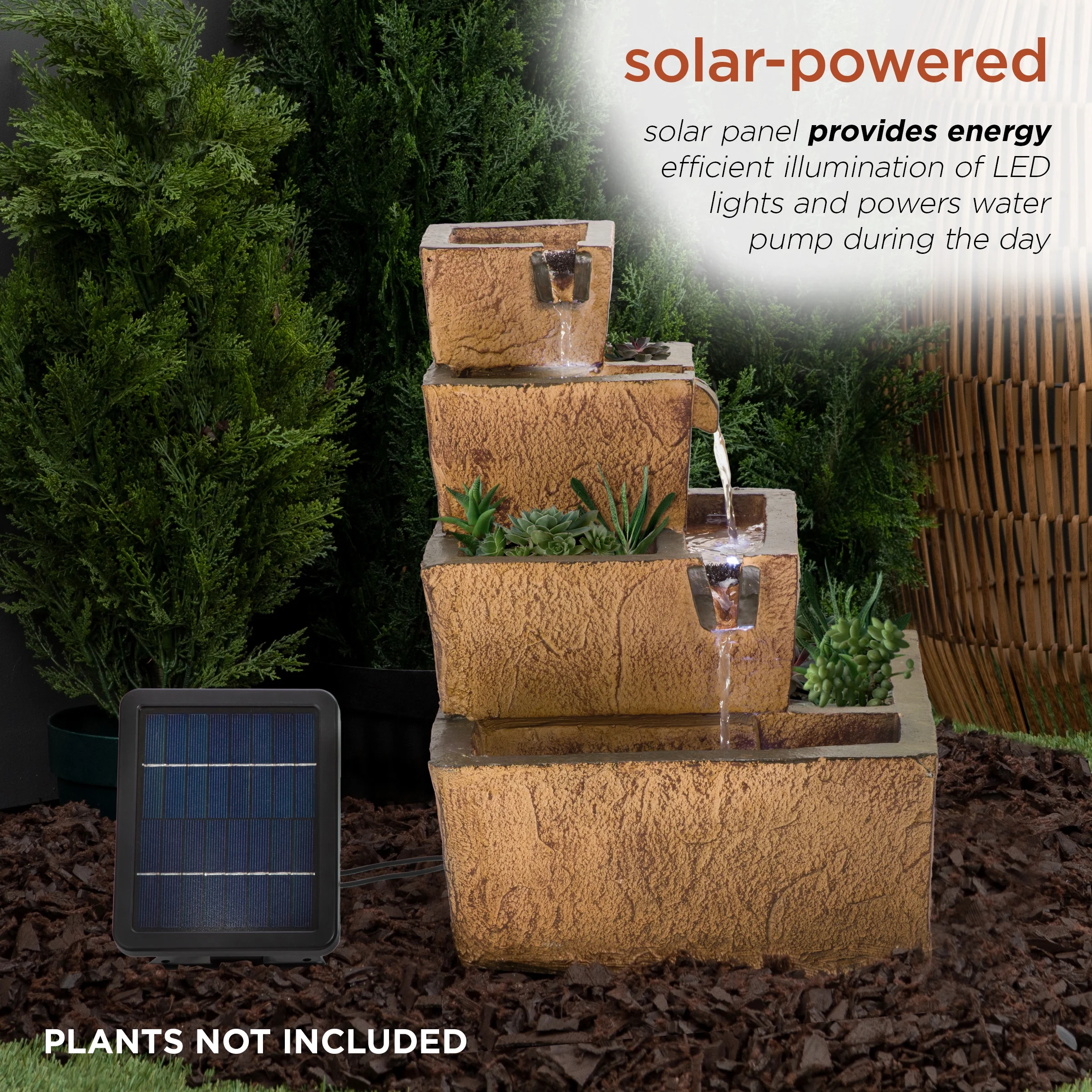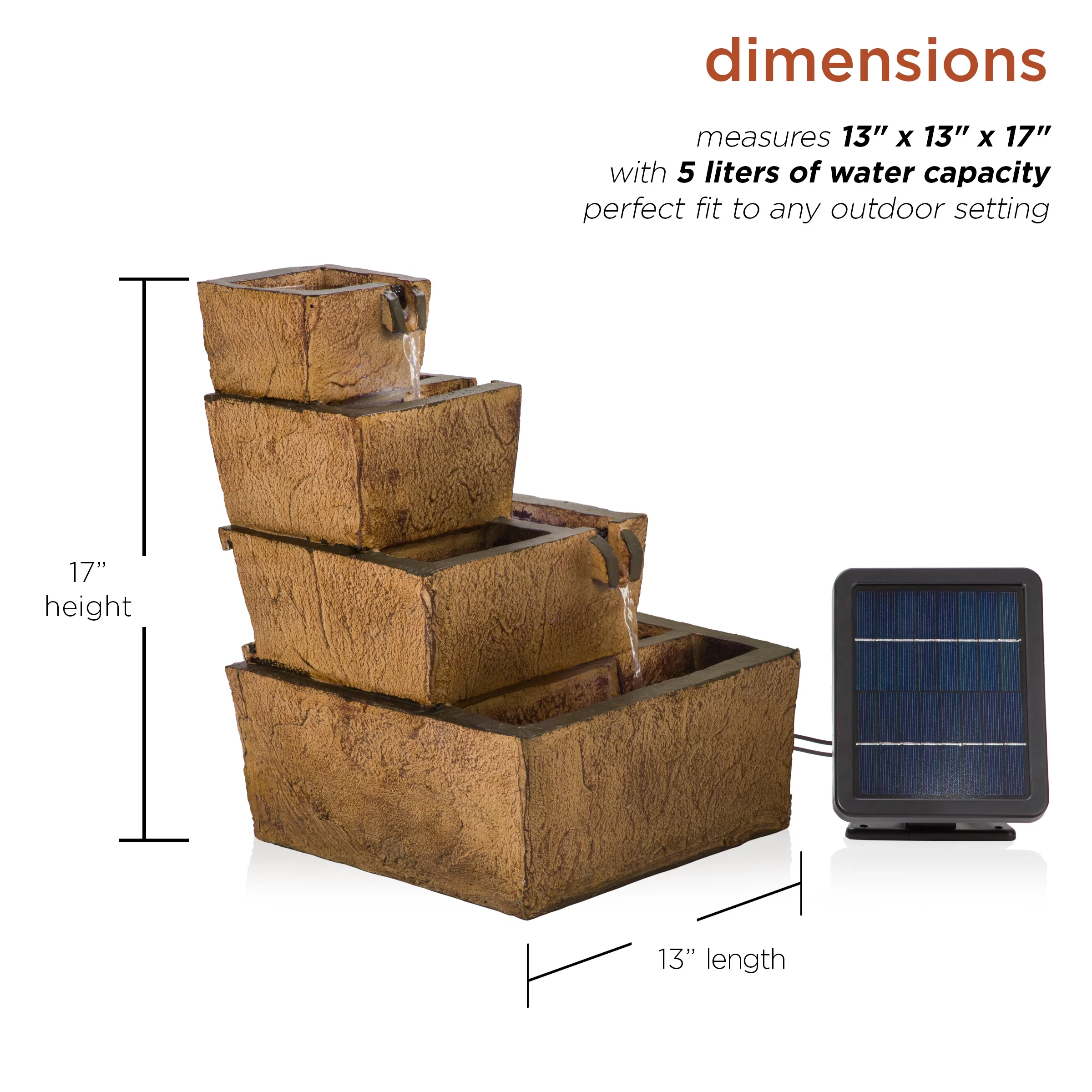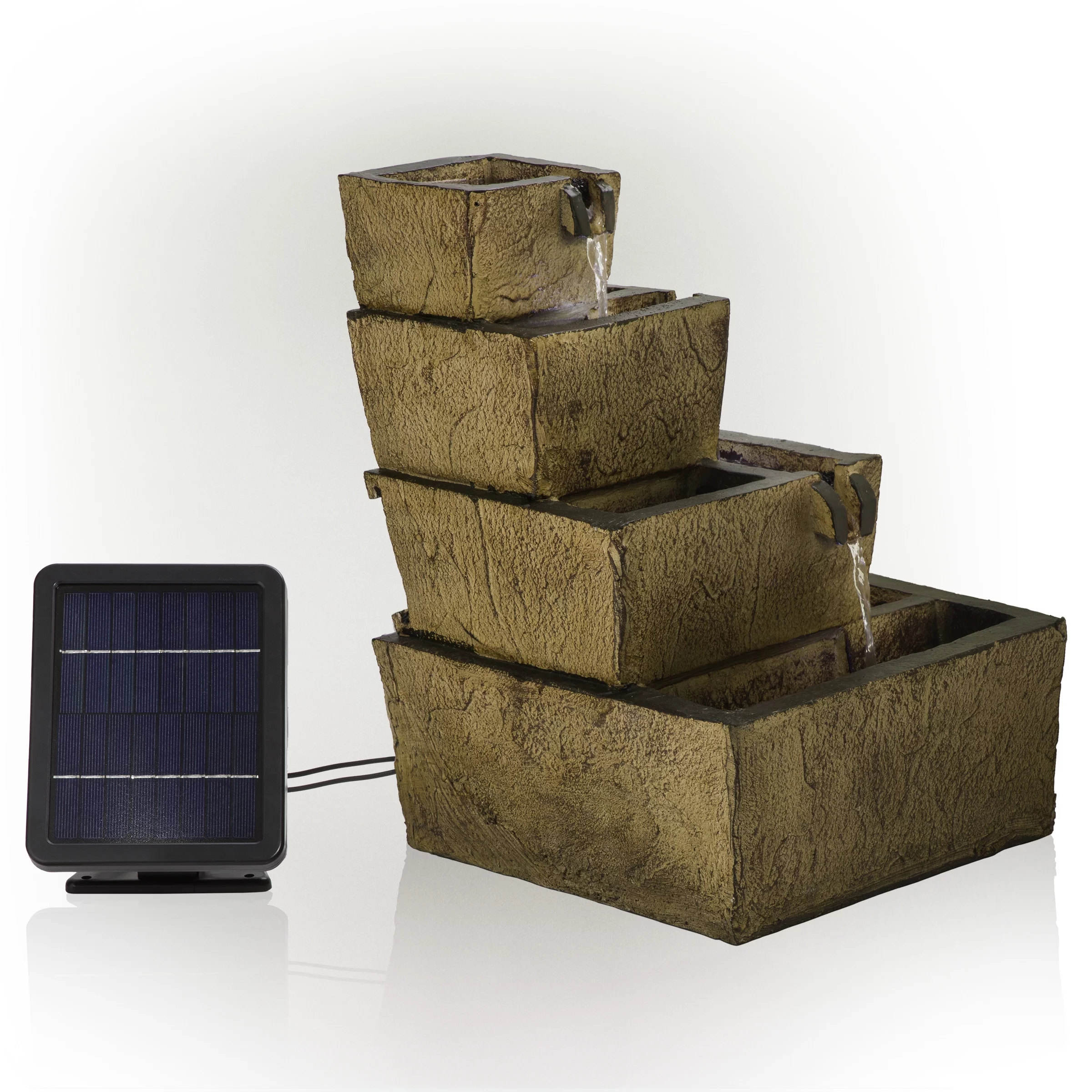 Alpine Corporation 17" Tall Solar Rustic Tiered Fountain Yard Decoration with LED Lights