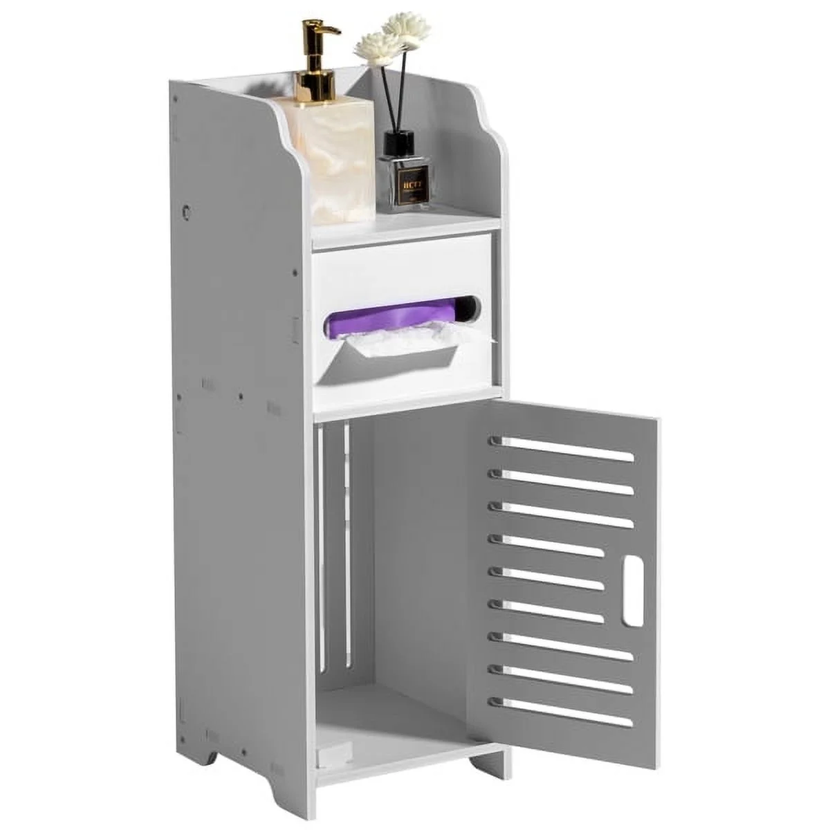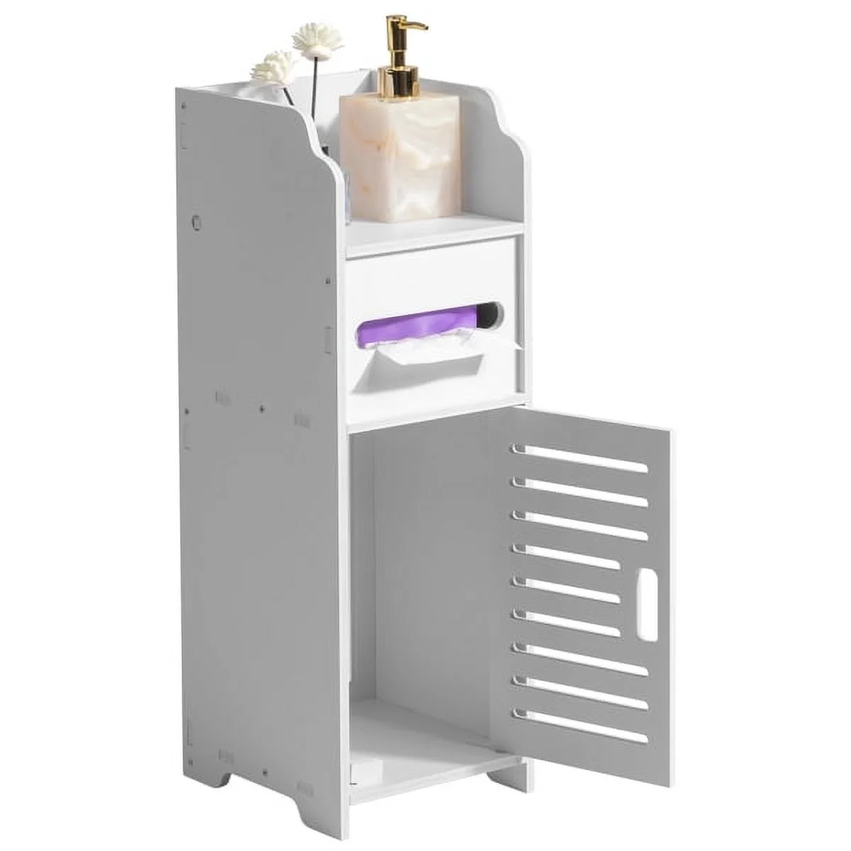 SYTHERS Storage Cabinet for Small Spaces, Skinny Bathroom Storage Corner Floor, Slim Paper Cabinet with Doors & Shelves, White