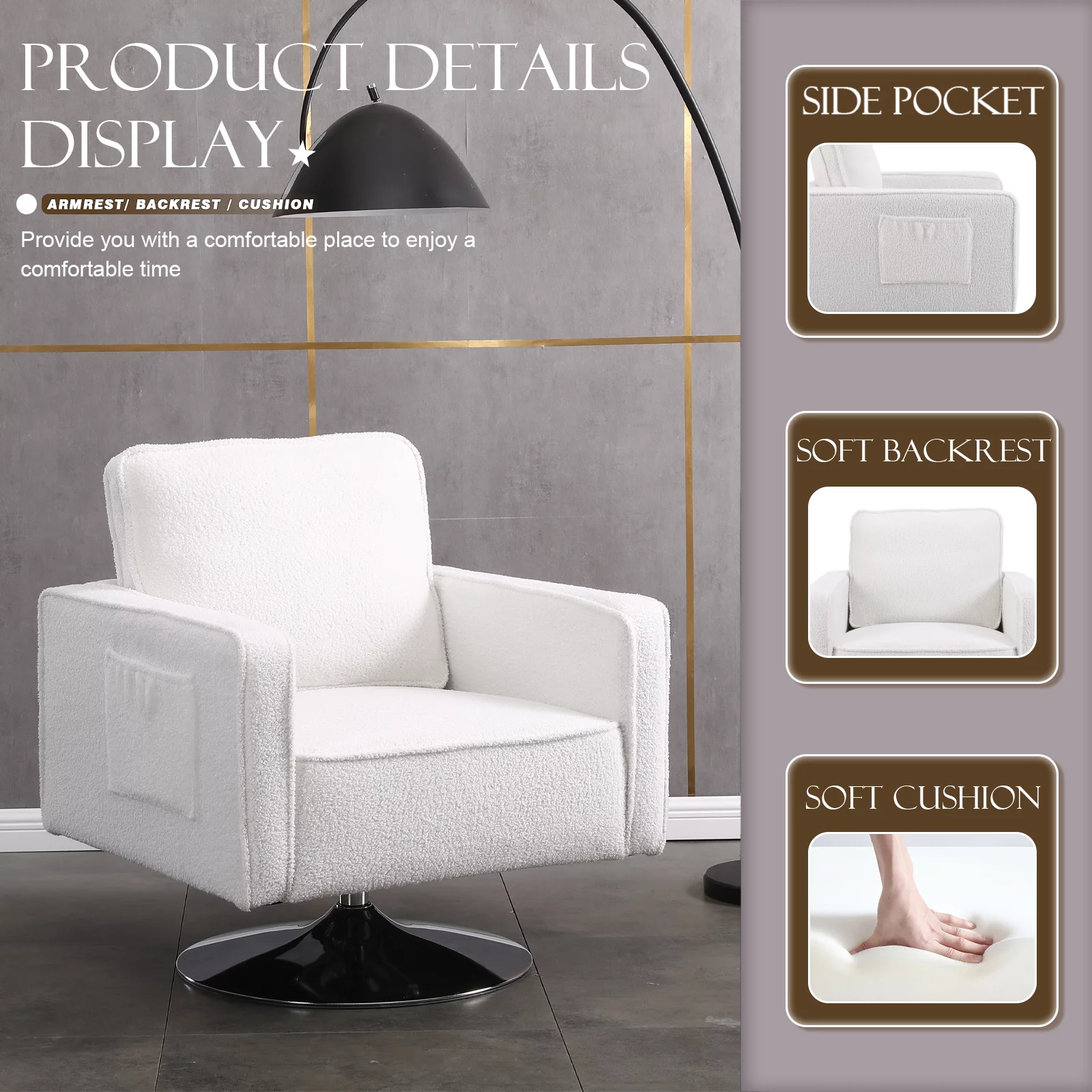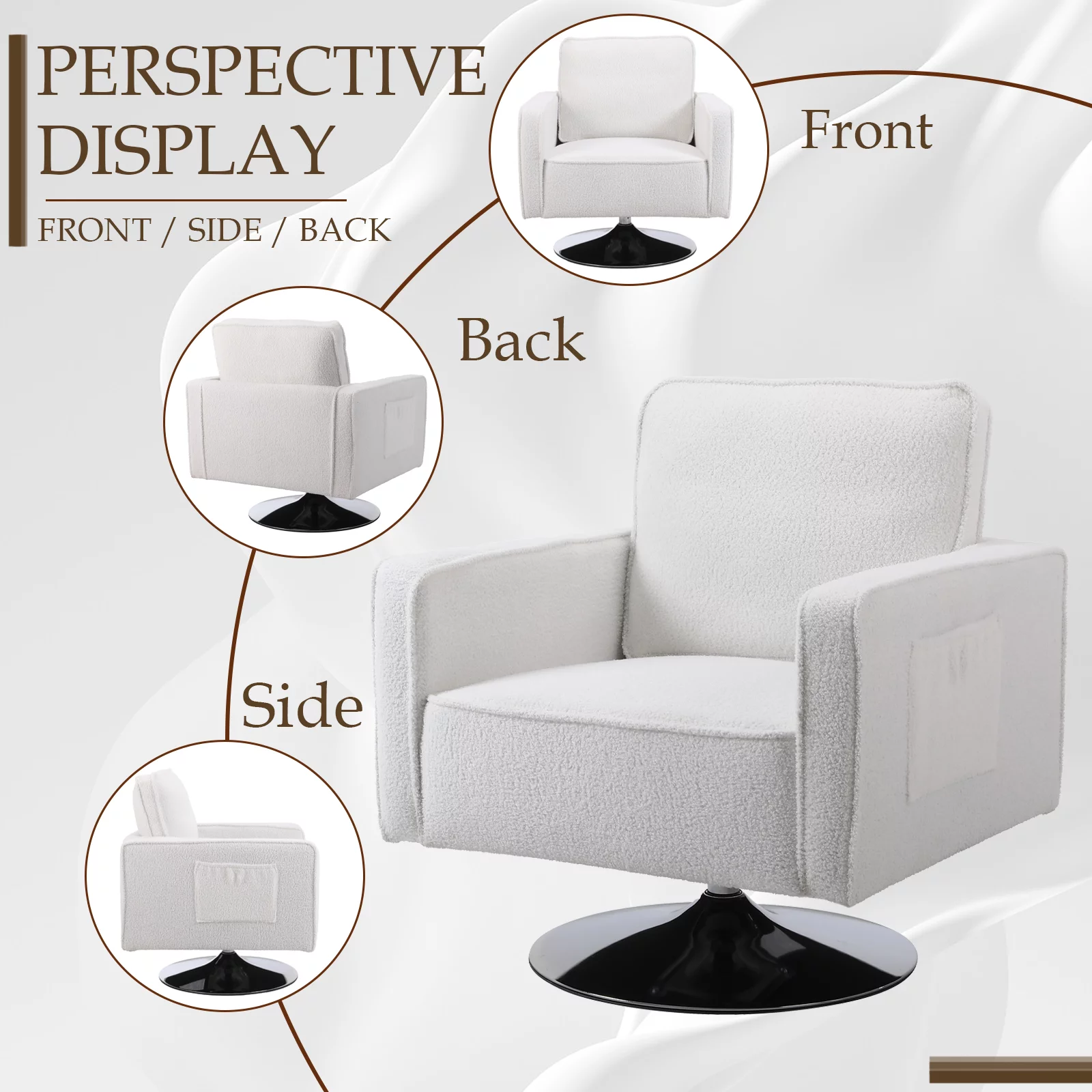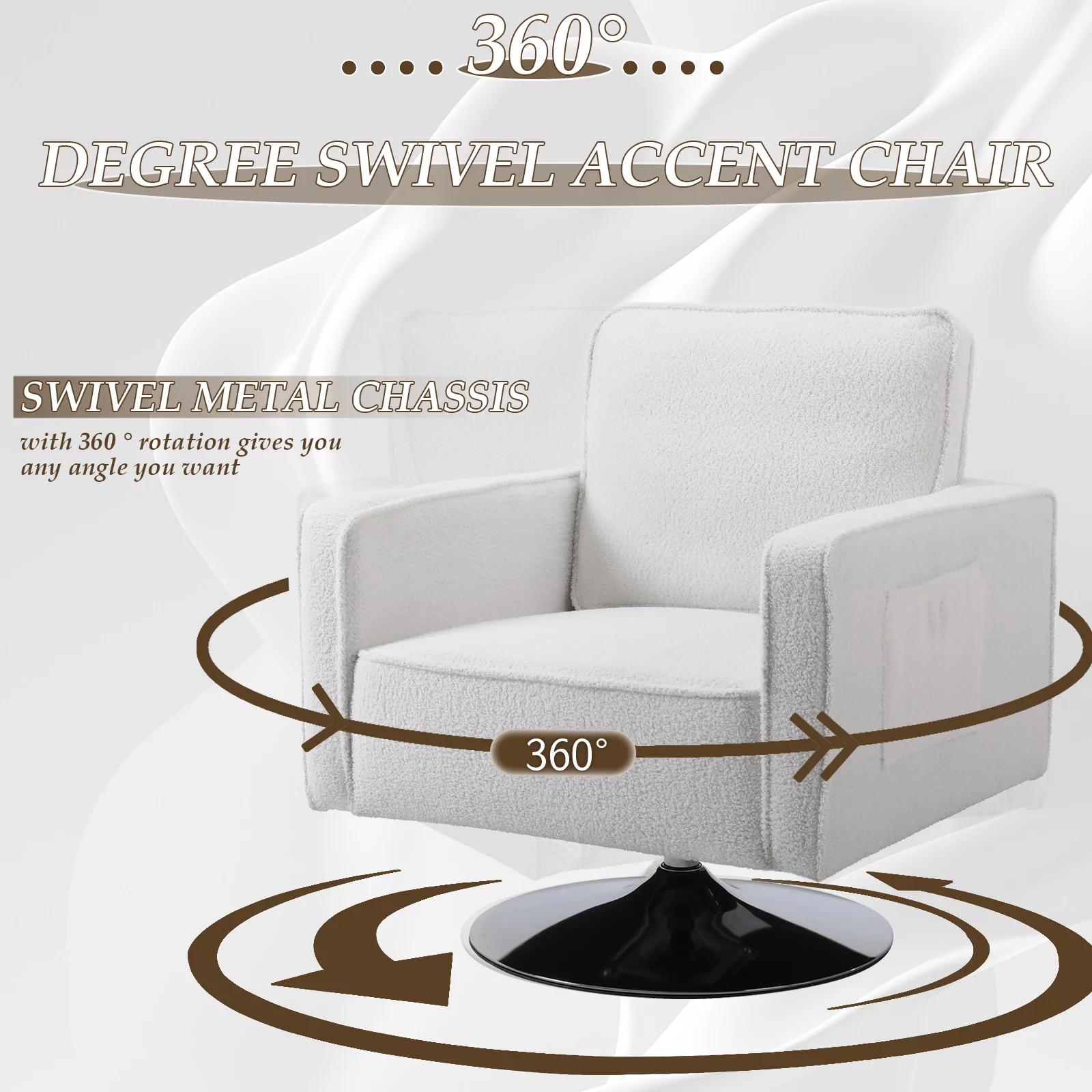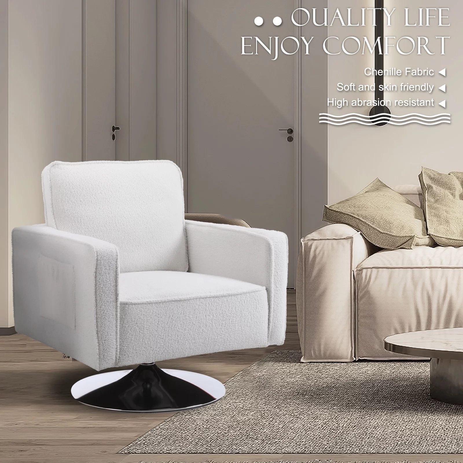 KINFFICT Teddy Fabric Swivel Accent Chair, Barrel Chair Comfy Modern Sofa Chair Sherpa Chair for Living Room, Beige