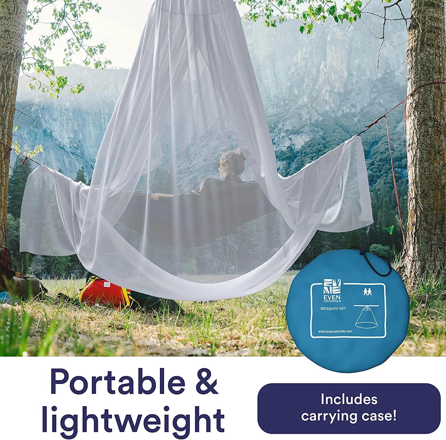 Even Naturals Luxury Mosquito Net Bed Canopy, Ultra Large Bug Net: Single to King Size, Quick Easy Installation, Finest Holes: Mesh 380, Curtain Netting, 2 Entries, Storage Bag, No Chemicals Added