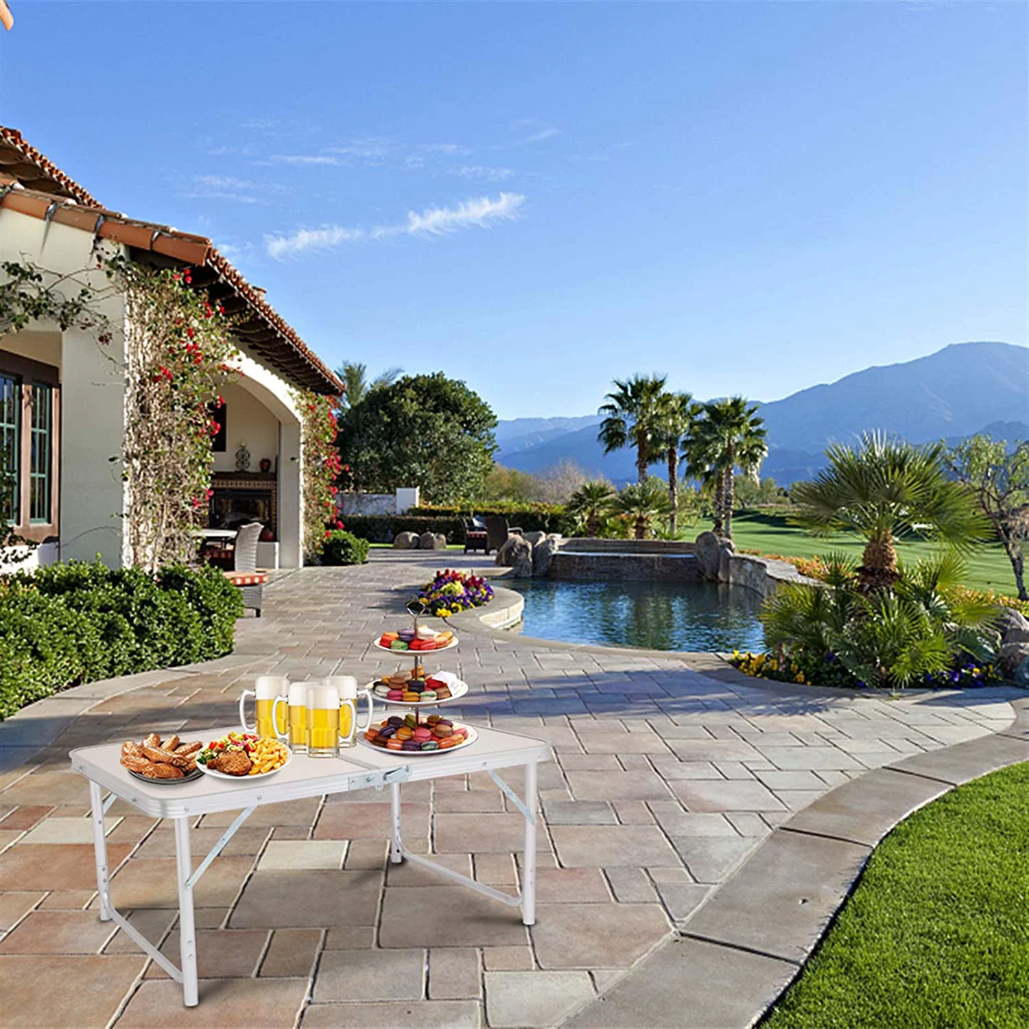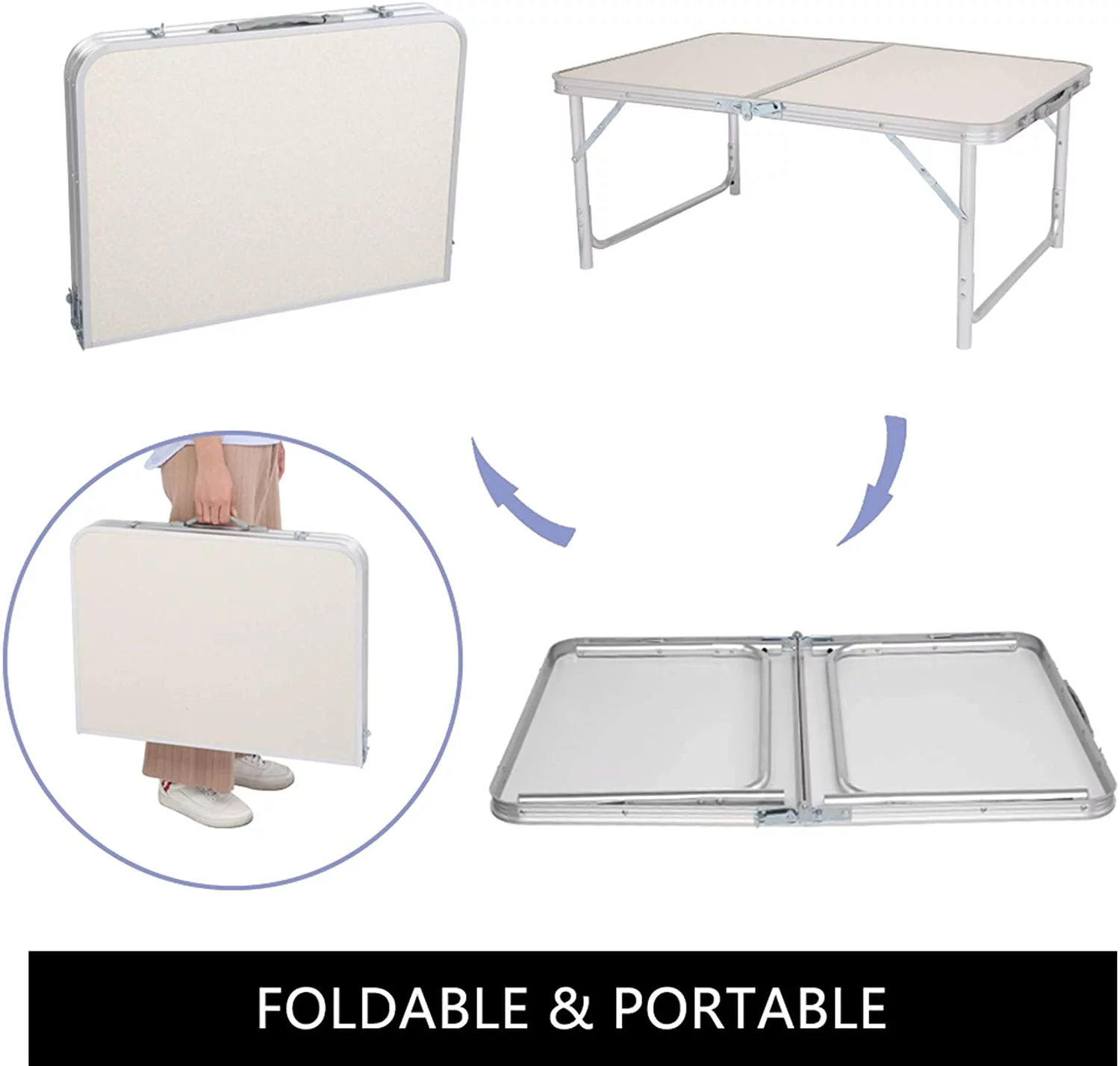 Camping Folding Table,Aluminum Height Adjustable Lightweight Portable Handle,Small Outside Fold Up Card Table for Outdoor Patio Picnic Grill Cooking BBQ Beach Backyard