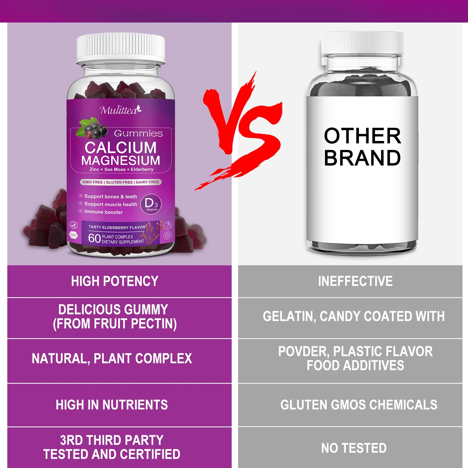Calcium Magnesium Zinc Gummies with High Absorption Magnesium Glycinate 200mg, Potassium -Plant Complex Calcium Supplement w/ D3 & Sea Moss for Bone, Muscles, Calm Mood & Sleep Support* (2 Pack)