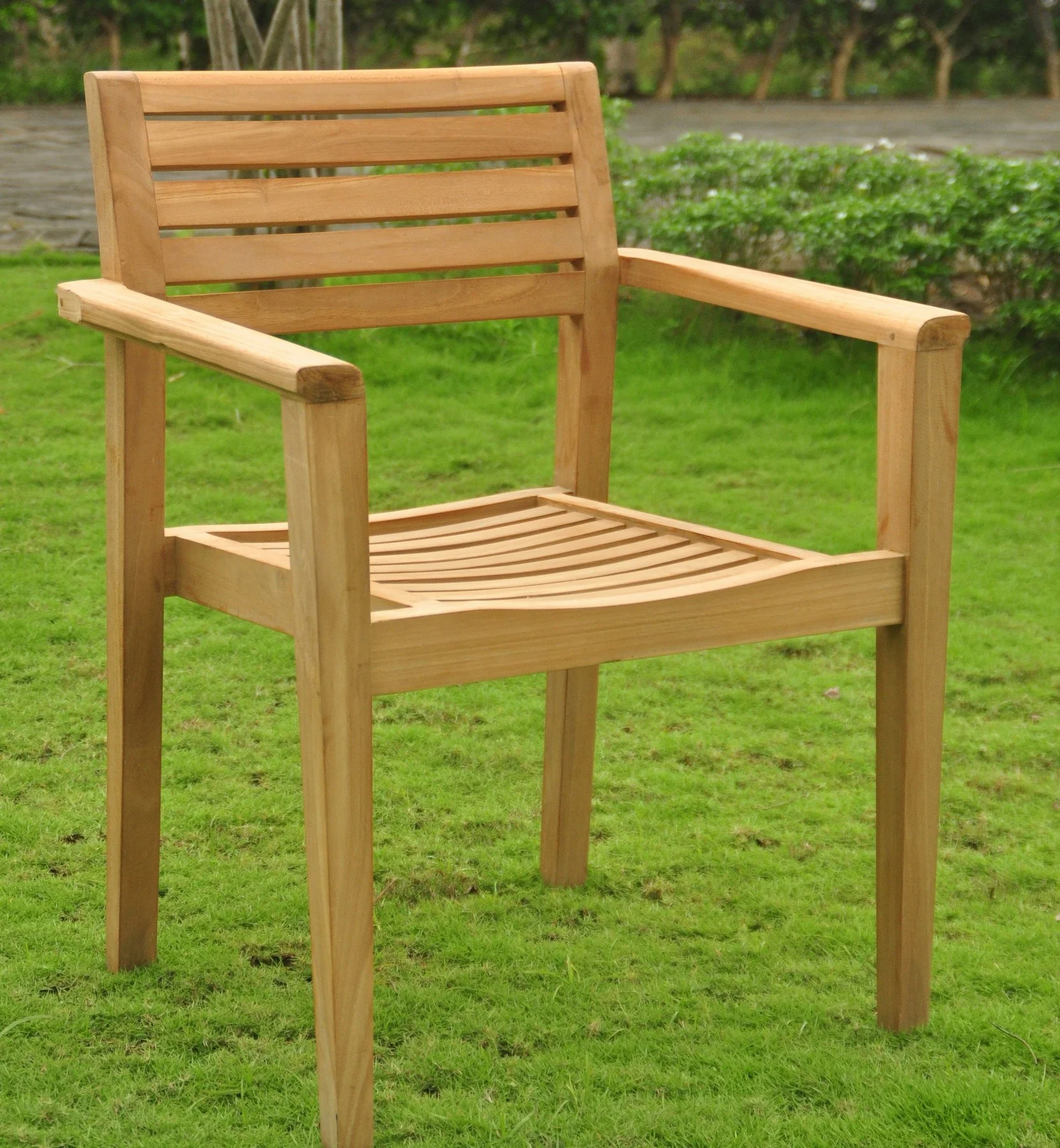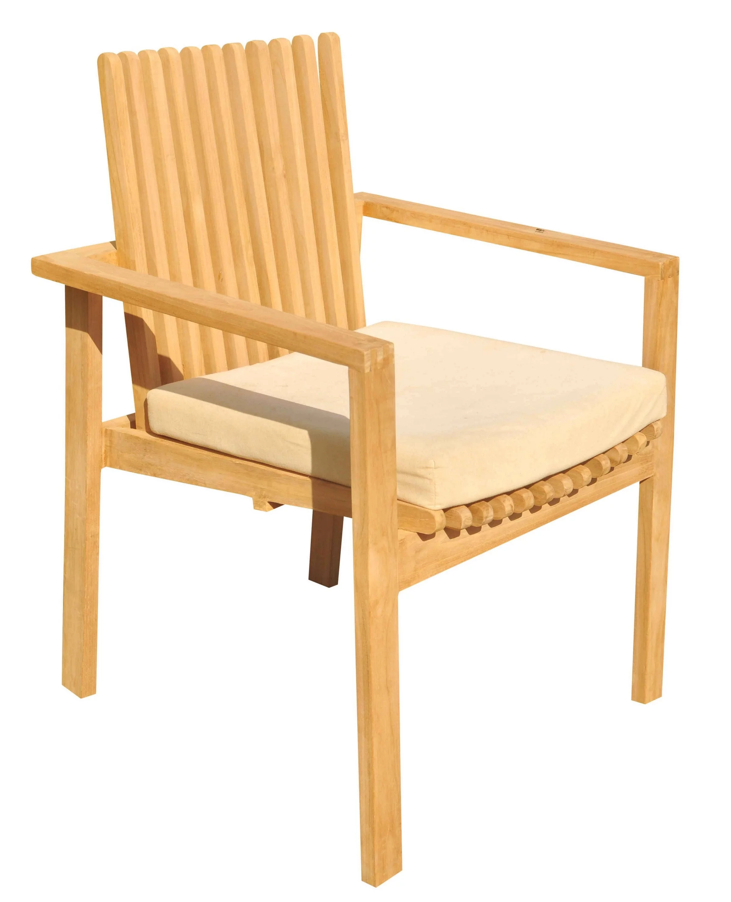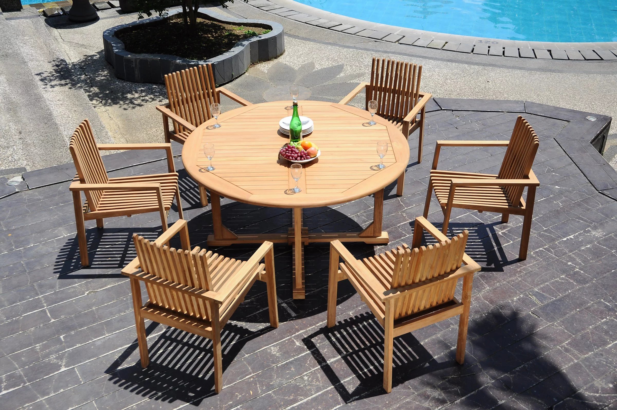 Grade-A Teak Dining Set: 6 Seater 7 Pc: 60" Round Table And 6 Clipper Stacking Arm Chairs Outdoor Patio WholesaleTeak #51CP1207