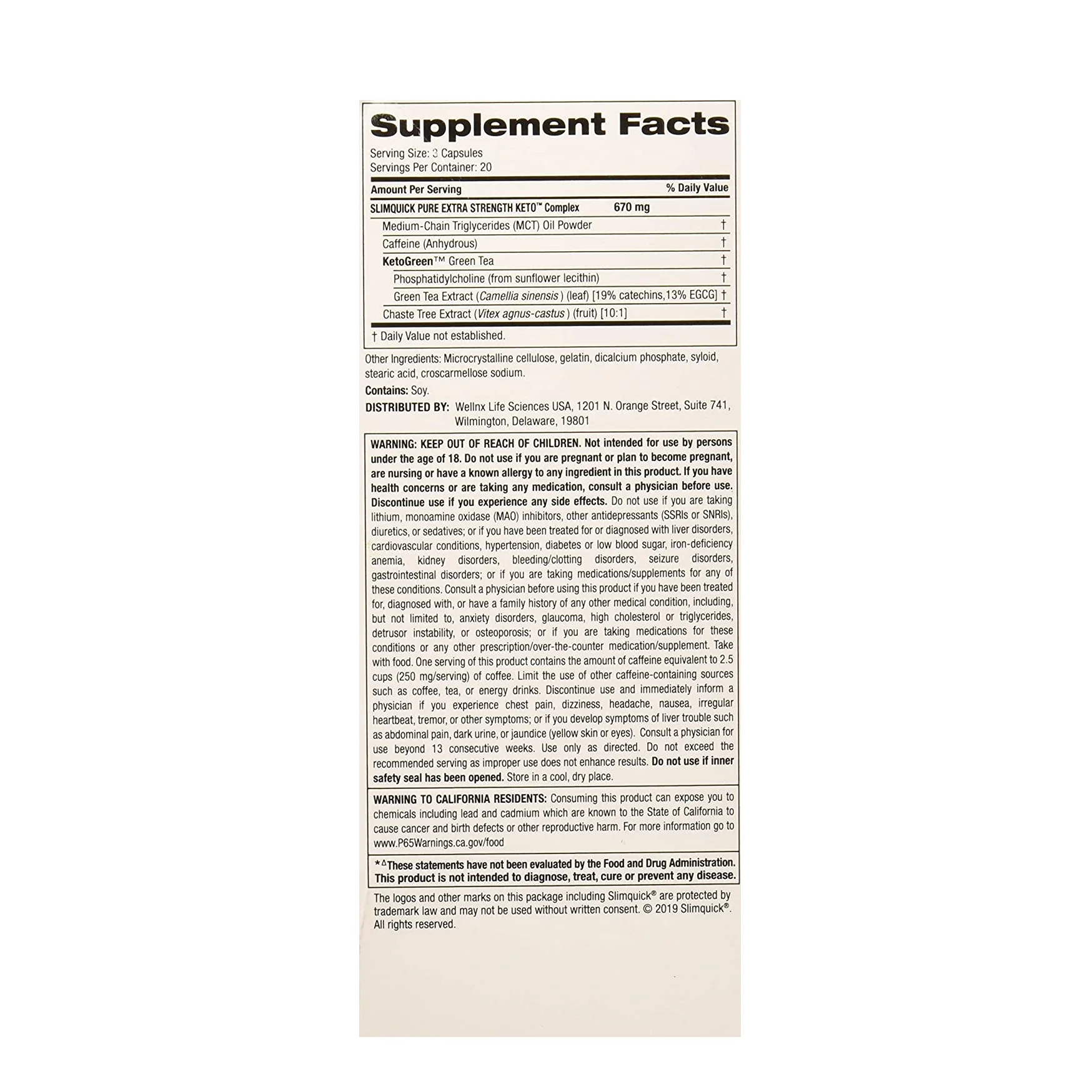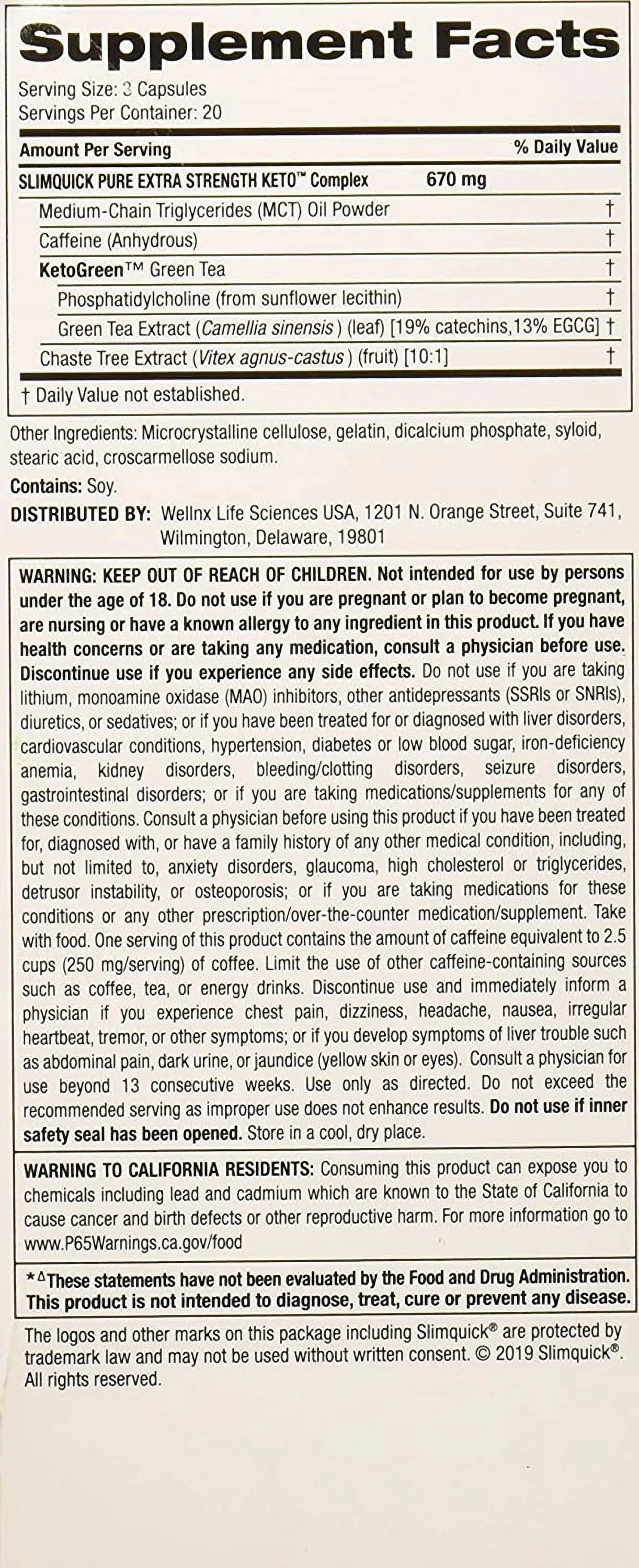 SlimQuick Pure Keto Dietary Supplement Extra Strength Caplets 60 Ct